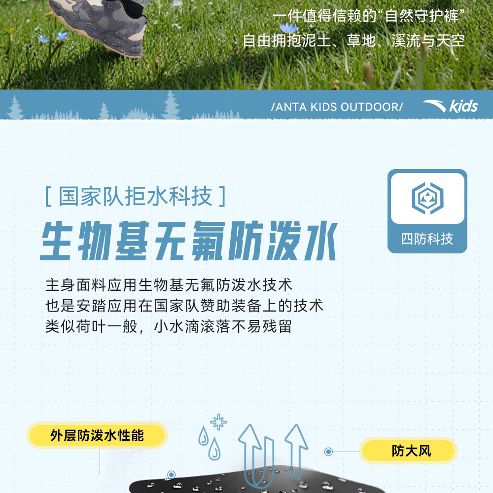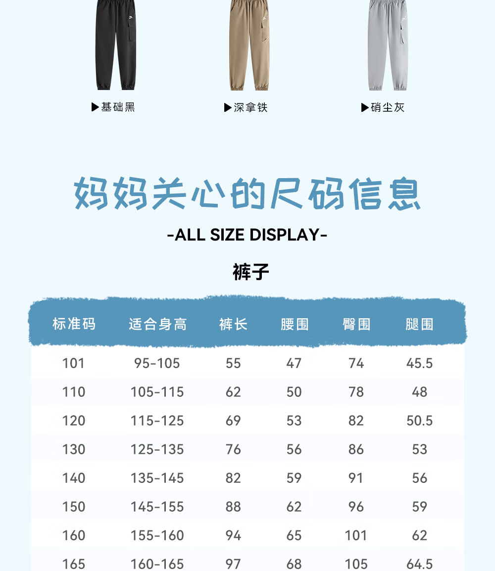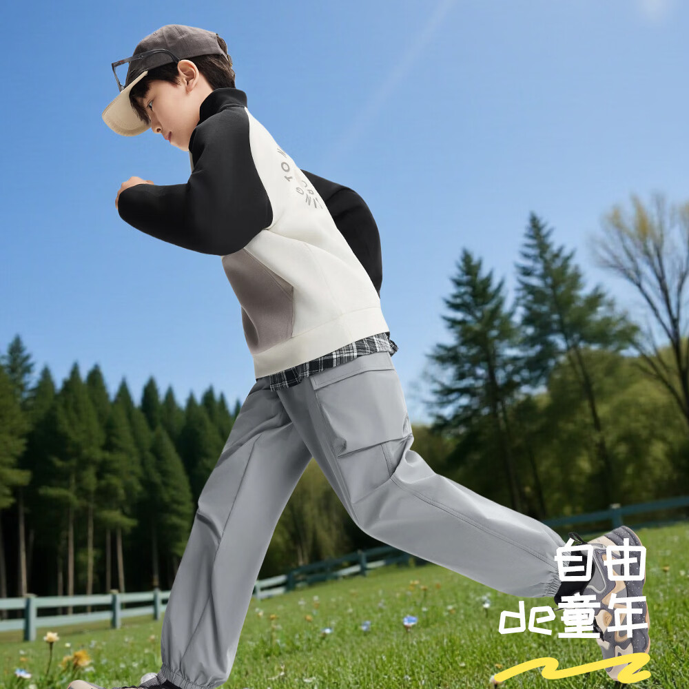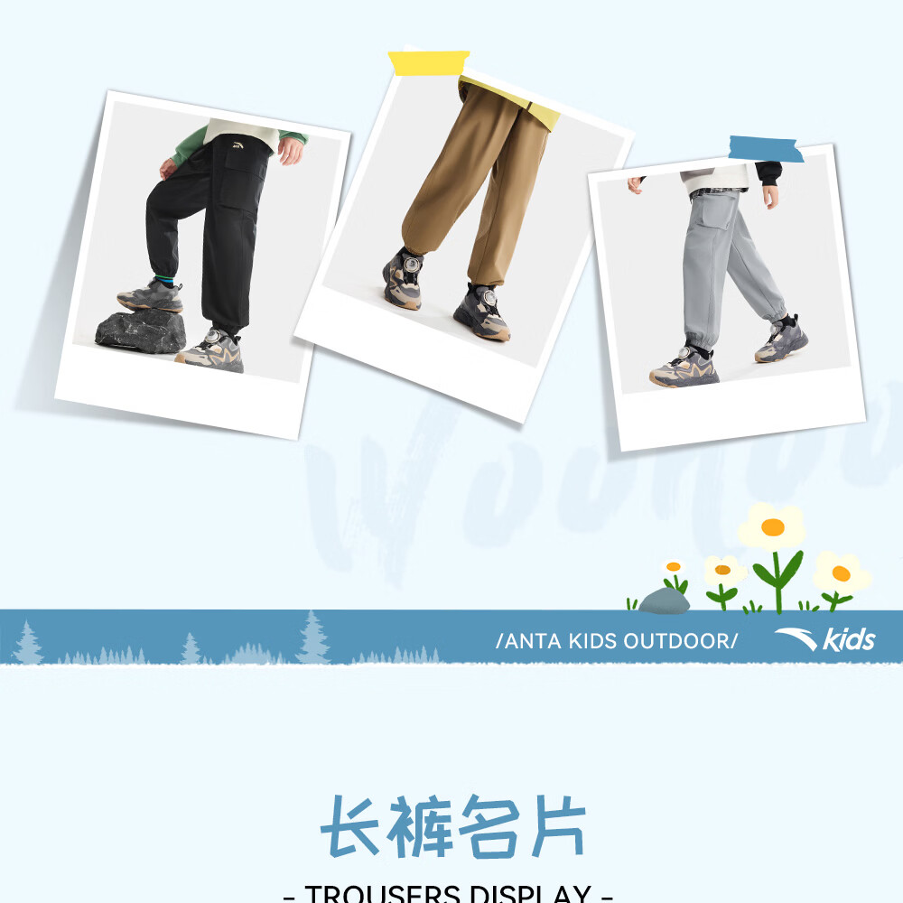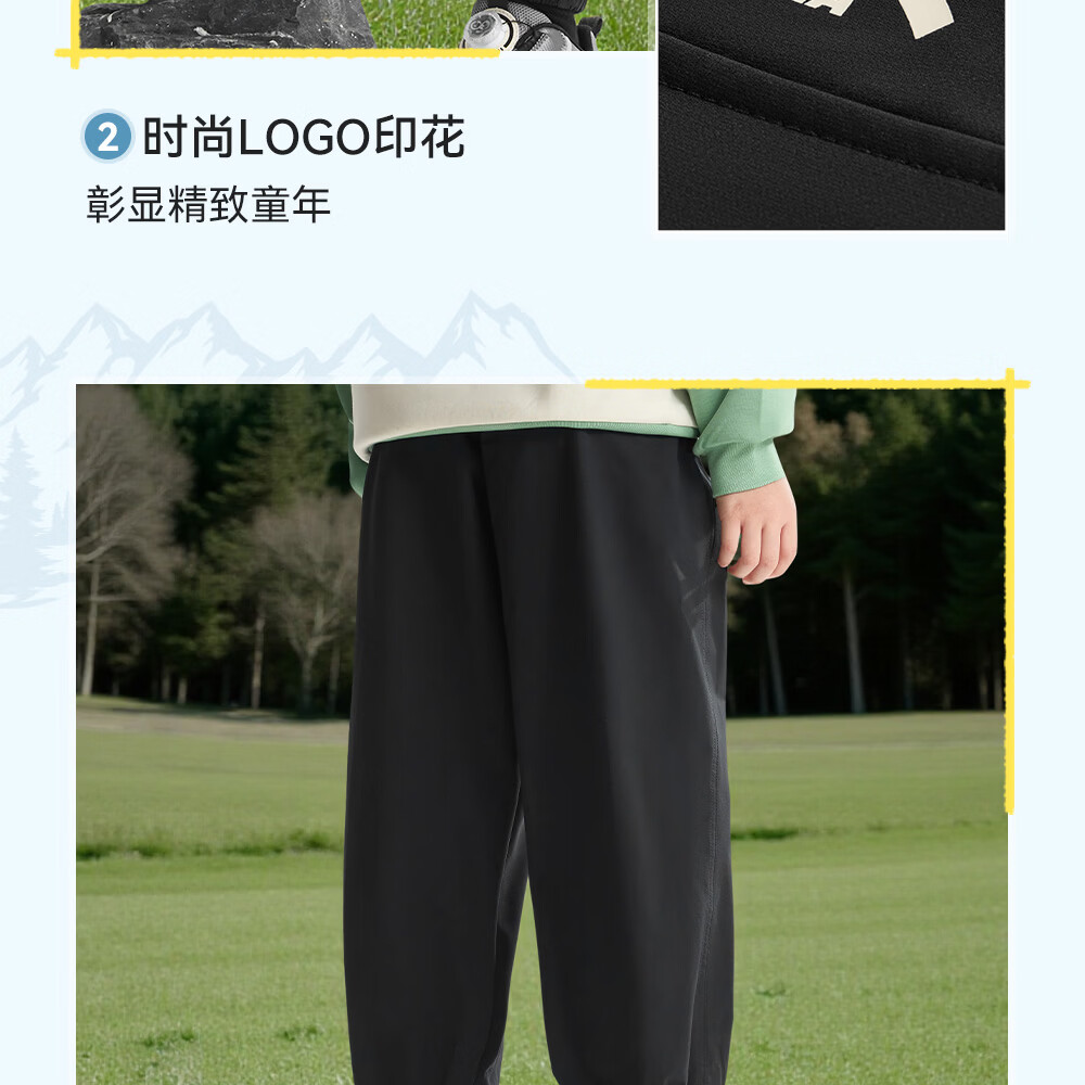 ANTA (ANTA) children's pants boys' sports trousers 26 spring outdoor bio-based water-repellent large pocket overalls basic black-4 120