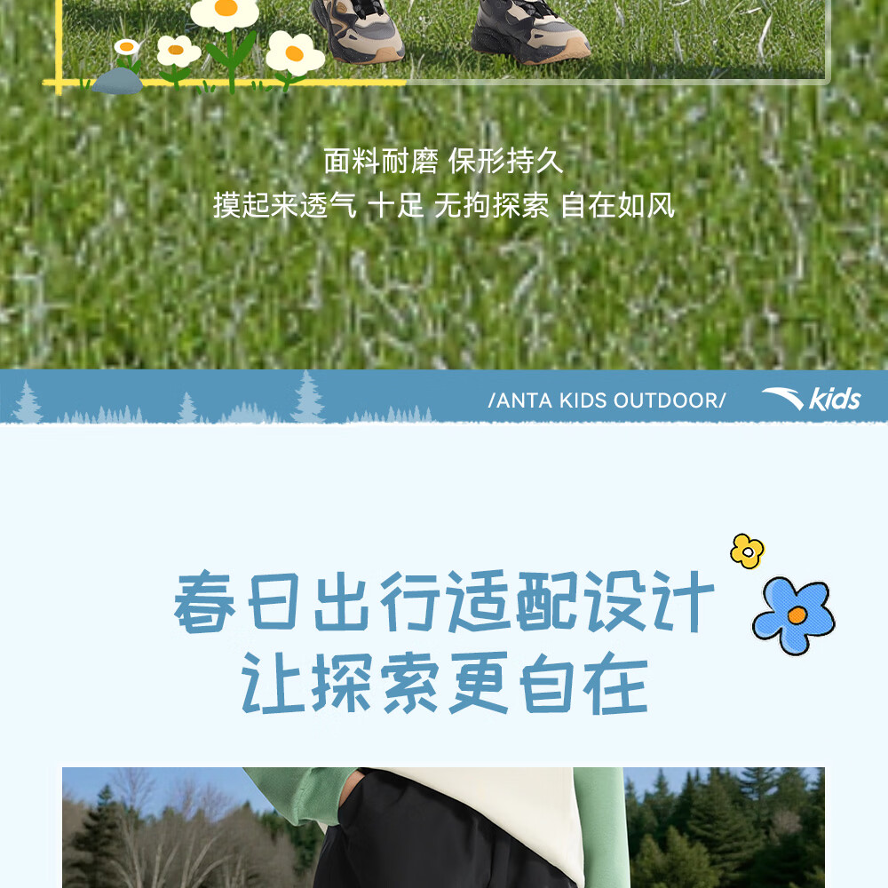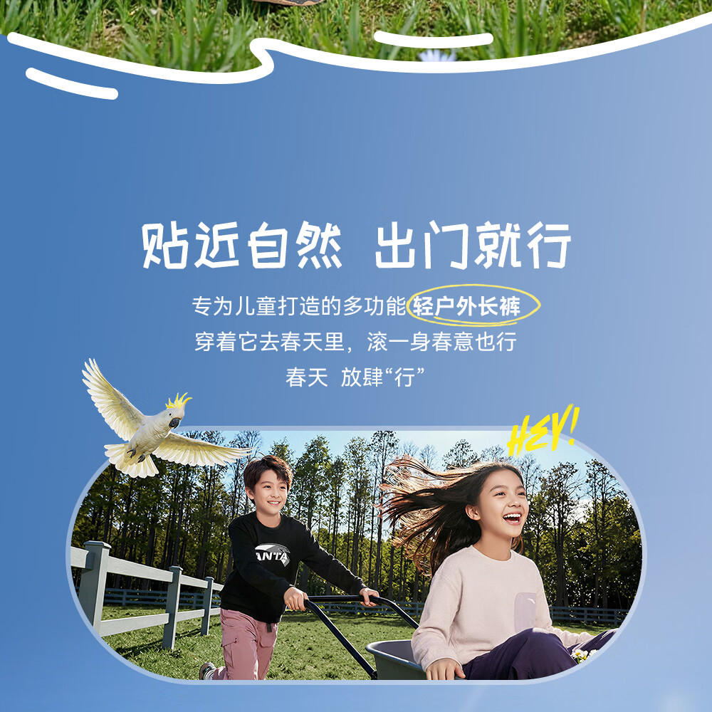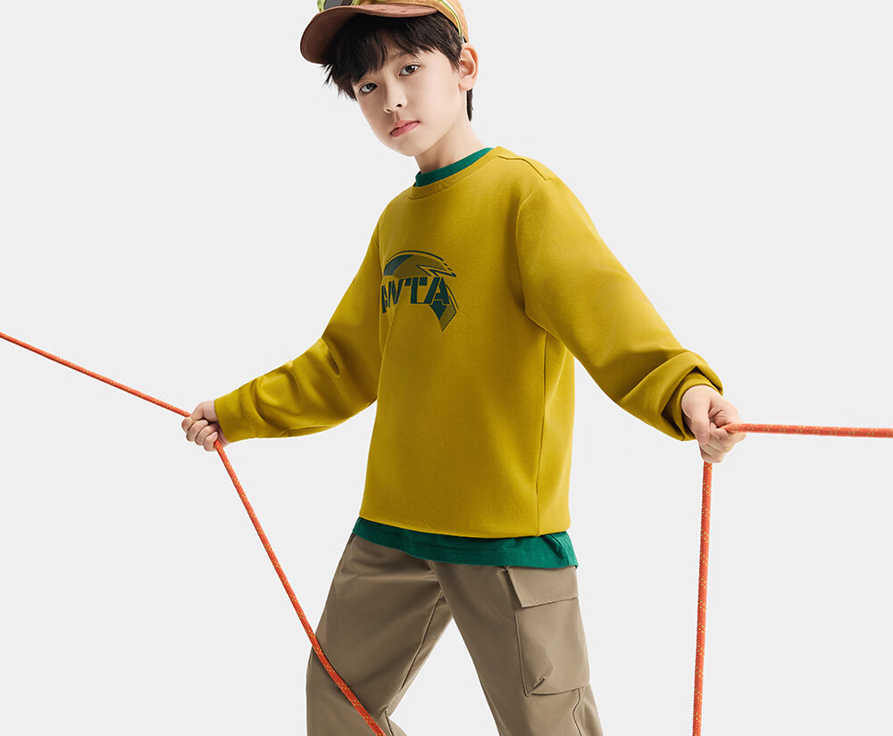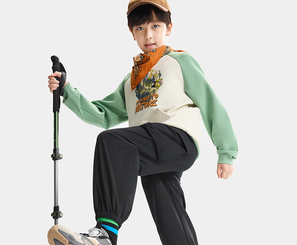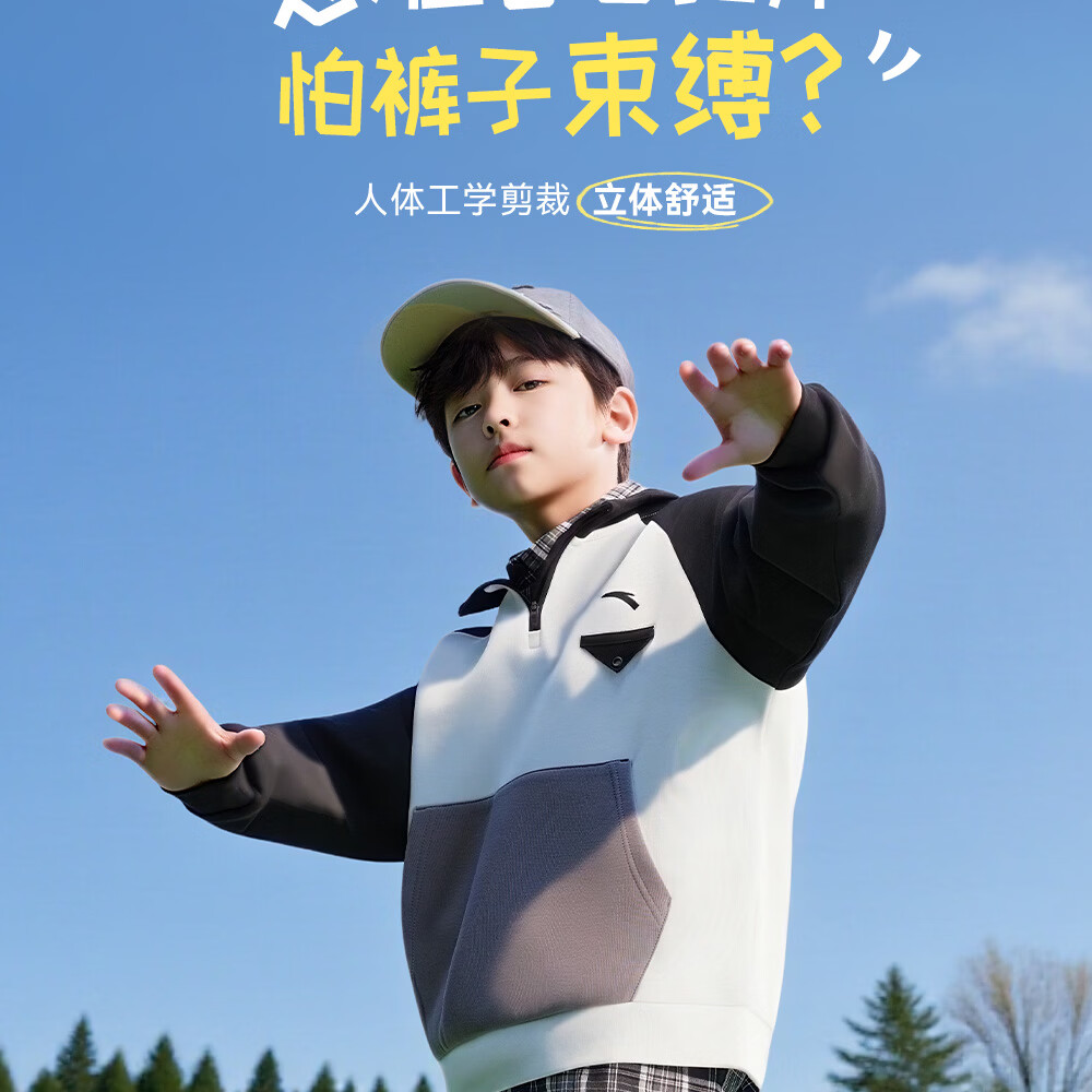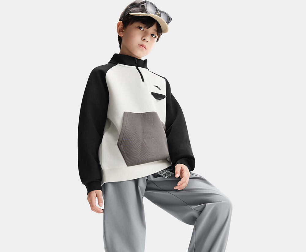 ANTA (ANTA) children's pants boys' sports trousers 26 spring outdoor bio-based water-repellent large pocket overalls basic black-4 120