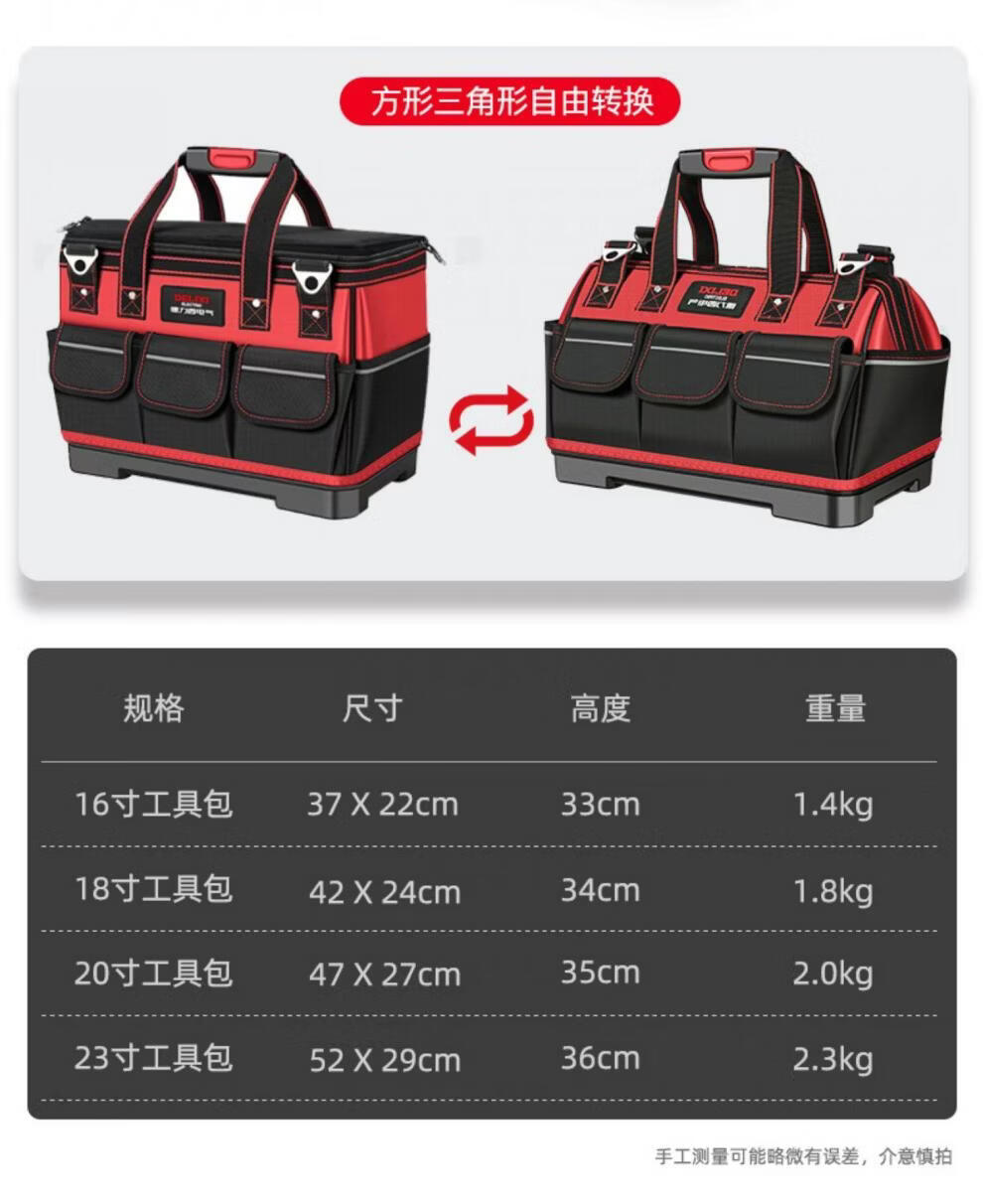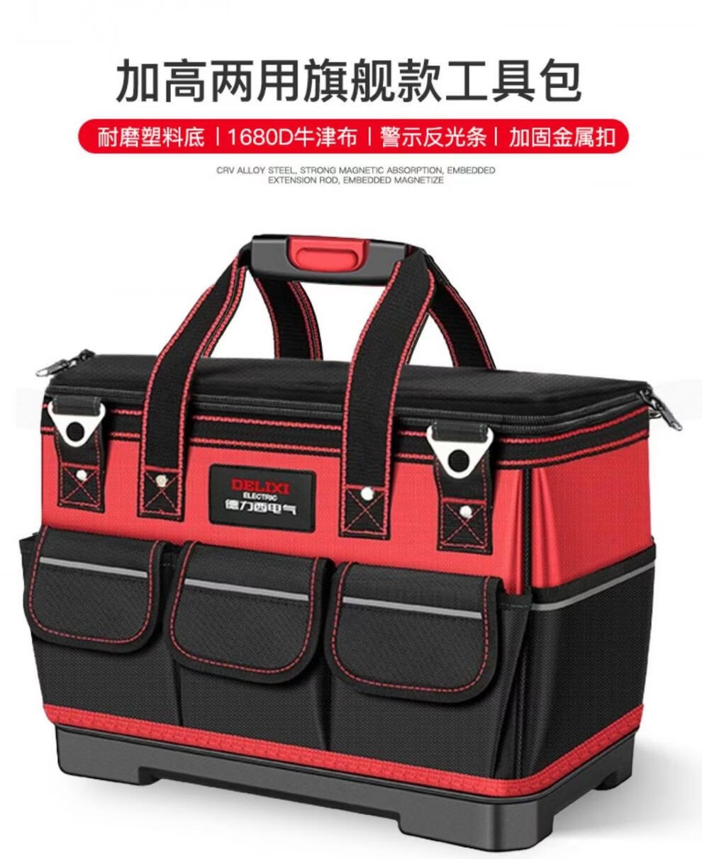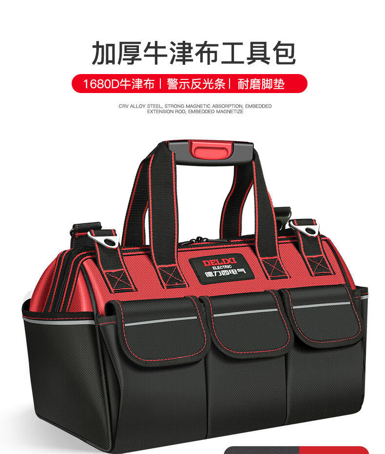 DELIXI ELECTRIC Tool Bag, Strong and Durable Canvas Multifunctional Portable Storage Bag for Electrician Hardware Box, 16-inch Classic Style - Extra Thick Fabric, Oxford Cloth + Waterproof Layer