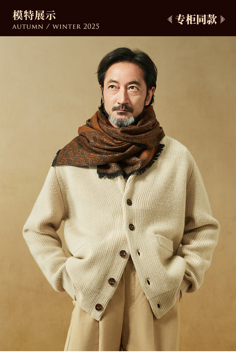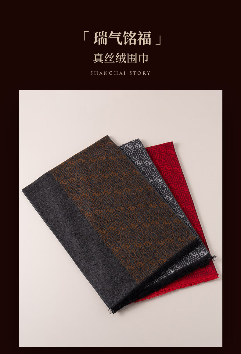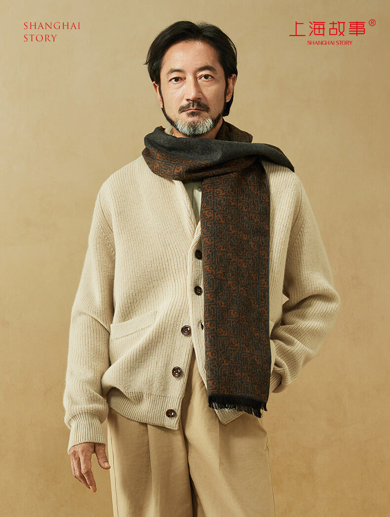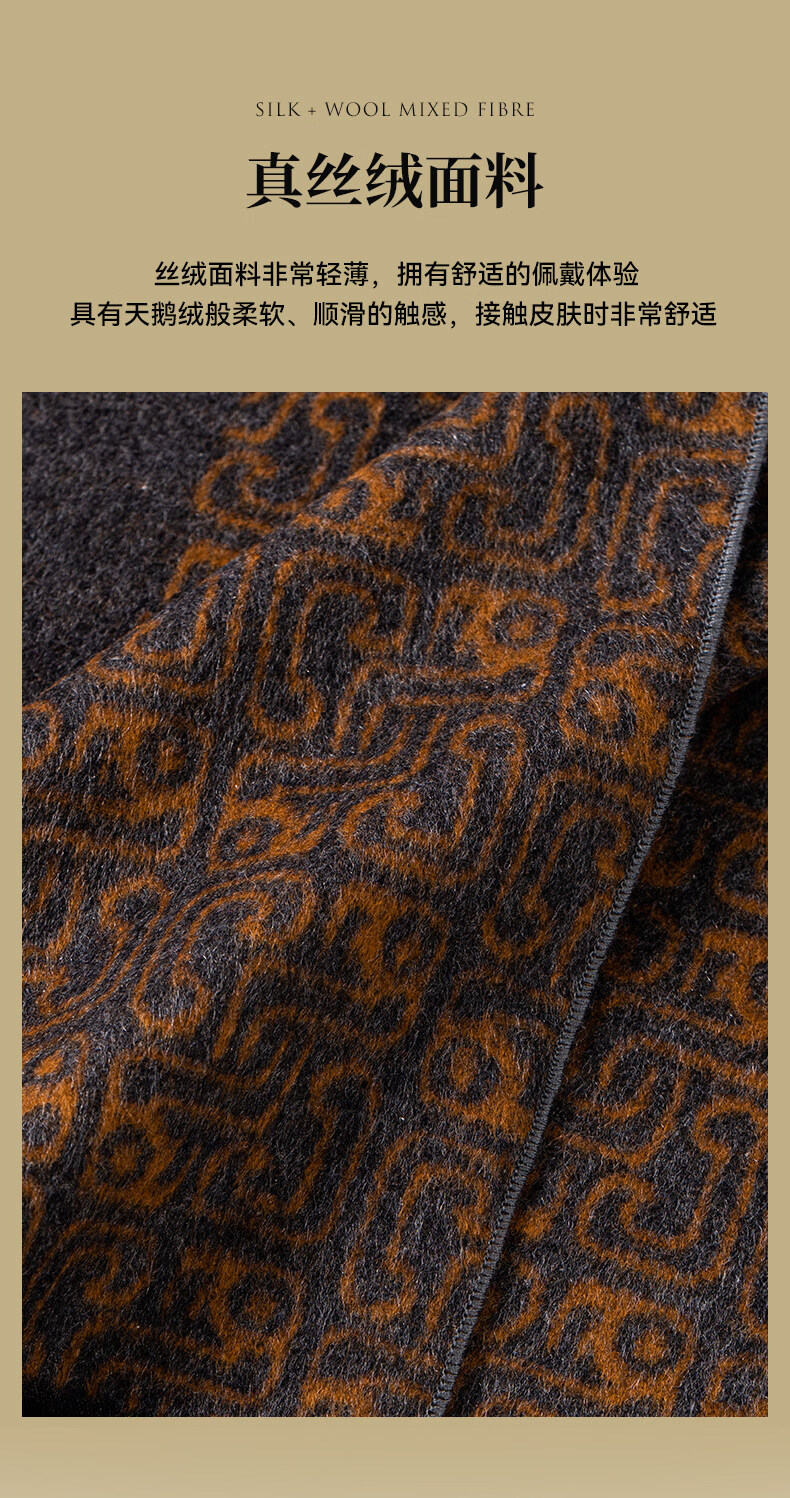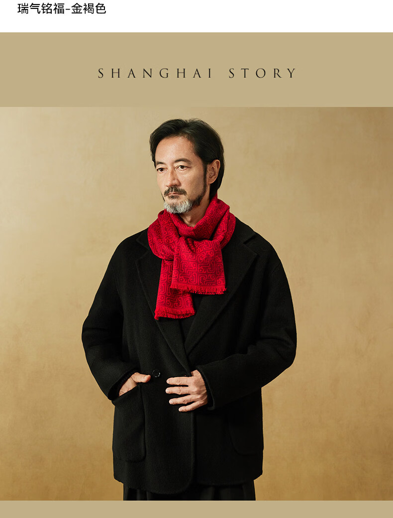 Shanghai Story 2026 Autumn and Winter Silk Brushed Thickened Scarf Men’s Gift Box Golden Brown
