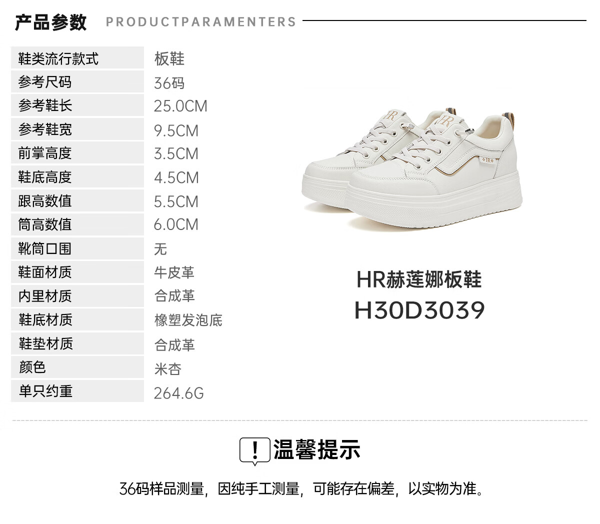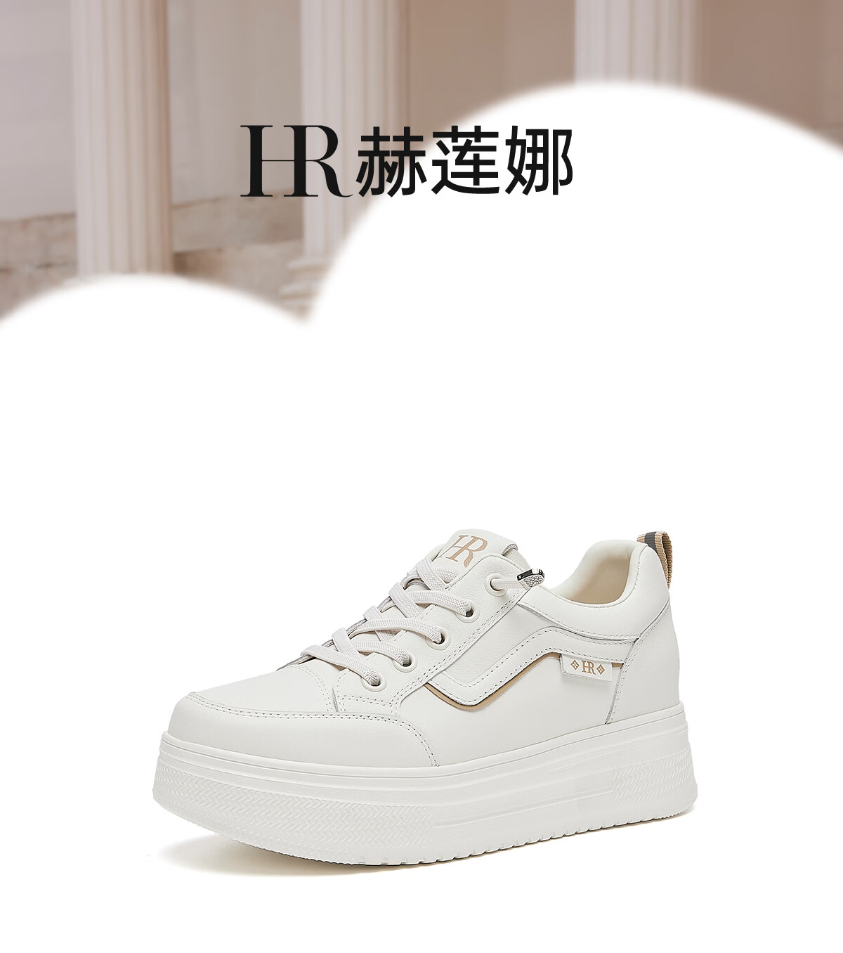 HR Helena women's shoes 2025 winter new thick sole heightening white shoes sneakers round toe laces comfortable and versatile Mi Xing 35