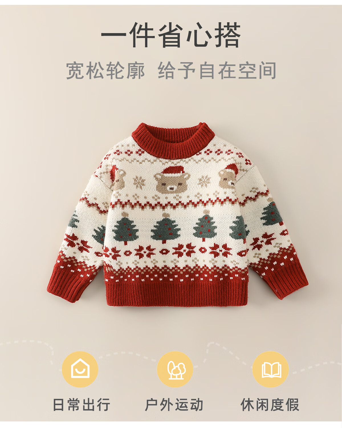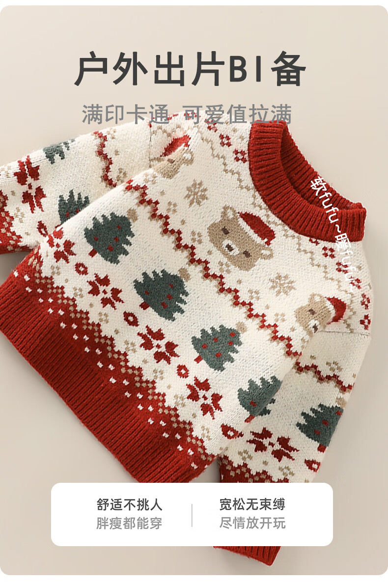 Mami Maca (MOMOCO) children's clothing boys' New Year's wear sweater 2025 winter baby thickened sweater beige 80