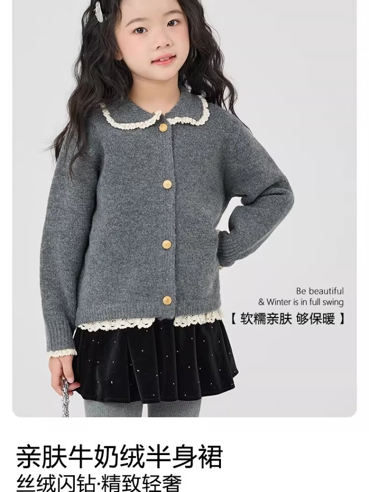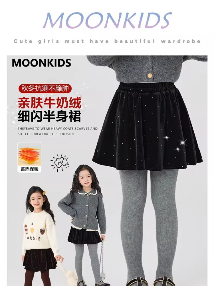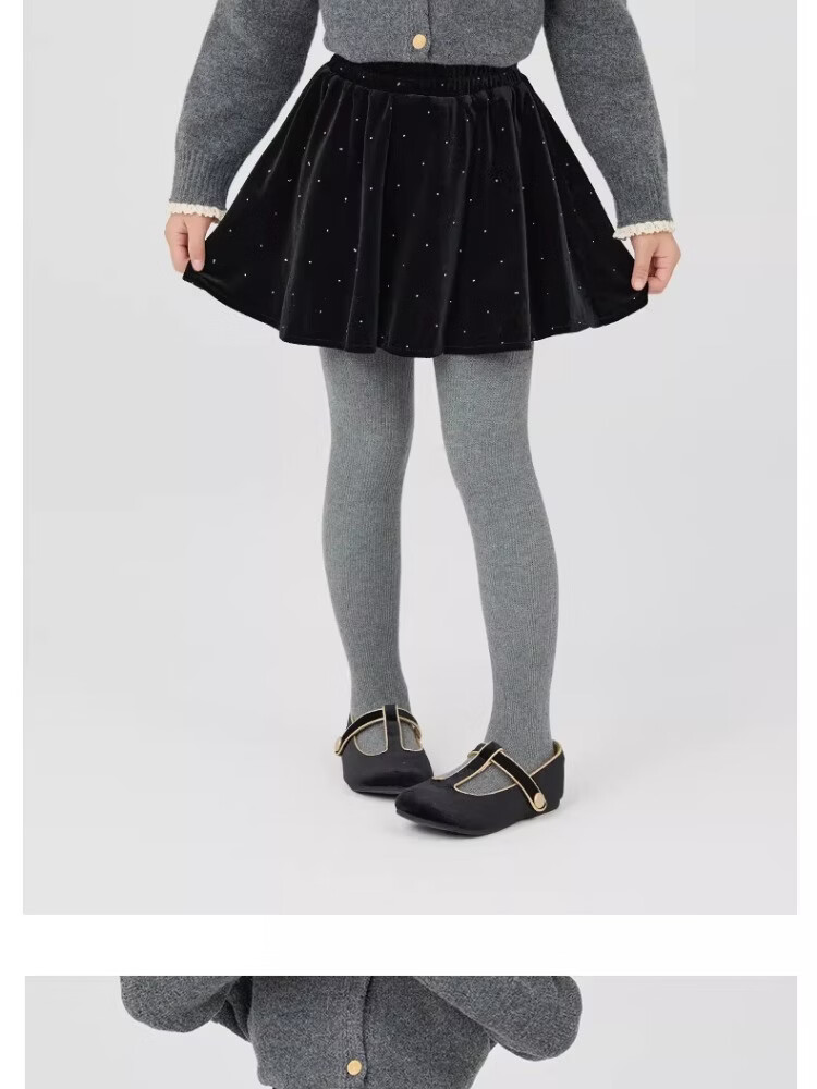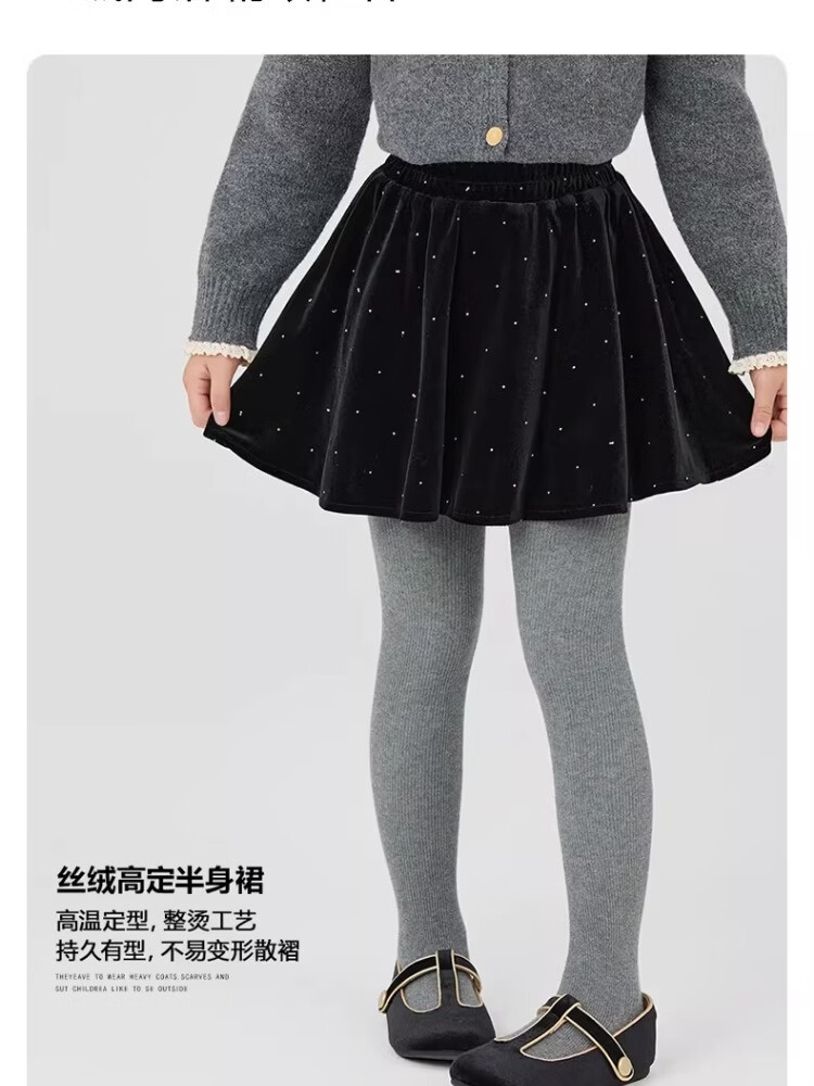 I.KARNOW girls velvet skirt winter 2026 new children's winter clothing high-end skirt big children fashion black skirt 4500 black velvet skirt no pantyhose 140