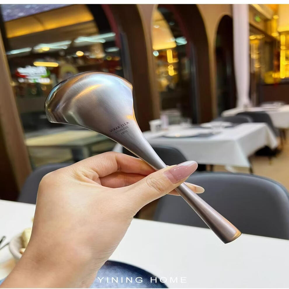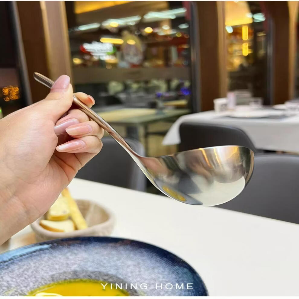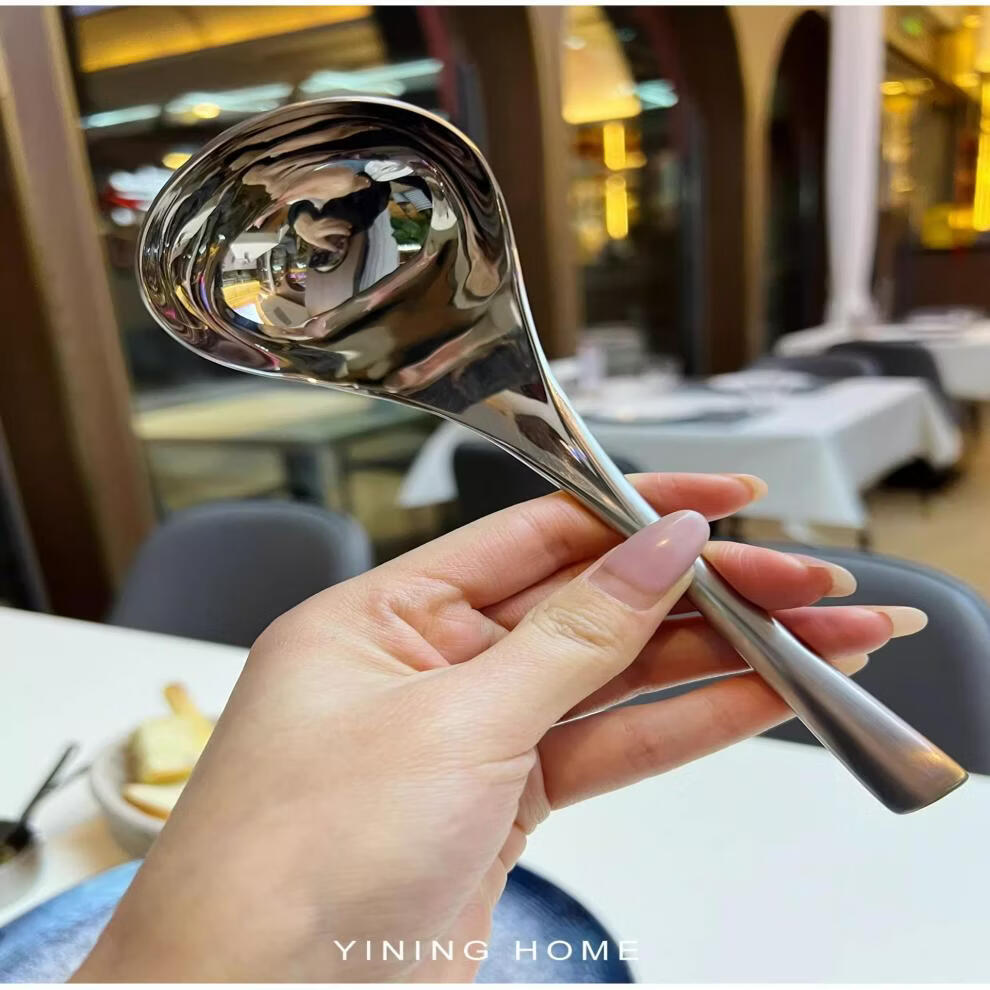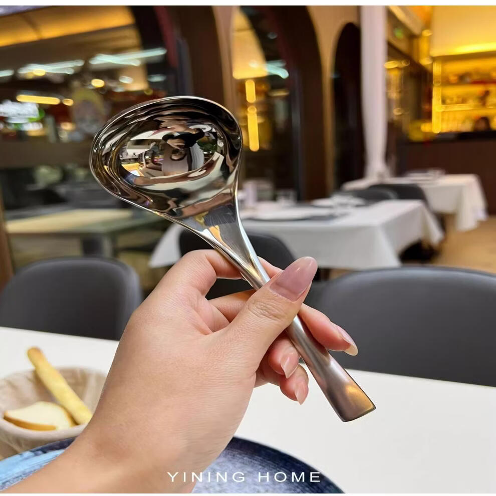 WANIOT stainless steel long handle spoon office coffee spoon dessert creative mixing spoon rice spoon teaspoon spoon long soup spoon exclusive edition square tail deepened soup spoon 1