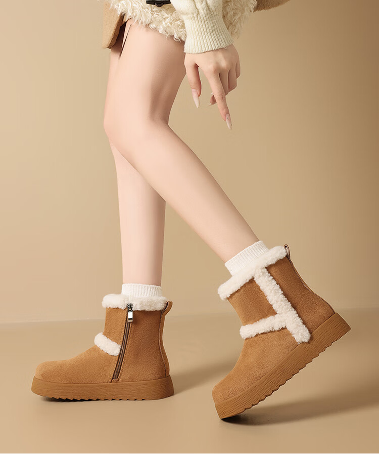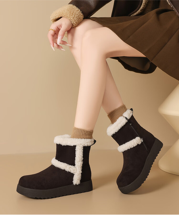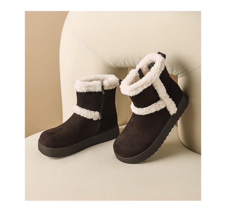 ZHR is the snow boots for women, thickened and velvet warm cotton shoes, women's 2025 winter new versatile furry shoes, coffee color 37