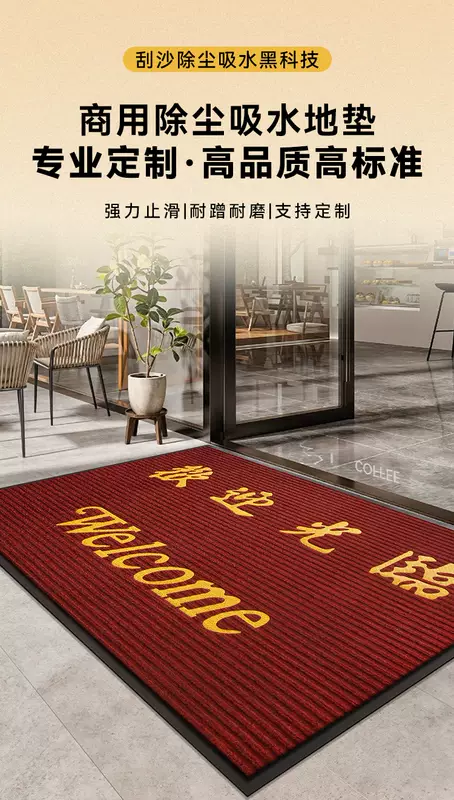 Yusenyi Welcome Door Mat Entry Floor Mat Commercial Door Welcome Foot Mat Striped Shop Opening Carpet Custom Gray Wordless Edge 120x300cm