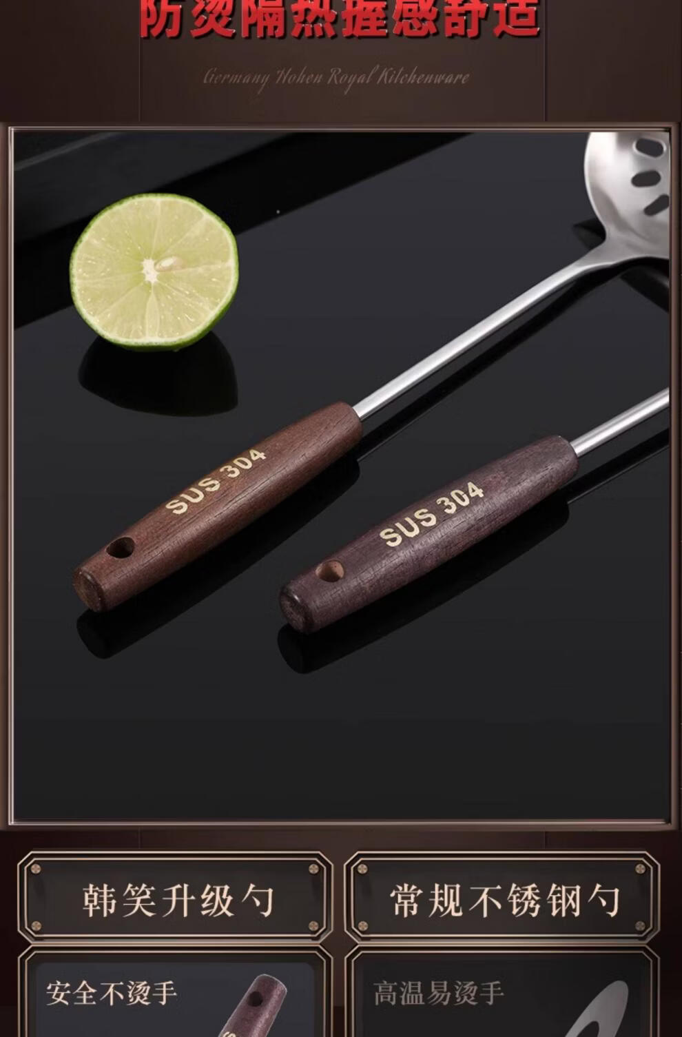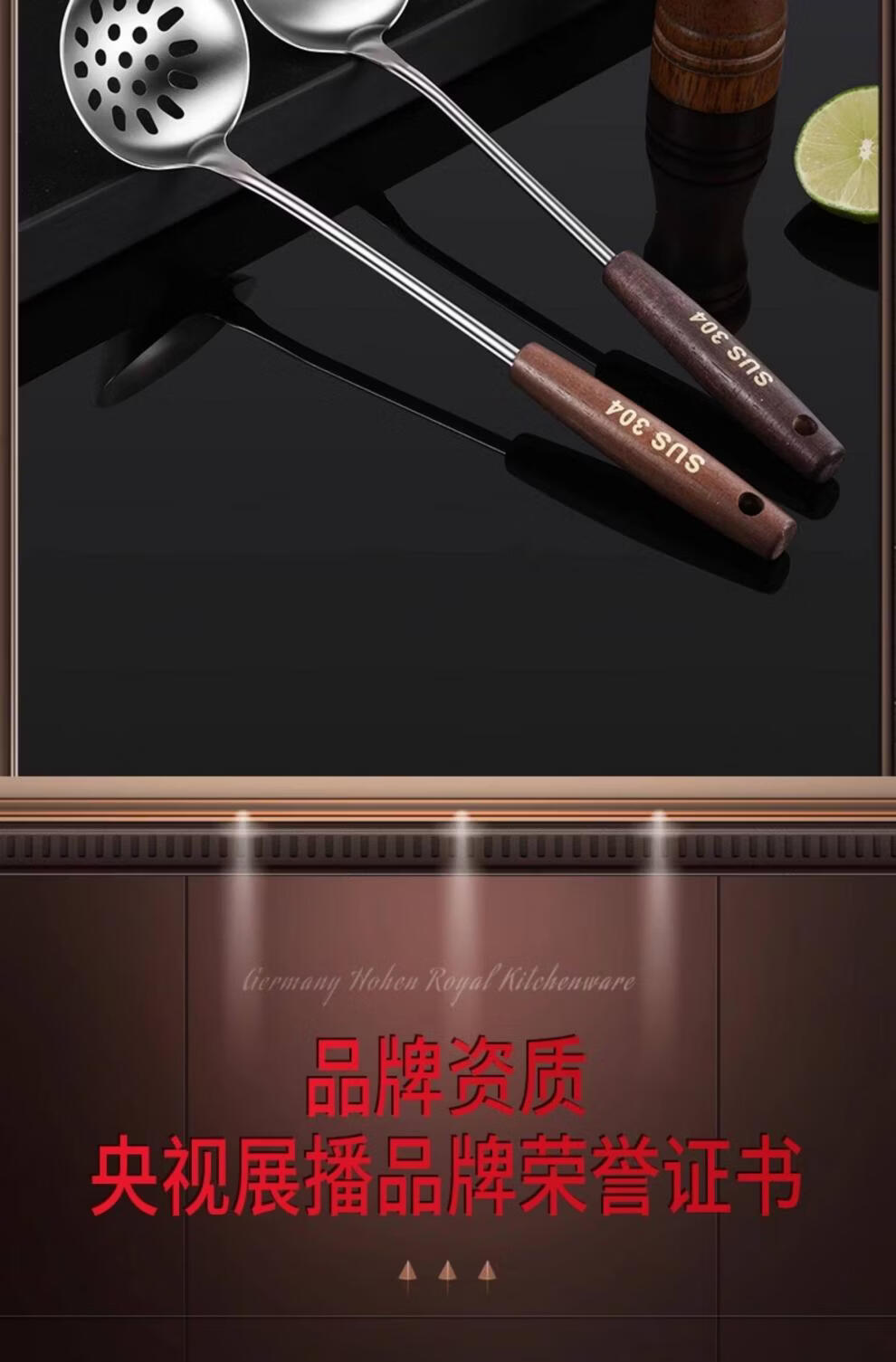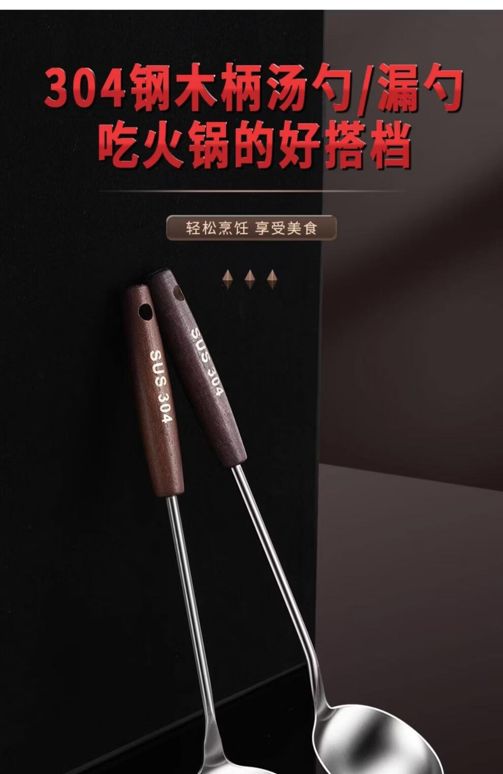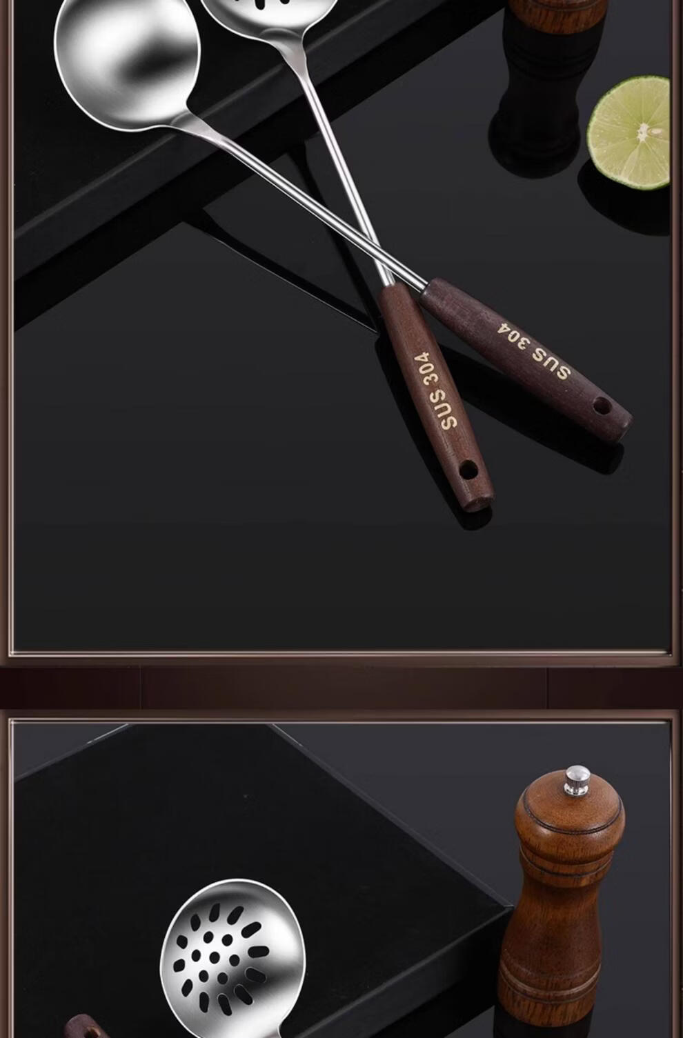 Tuojin German imported quality food grade 304 stainless steel hot pot spoon colander set household wooden handle small spoon stainless steel hot pot spoon set - solid wood handle.3