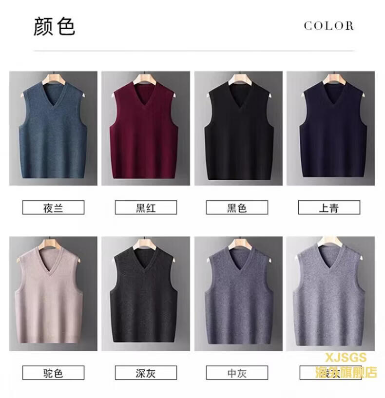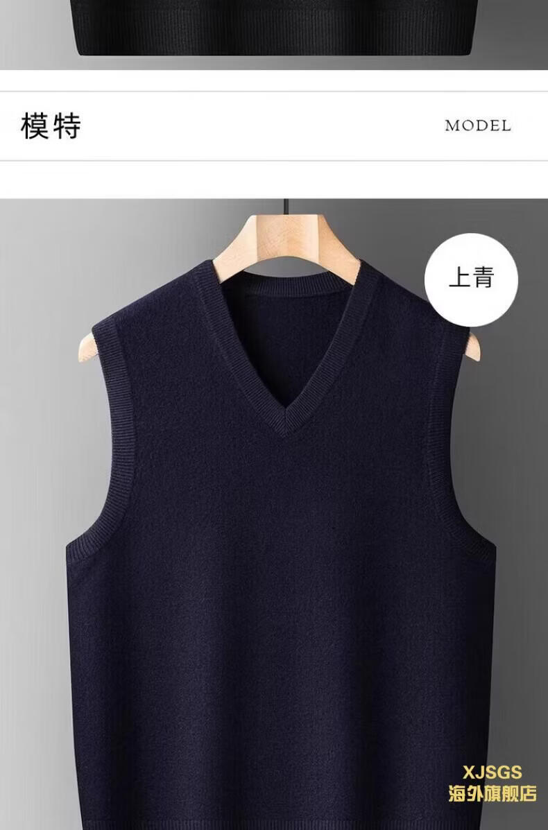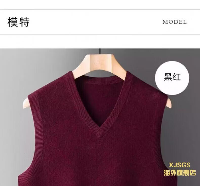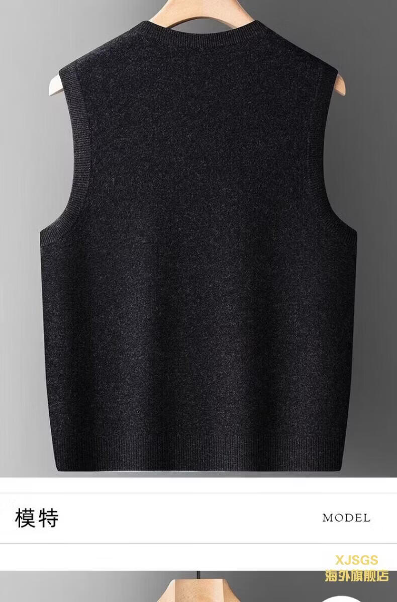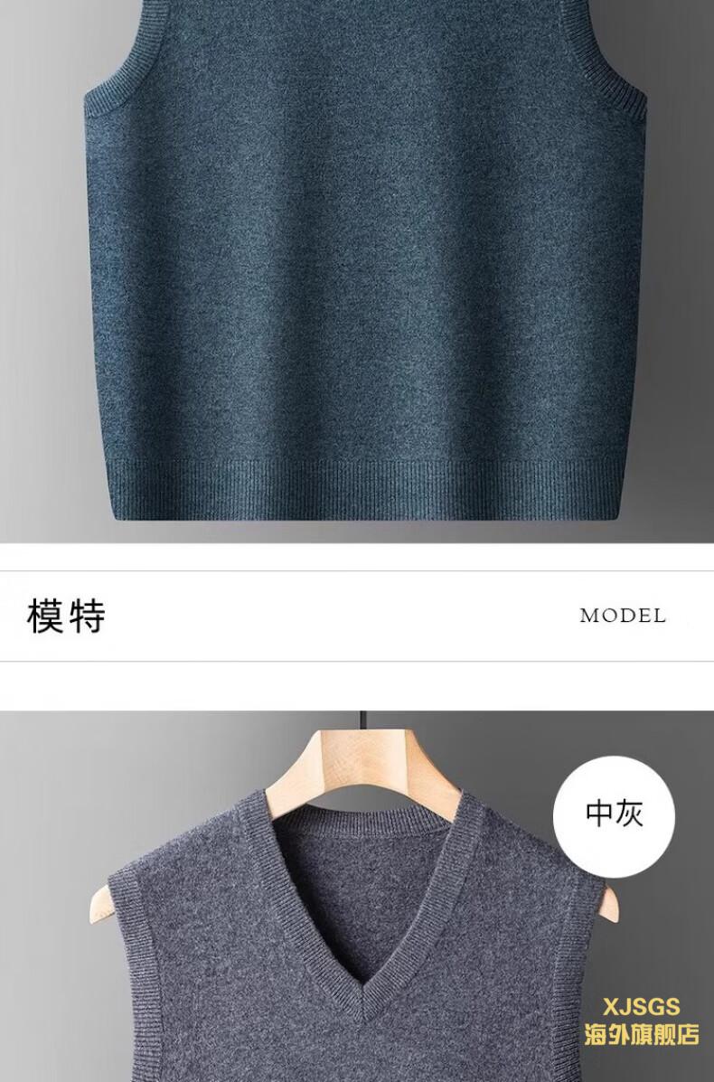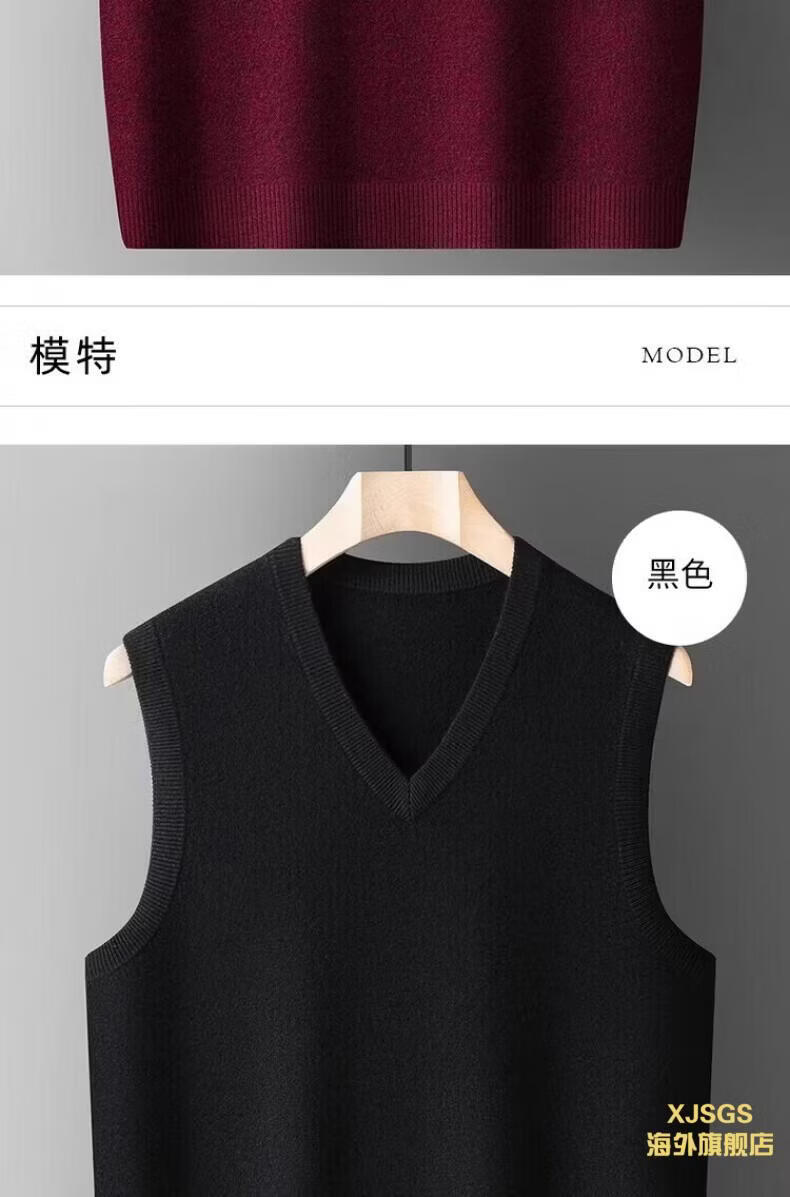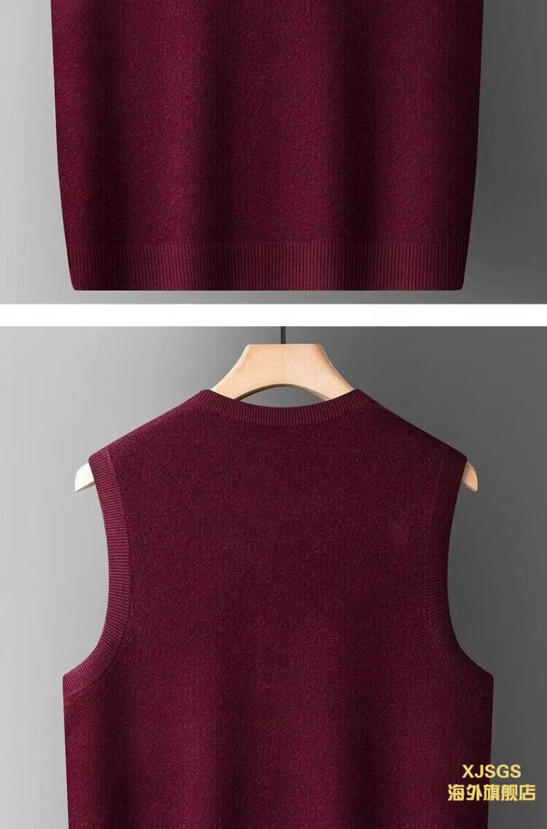 XJSGS international luxury high-end brand woolen sweater vest men's autumn and winter waistcoat V-neck daddy vest middle-aged and elderly high-end black and red ready stock winter style M /170/88A