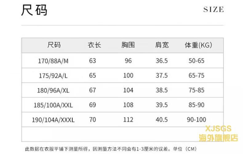 China (cm) 165 / 88-90 170 / 96-98 175 / 108-110 180 / 118-122 185 / 126-130