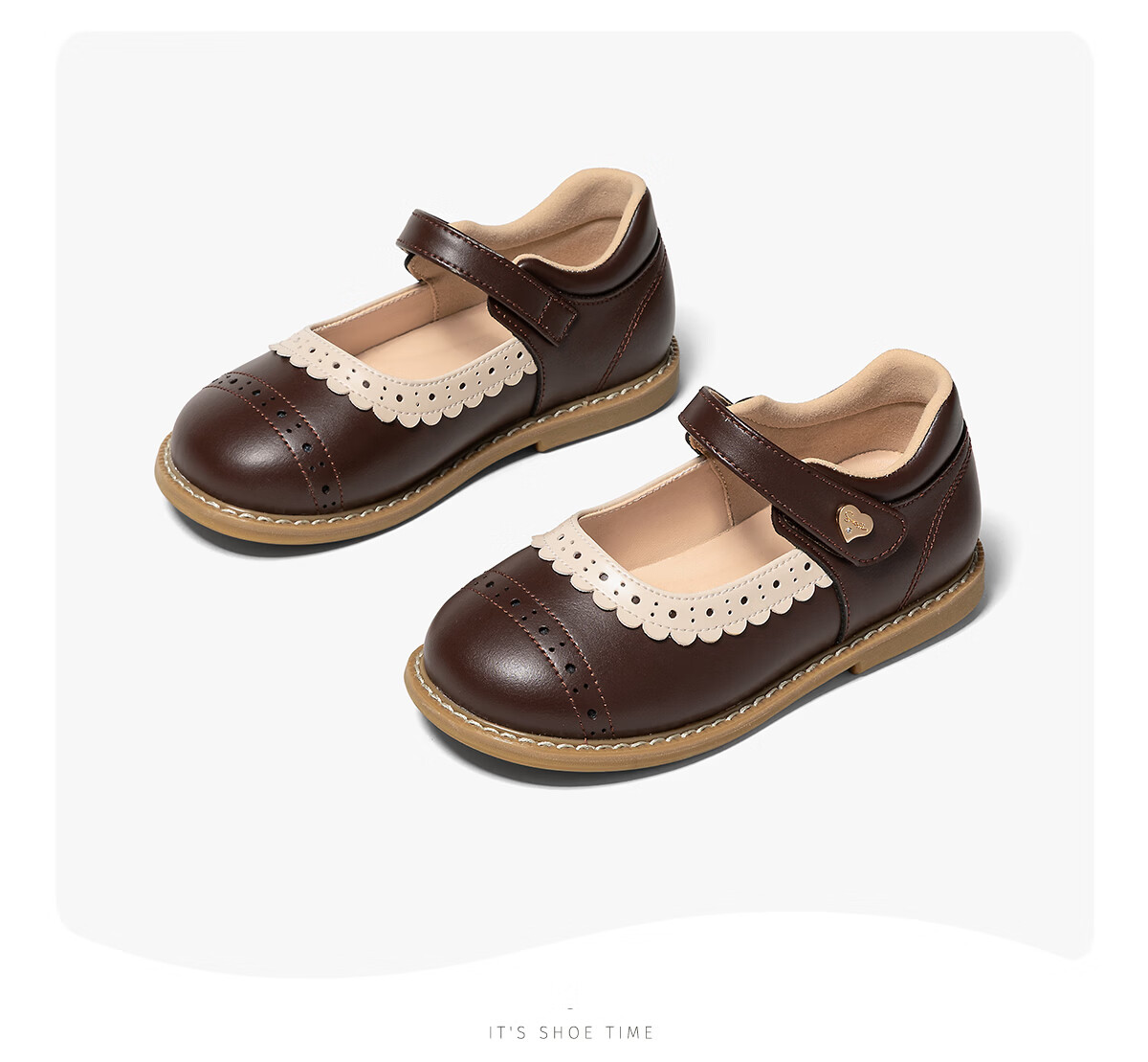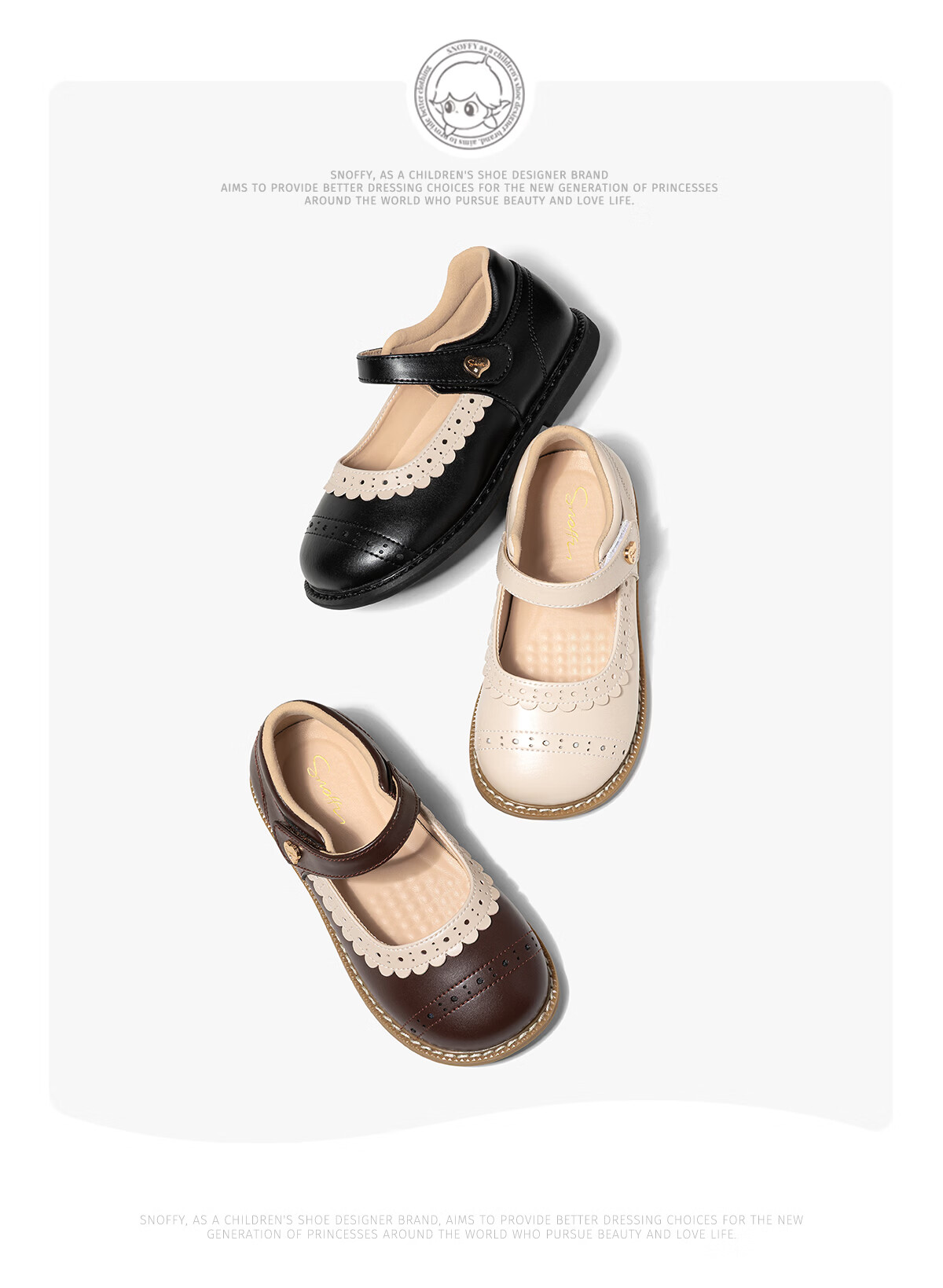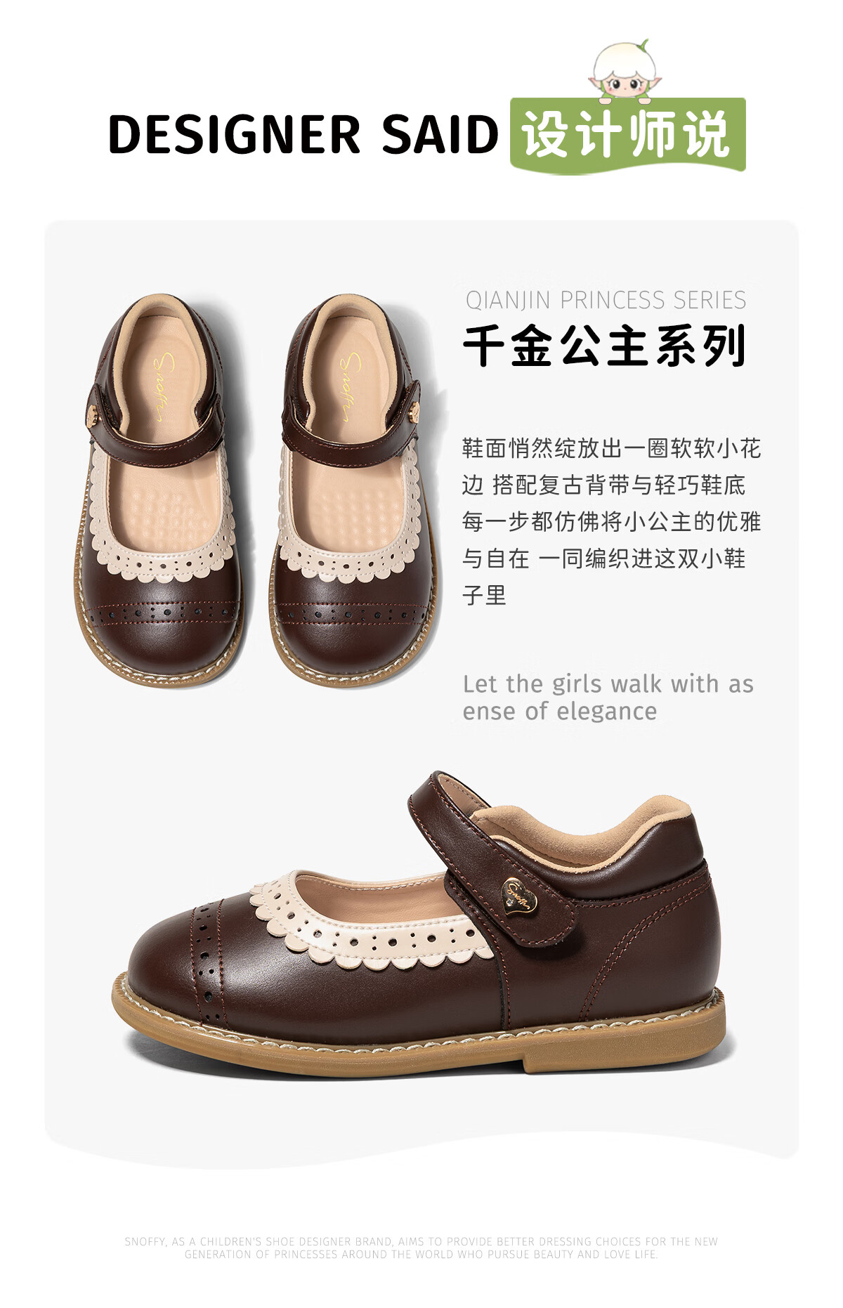 Snuffy Girls' Leather Shoes Children's Princess Shoes 2026 Spring and Autumn New Fashion Brogue Little Girls' Single Shoes Coffee Brown 30 Foot Length 18.2cm
