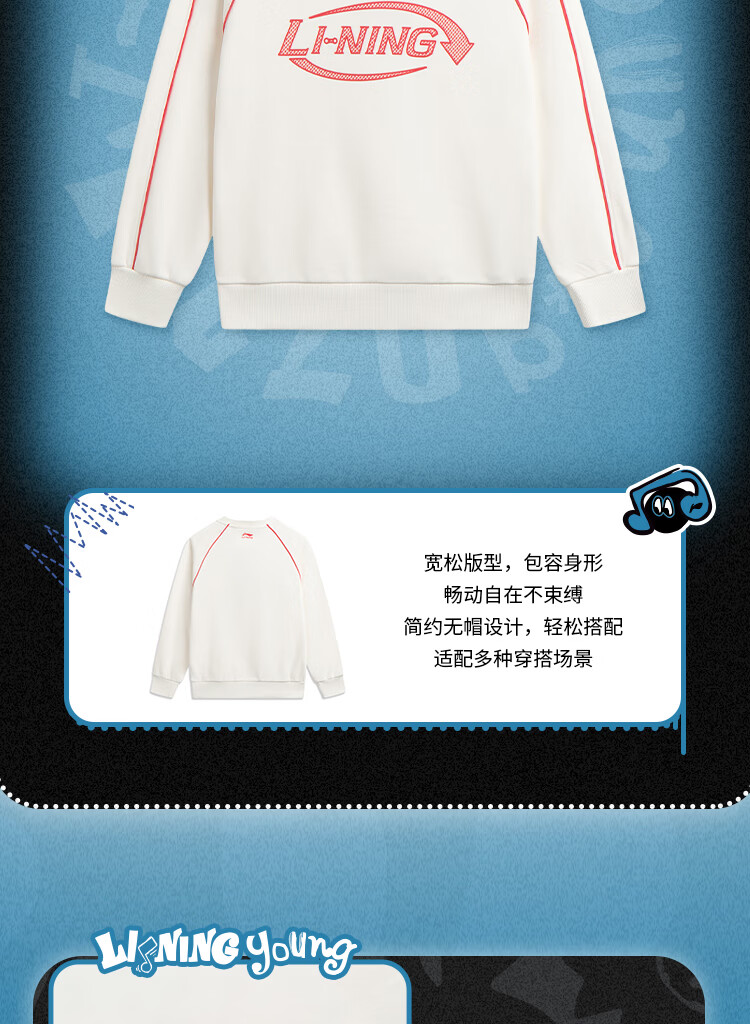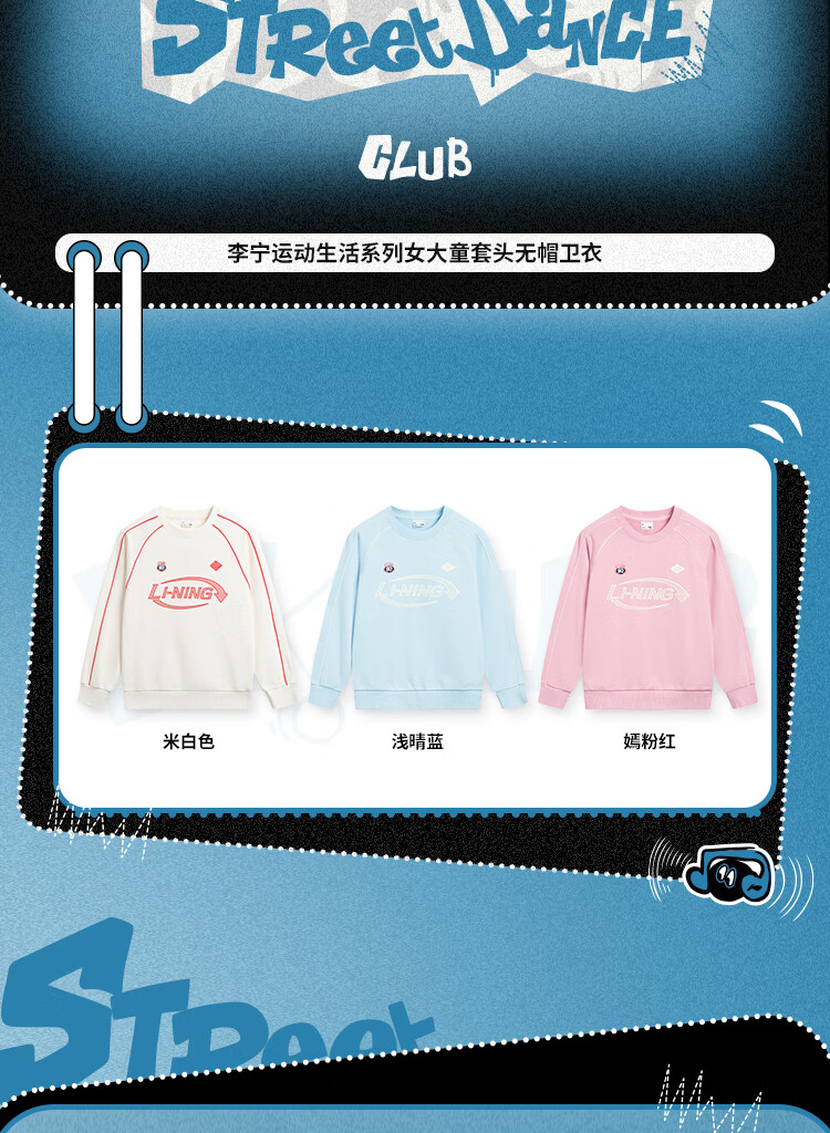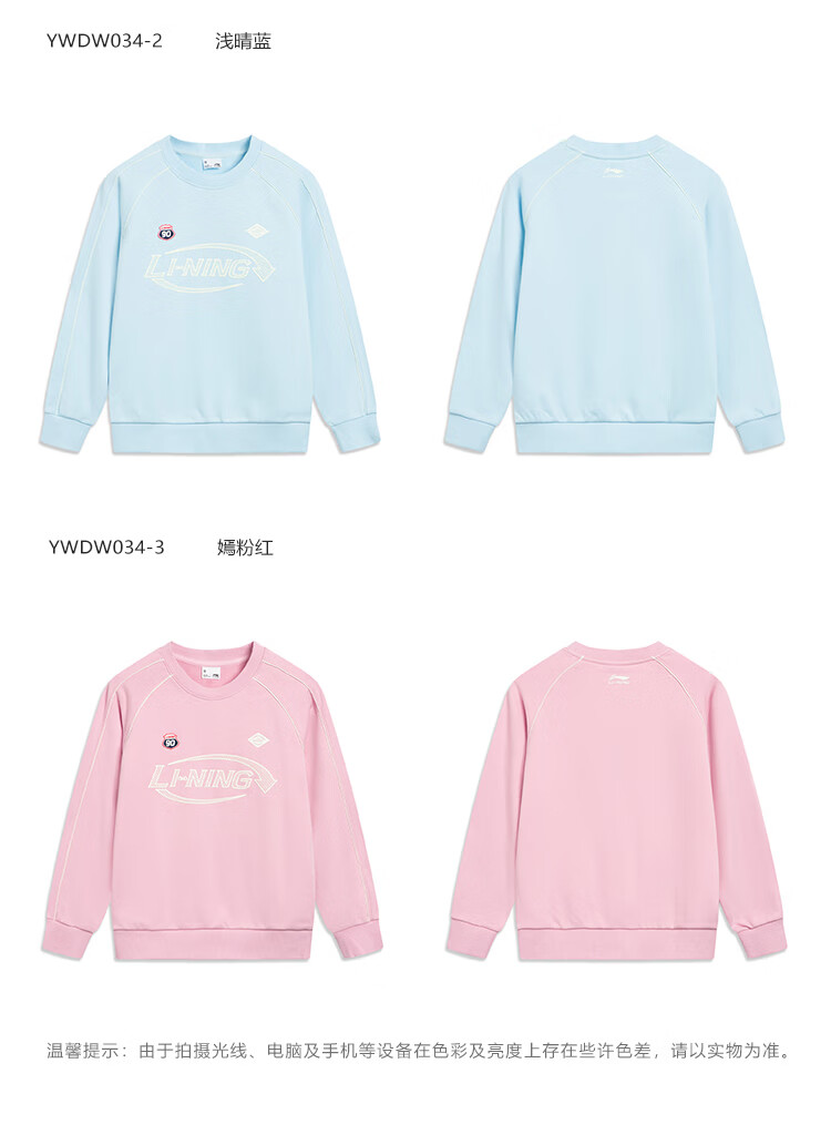 Li Ning children's clothing children's sweatshirt for girls and boys skin-friendly, soft, loose and versatile pullover hooded top YWDW034 Yan pink-3 170