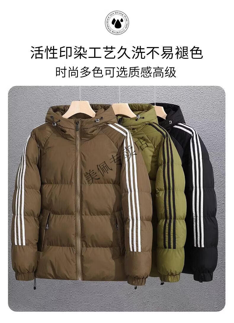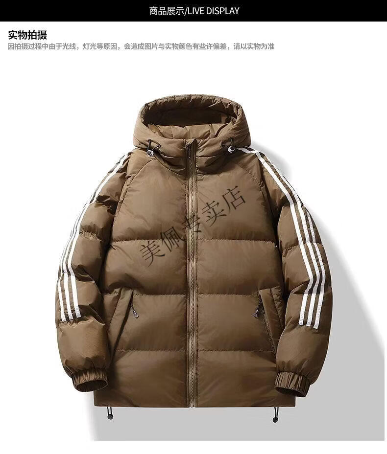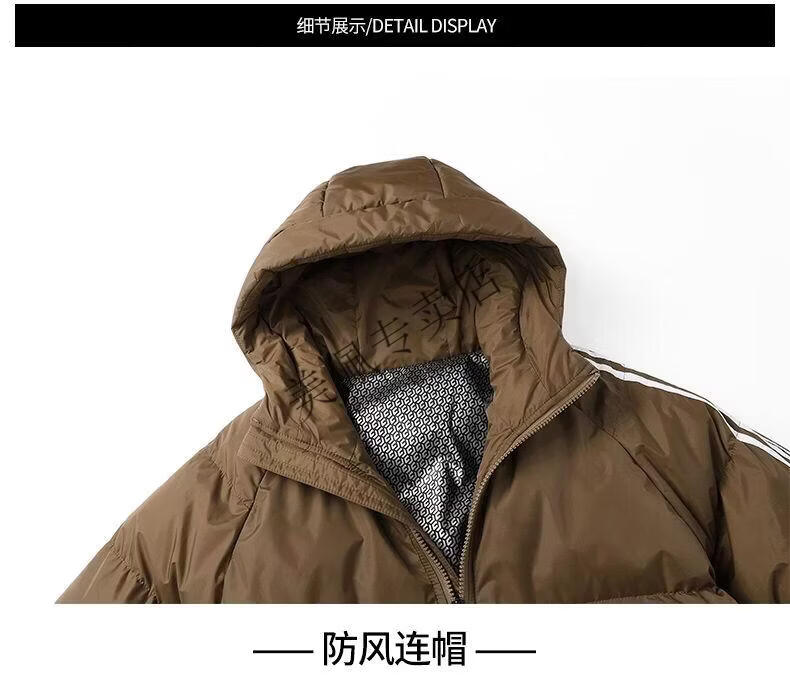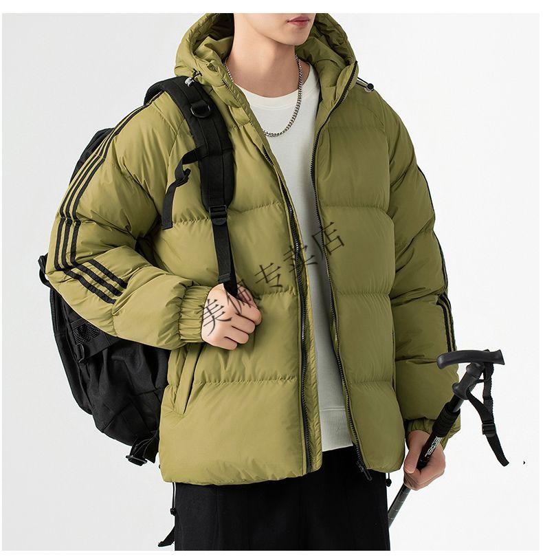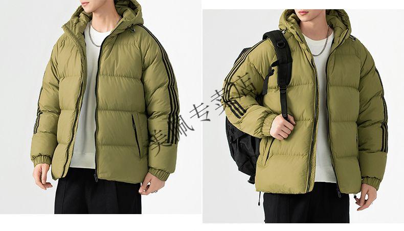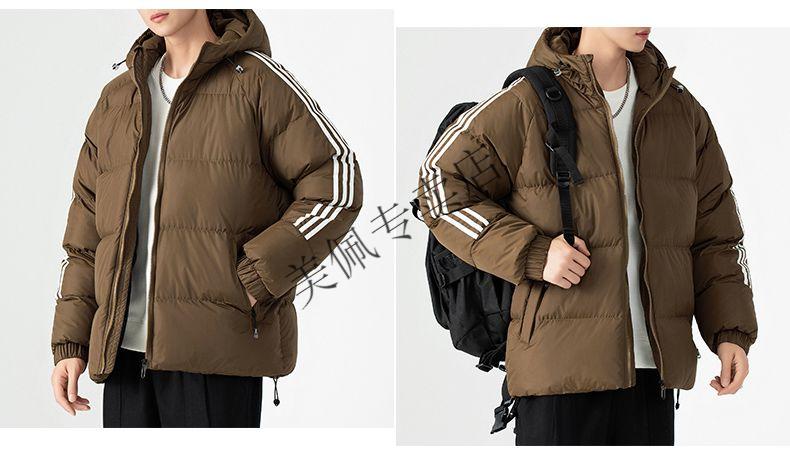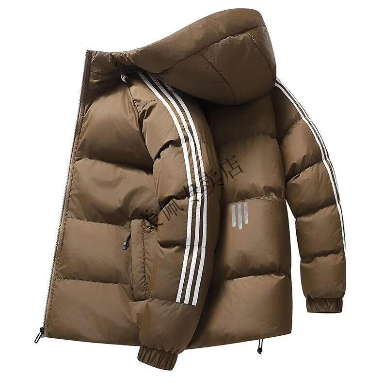 Playboy (PLAYBOY) new winter thickened hooded cotton jacket, warm and cold-proof cotton coat, casual bread coat, three-stripe cotton coat, men's jacket, Khaki S