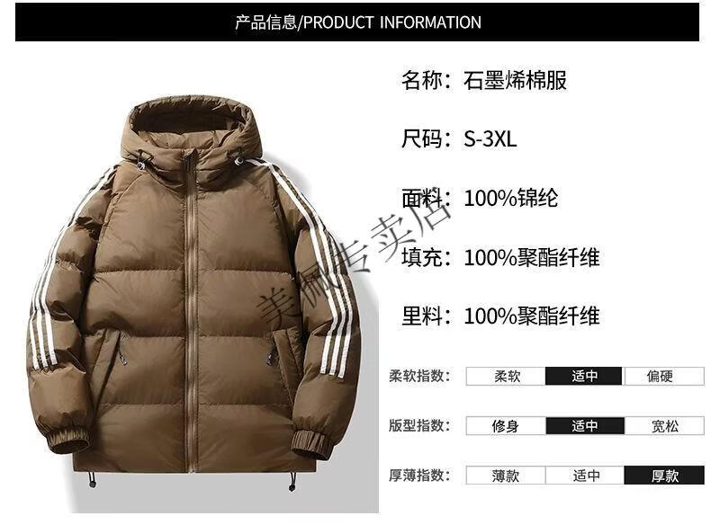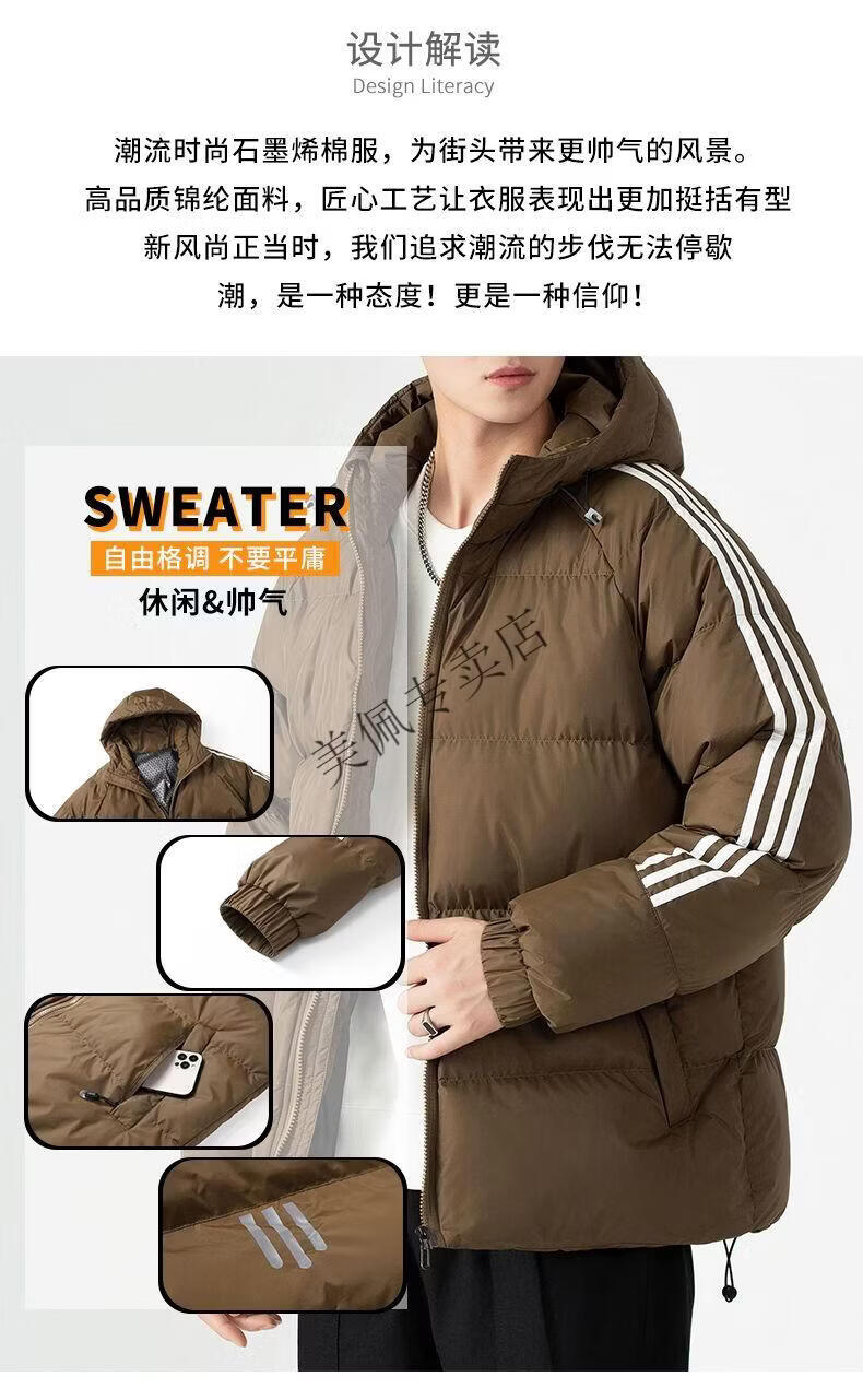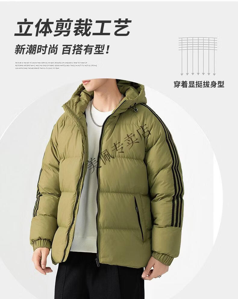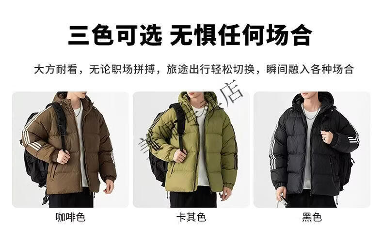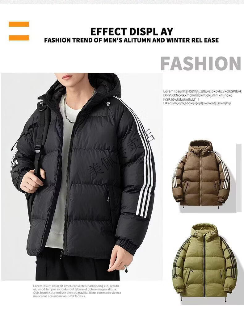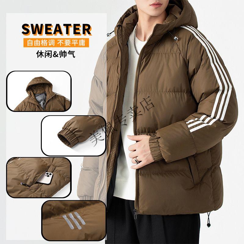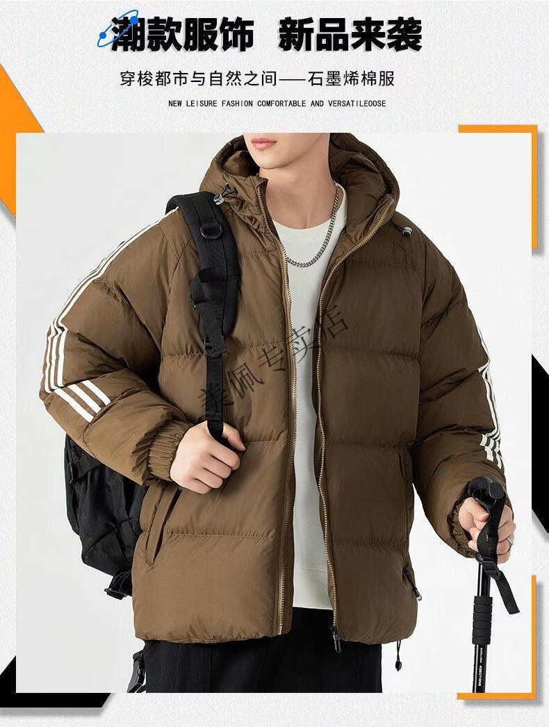 Playboy (PLAYBOY) new winter thickened hooded cotton jacket, warm and cold-proof cotton coat, casual bread coat, three-stripe cotton coat, men's jacket, Khaki S