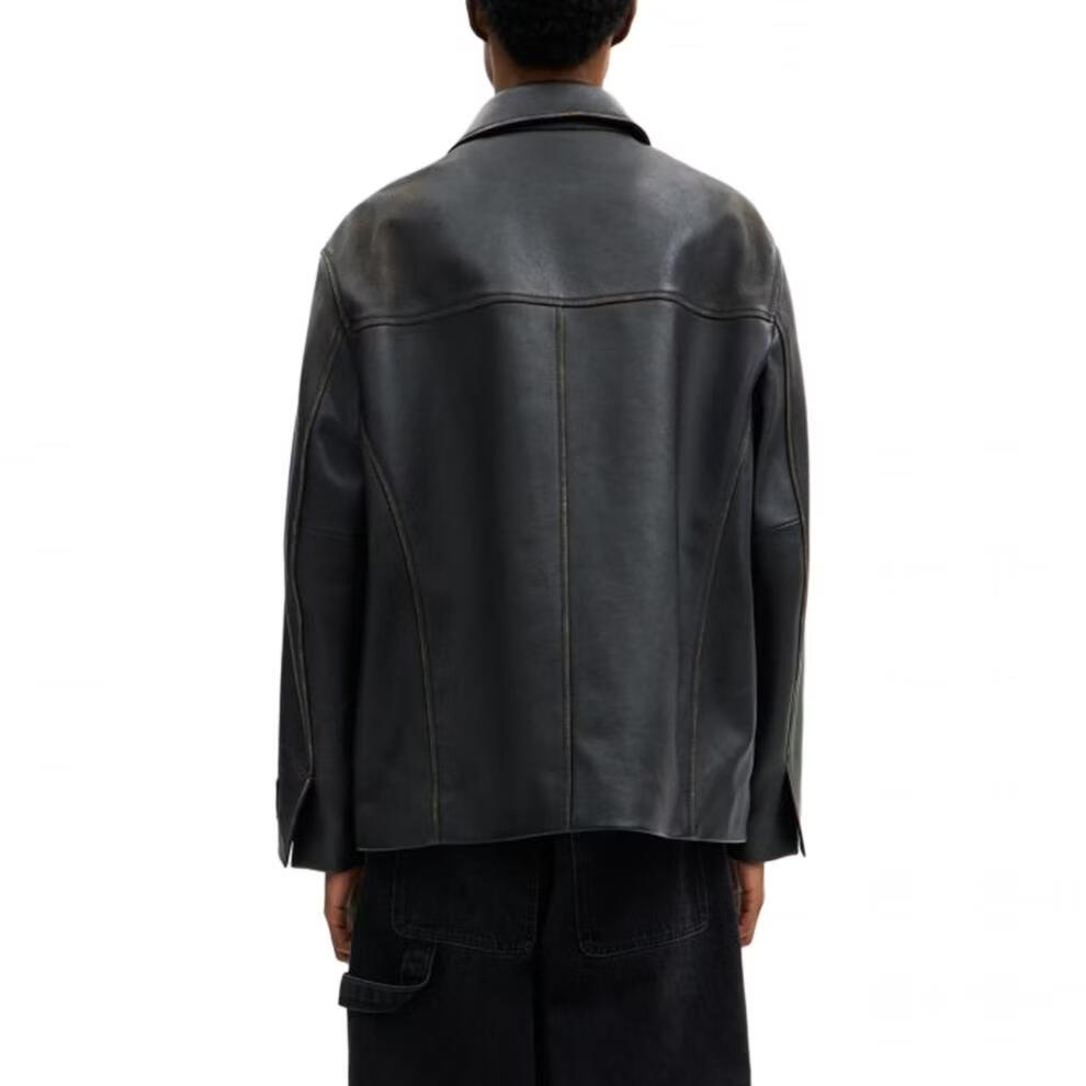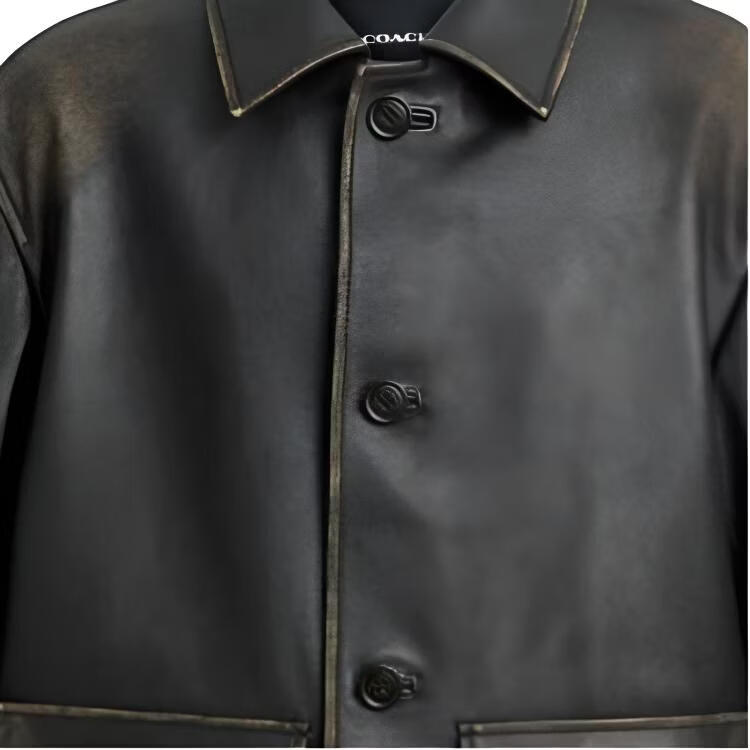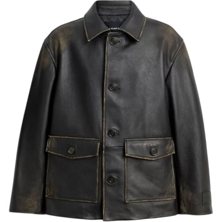 COACH FW25 distressed single-breasted long-sleeved leather jacket for men, black M