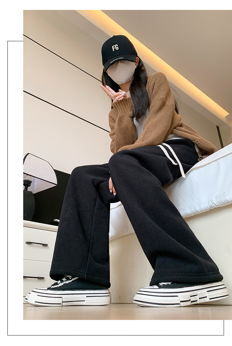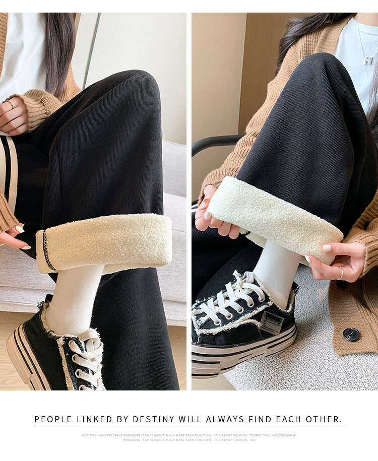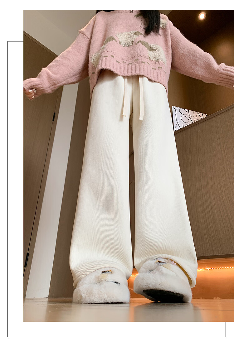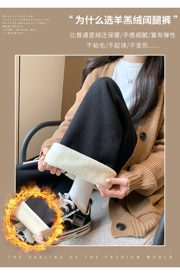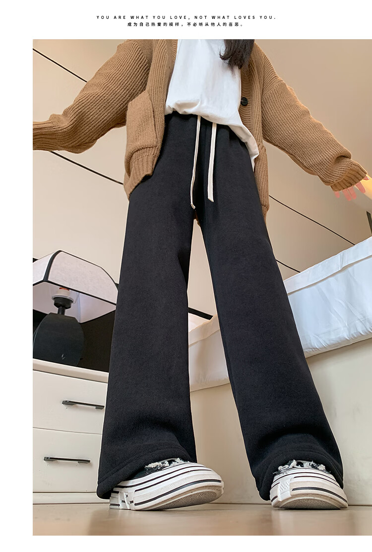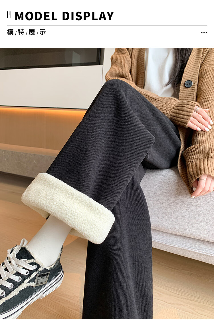 Trendy camel velvet plus velvet wide-leg pants for women, high-waisted, loose, casual, straight-leg trousers, drapey, thickened, warm cotton trousers, dark blue L