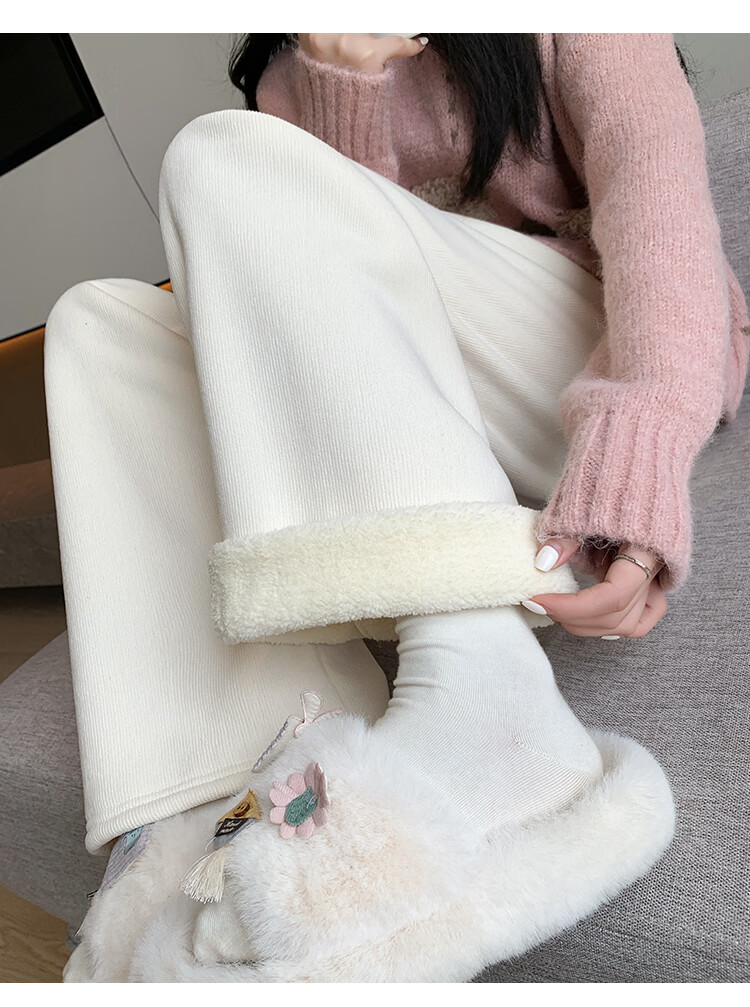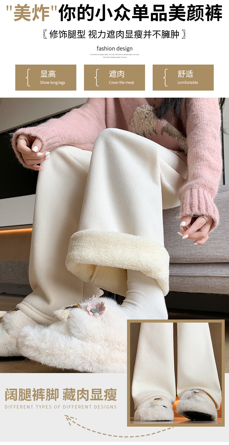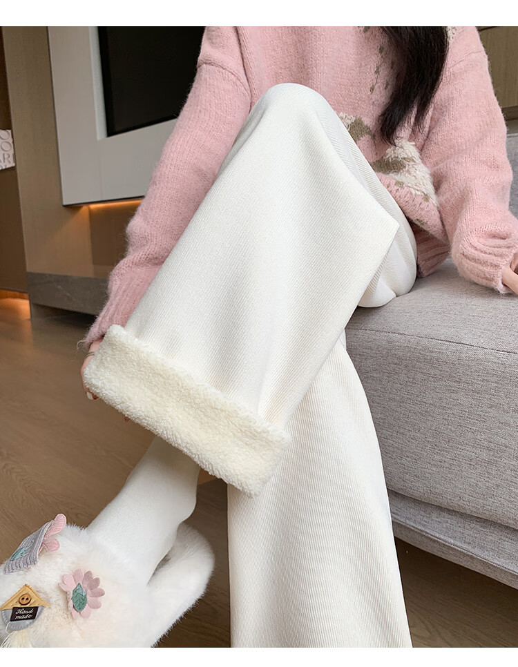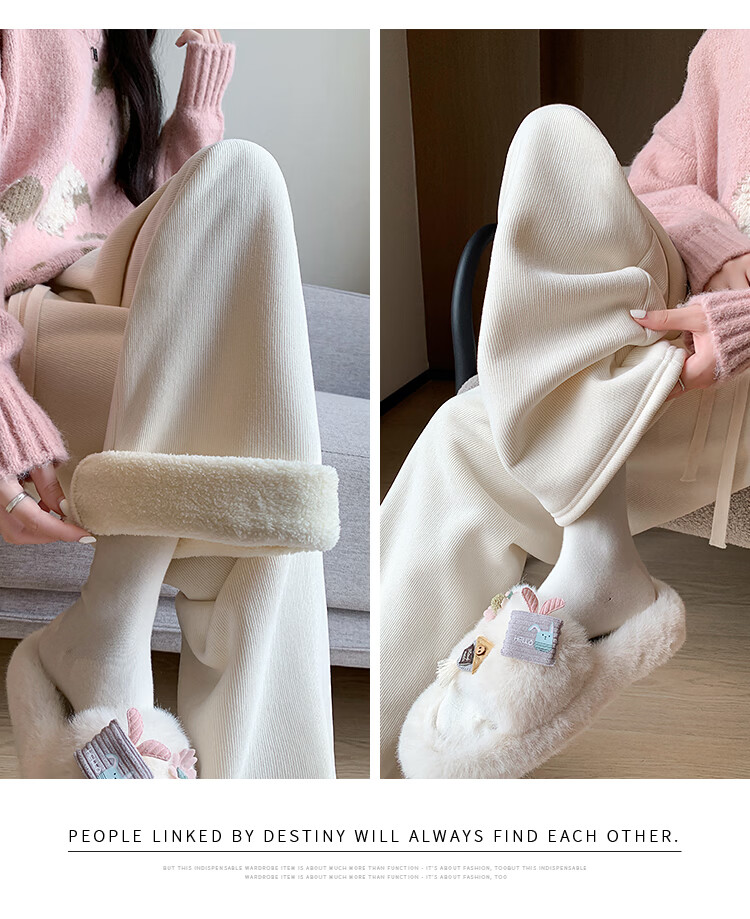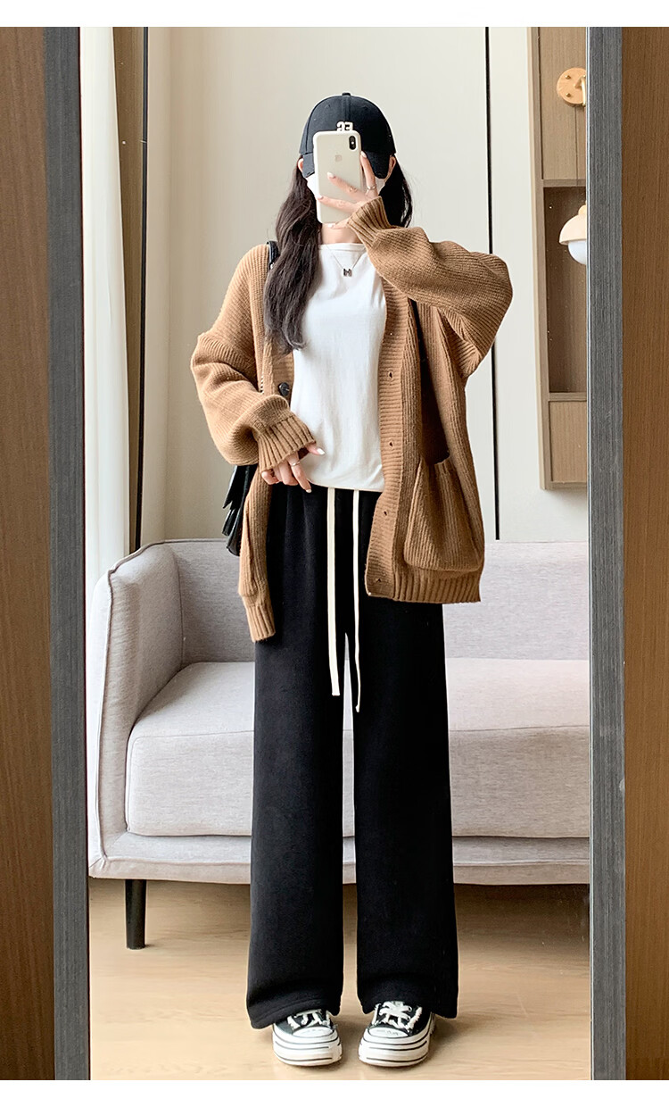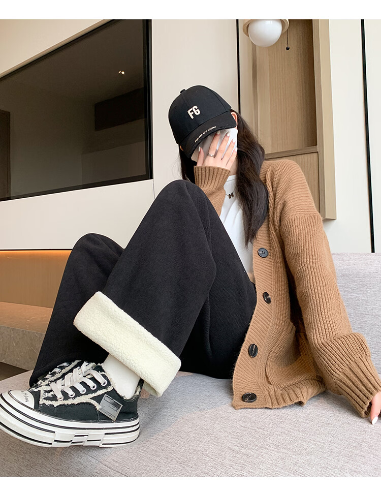 Trendy camel velvet plus velvet wide-leg pants for women, high-waisted, loose, casual, straight-leg trousers, drapey, thickened, warm cotton trousers, dark blue L