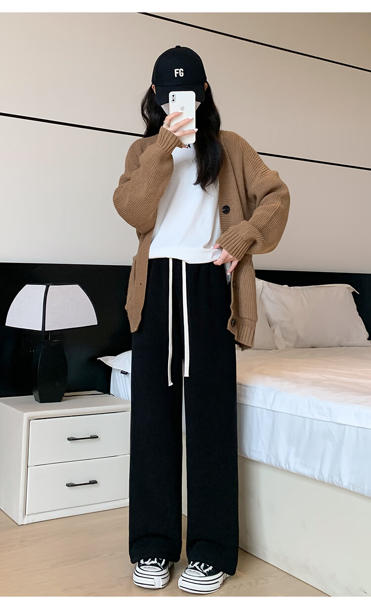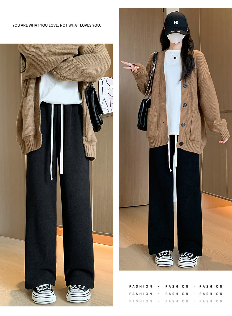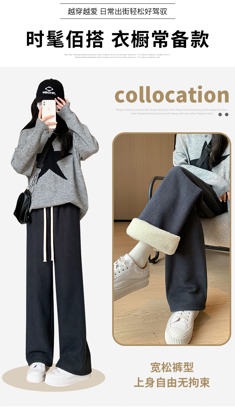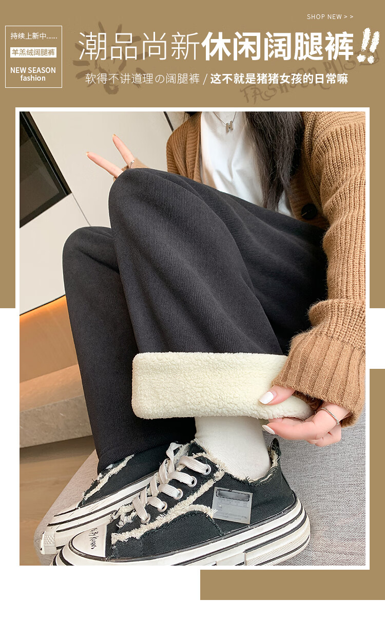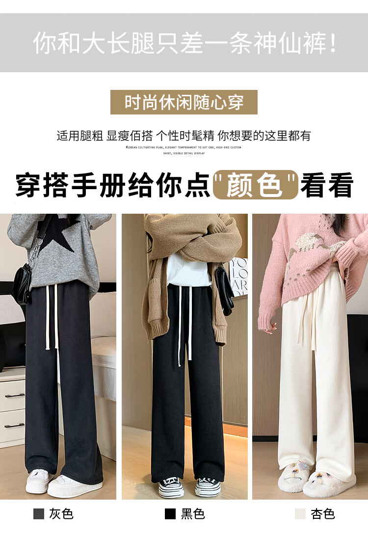 Trendy camel velvet plus velvet wide-leg pants for women, high-waisted, loose, casual, straight-leg trousers, drapey, thickened, warm cotton trousers, dark blue L