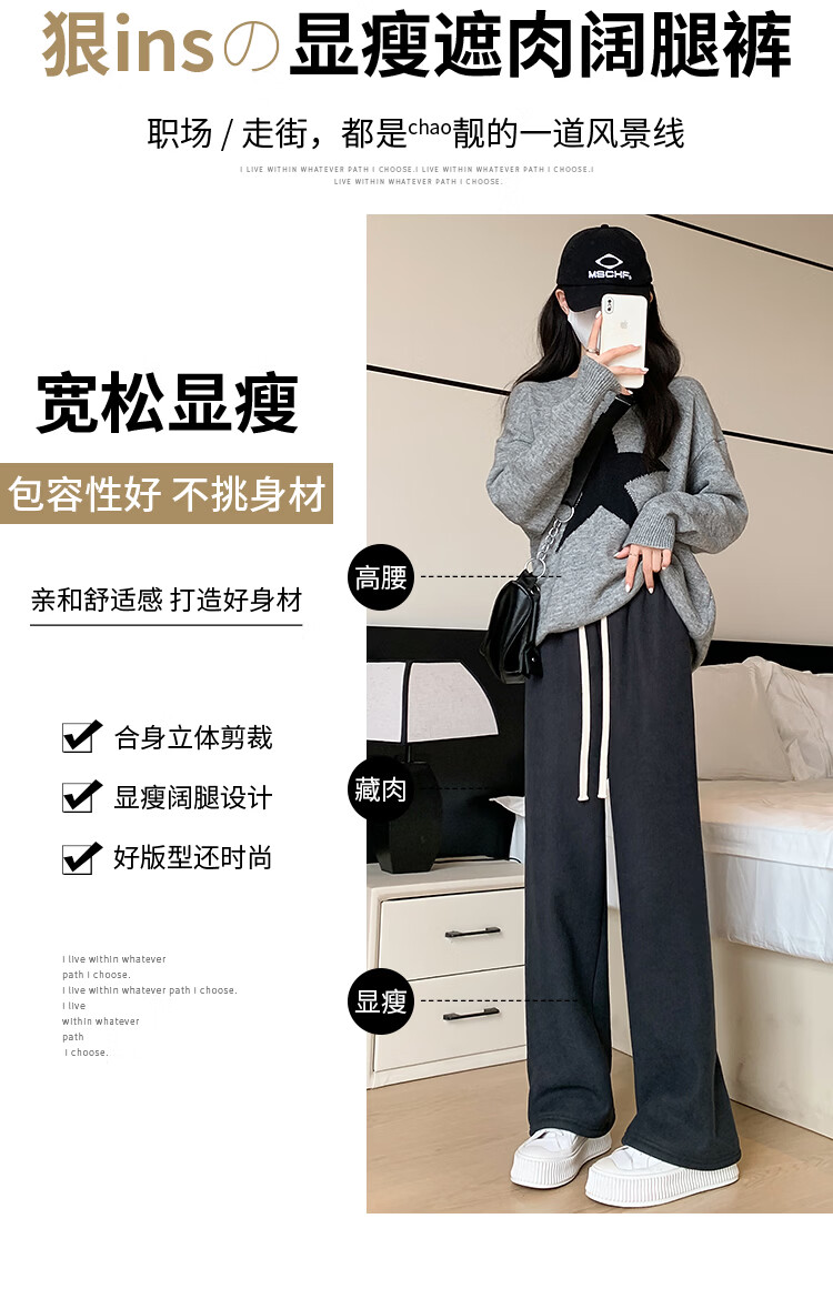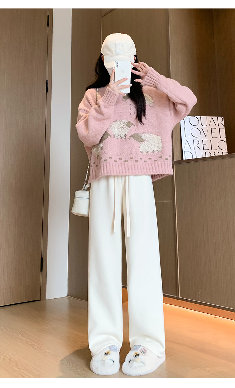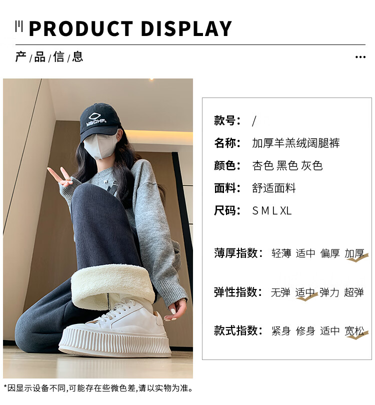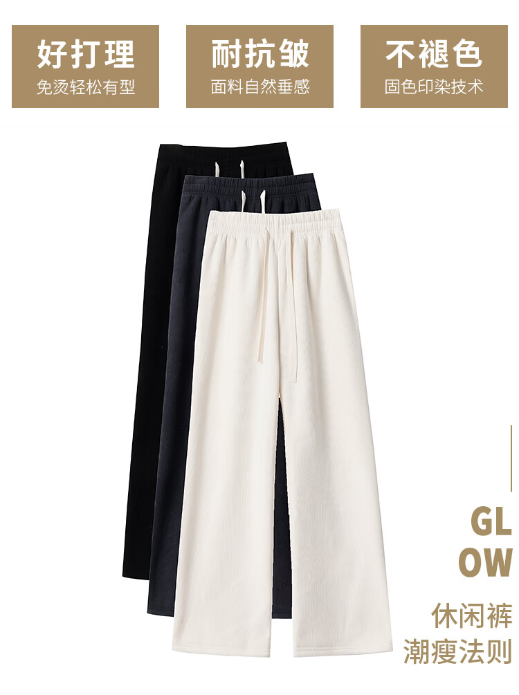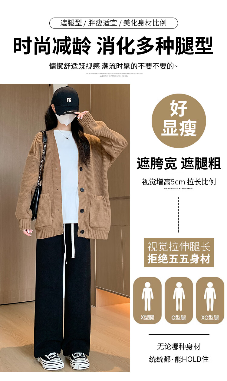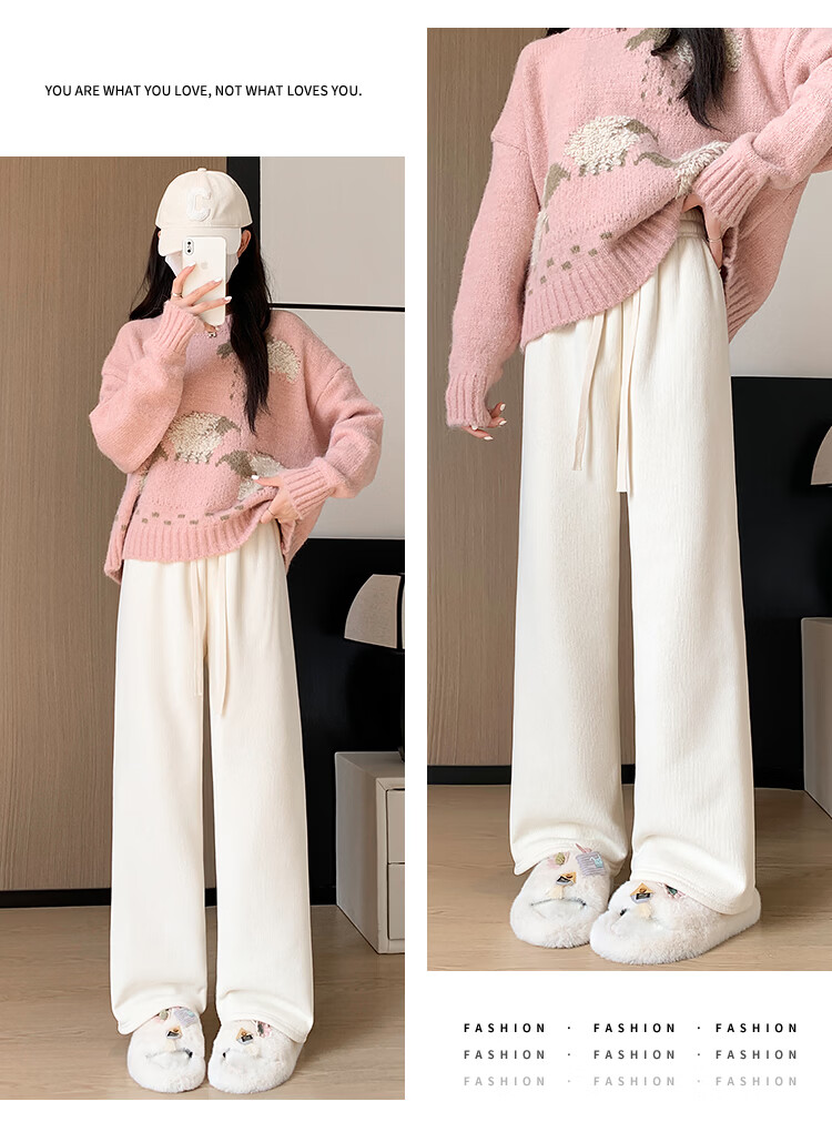 Trendy camel velvet plus velvet wide-leg pants for women, high-waisted, loose, casual, straight-leg trousers, drapey, thickened, warm cotton trousers, dark blue L