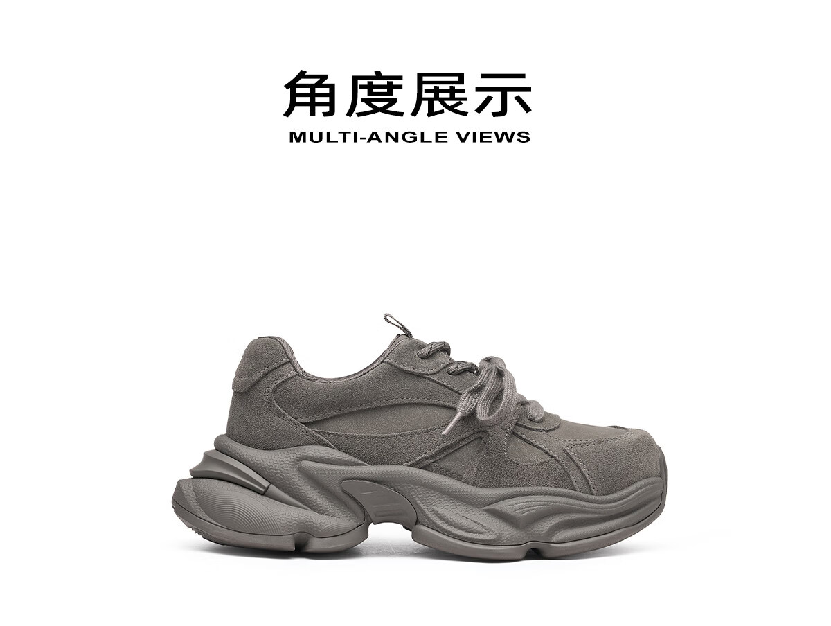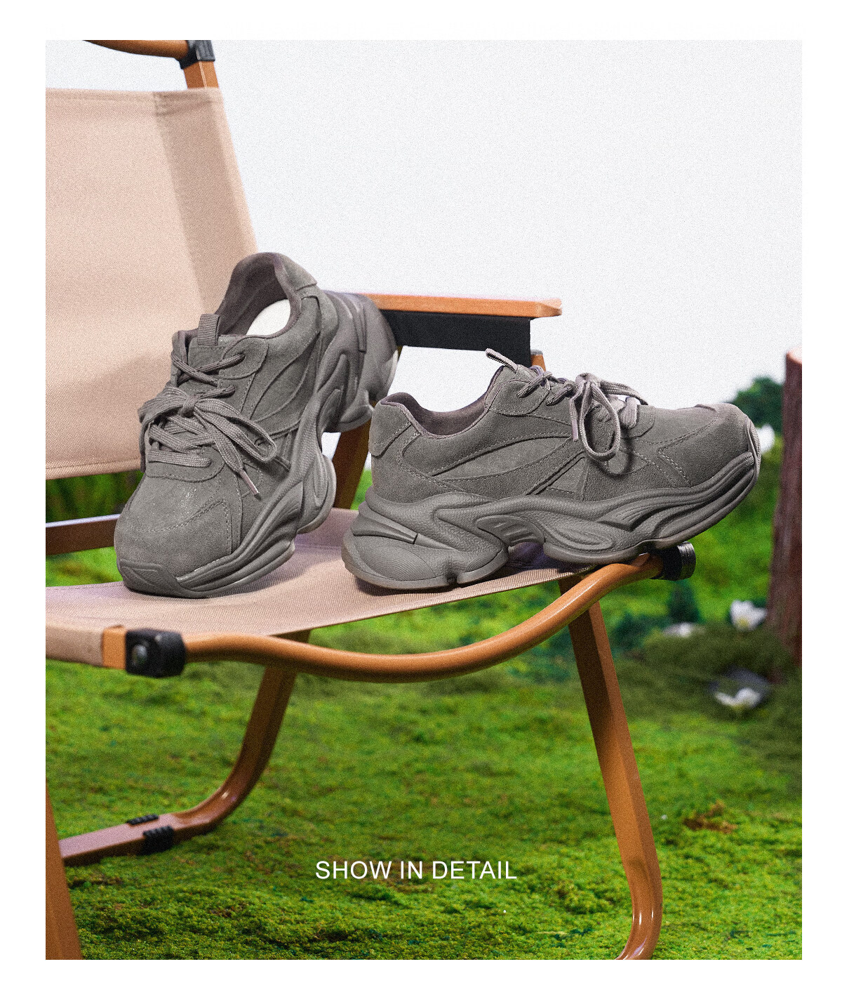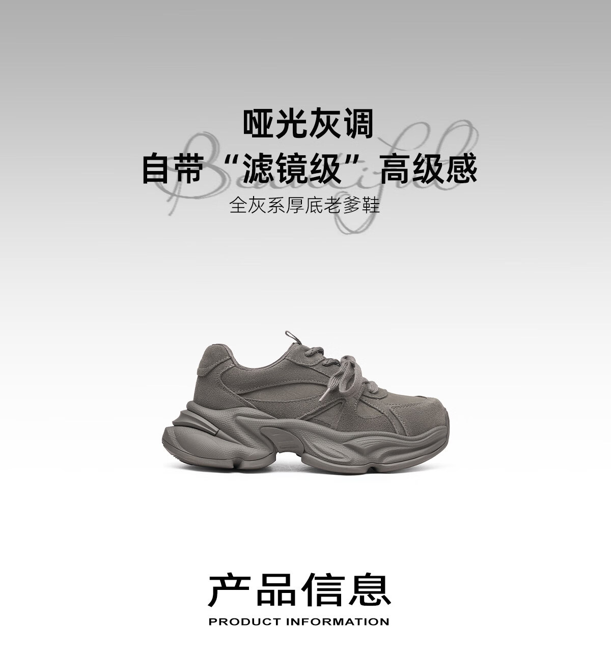 Poetry 2026 Spring New Thick-soled Heightening Daddy Shoes Women's Shoes Trendy Shoes Versatile Double Lace Casual Sports Shoes Gray 34