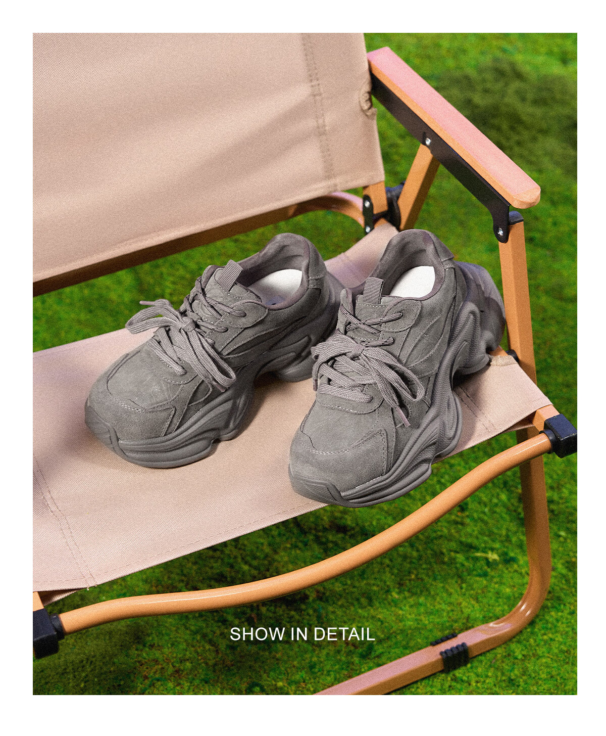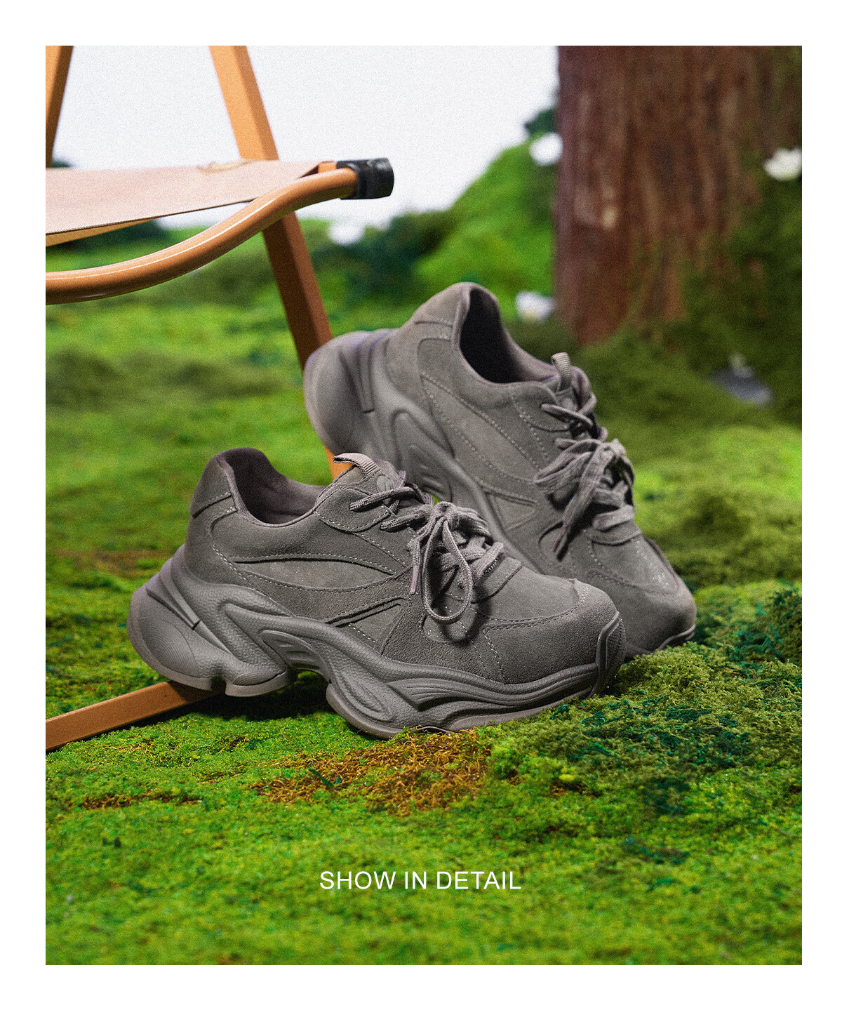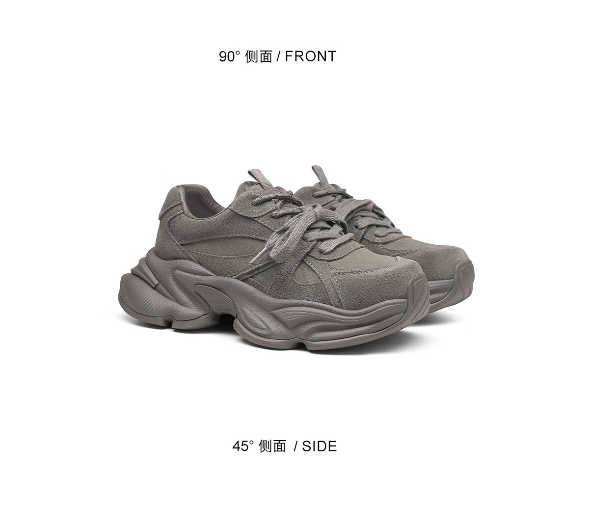 Poetry 2026 Spring New Thick-soled Heightening Daddy Shoes Women's Shoes Trendy Shoes Versatile Double Lace Casual Sports Shoes Gray 34