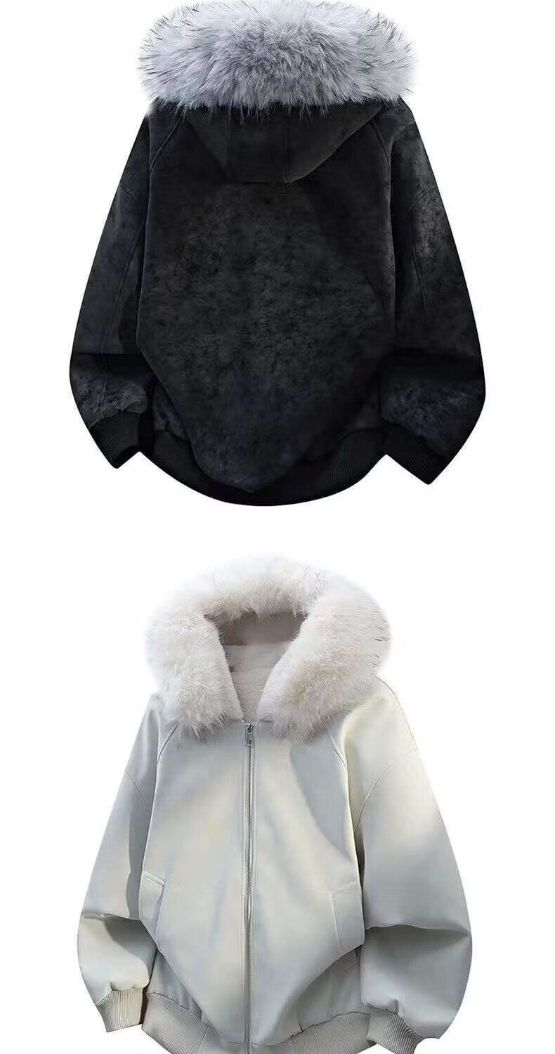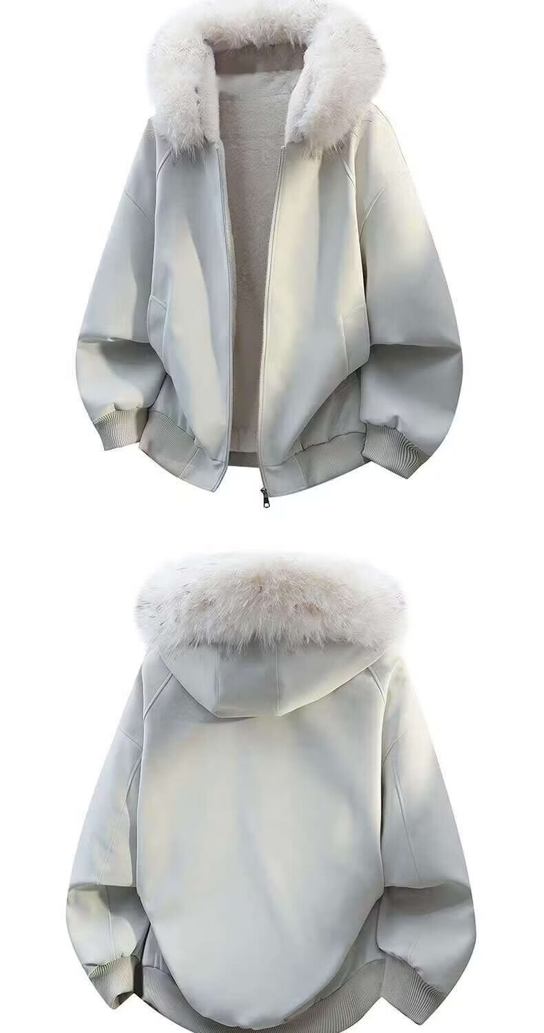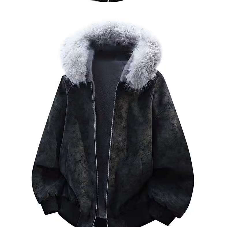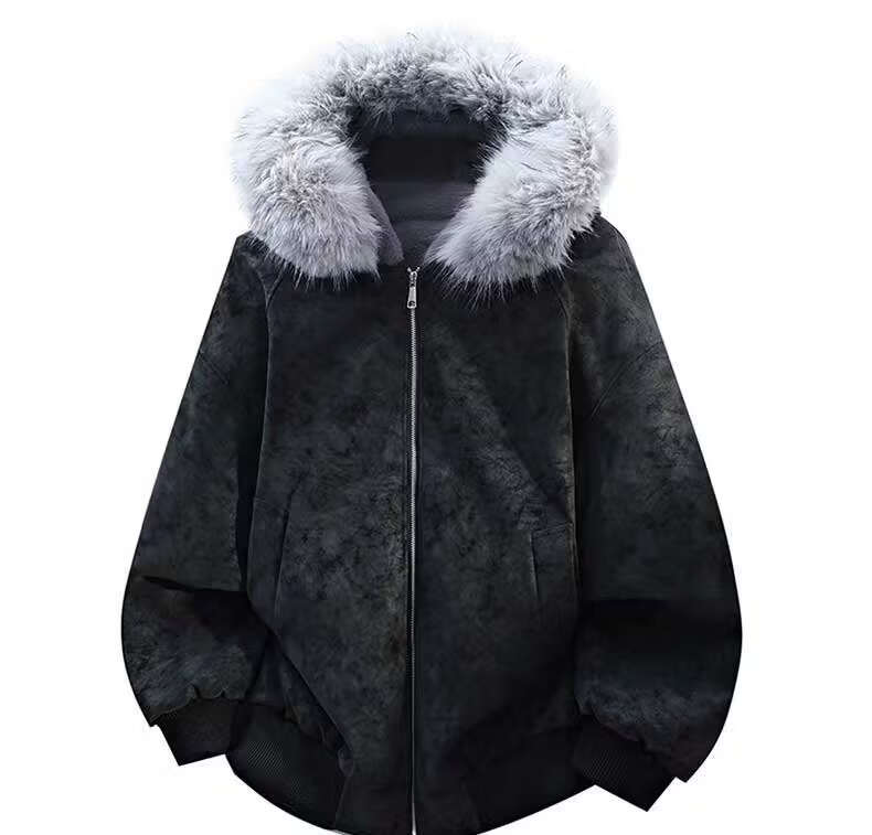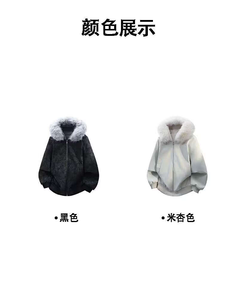 Scarecrow Mountain Carving PU Fur Collar Hooded Cotton Jacket for Men and Women Winter New Plus Velvet Thickened Warm Cotton Jacket Beige Color MY3588 L
