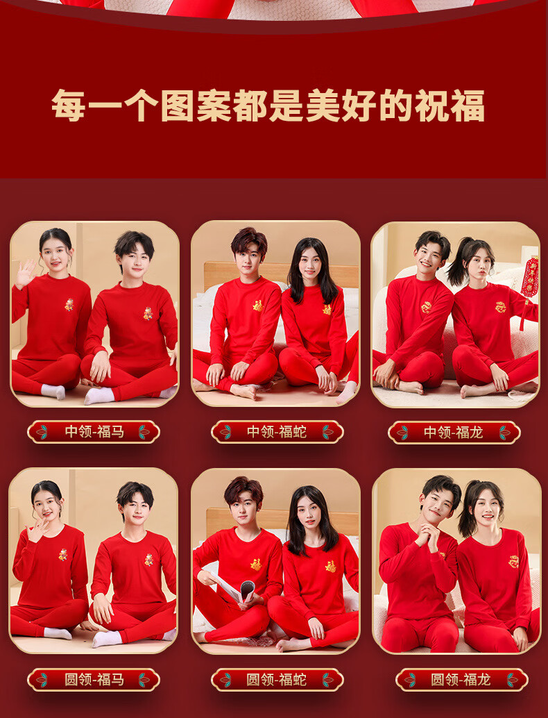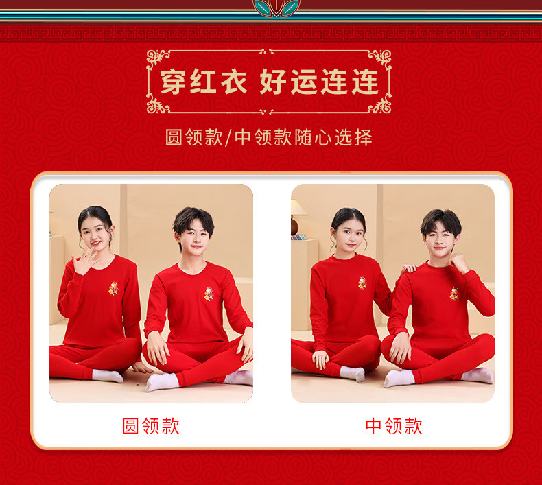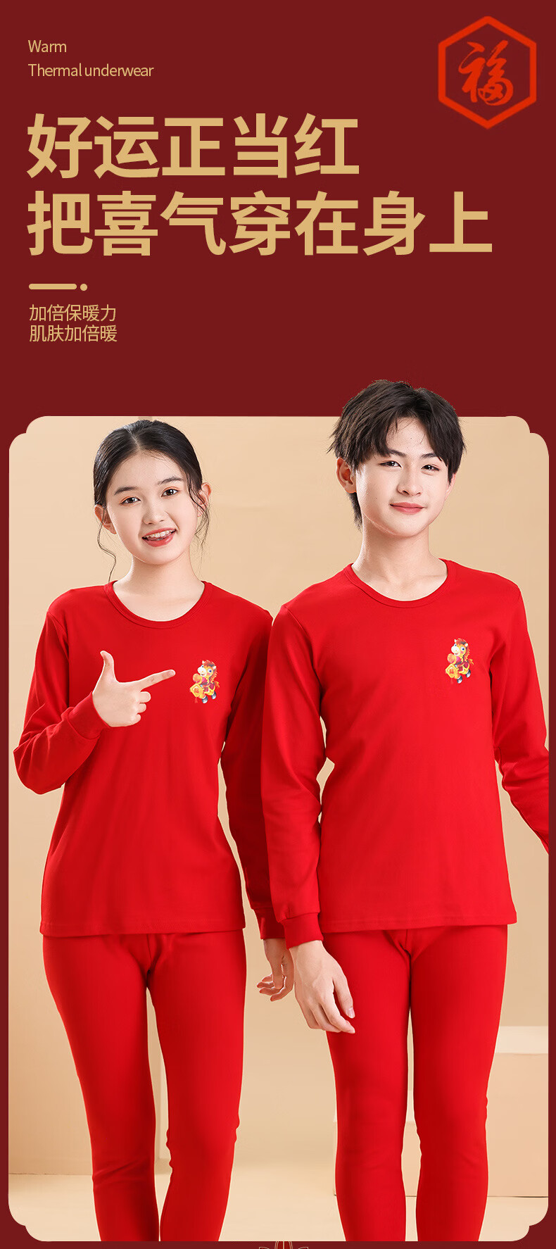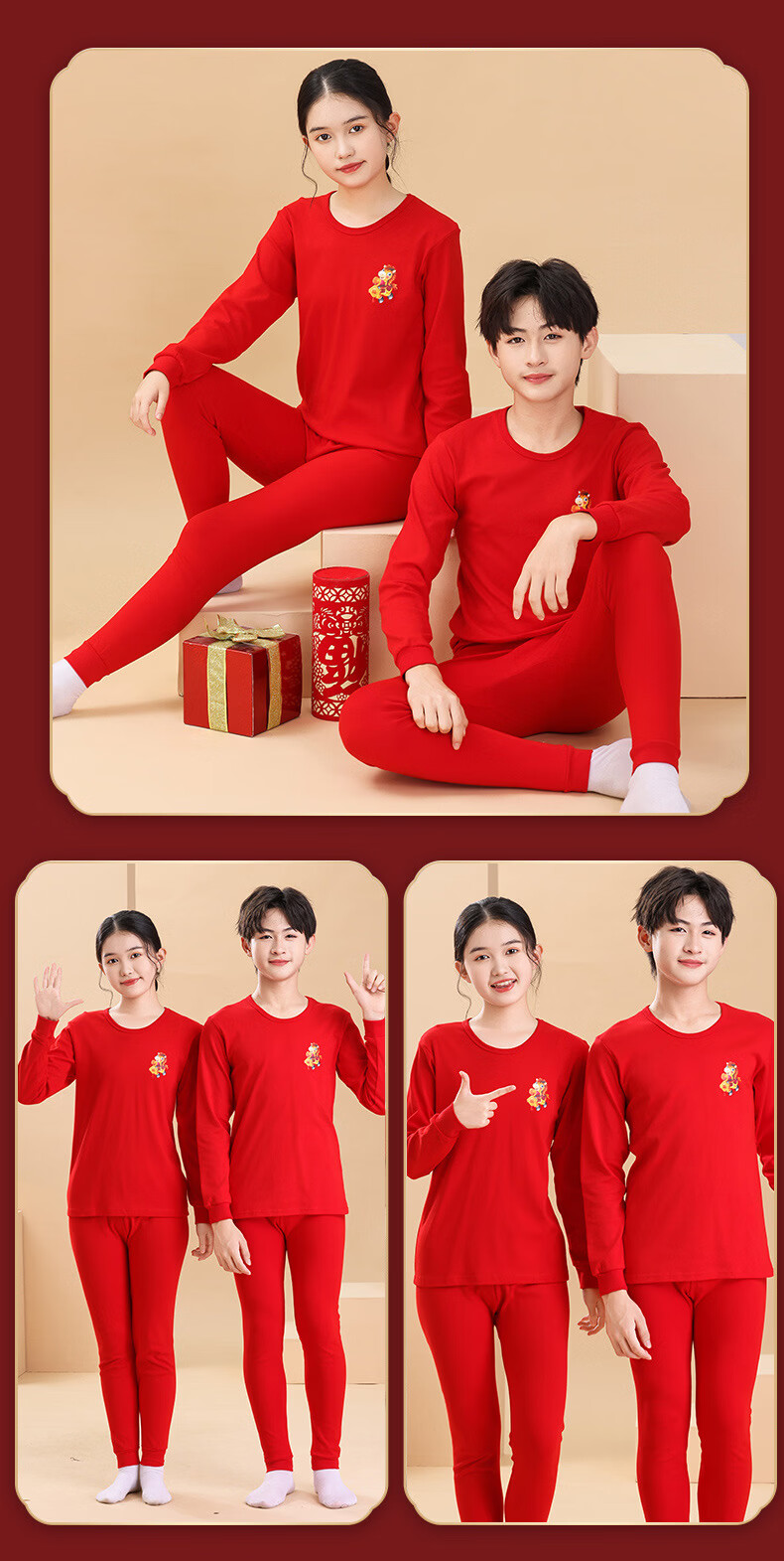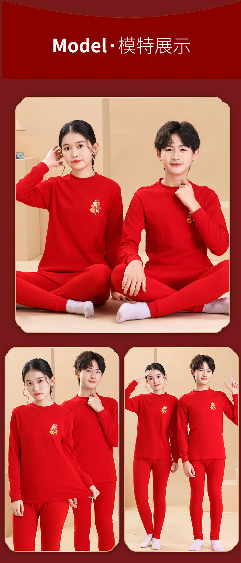 Cat Man (MiiOW) Category a home children's zodiac year red horse year underwear warm suit for middle-aged and older children pure cotton autumn clothes and long pants Xi-middle collar-Fuma 160 cm