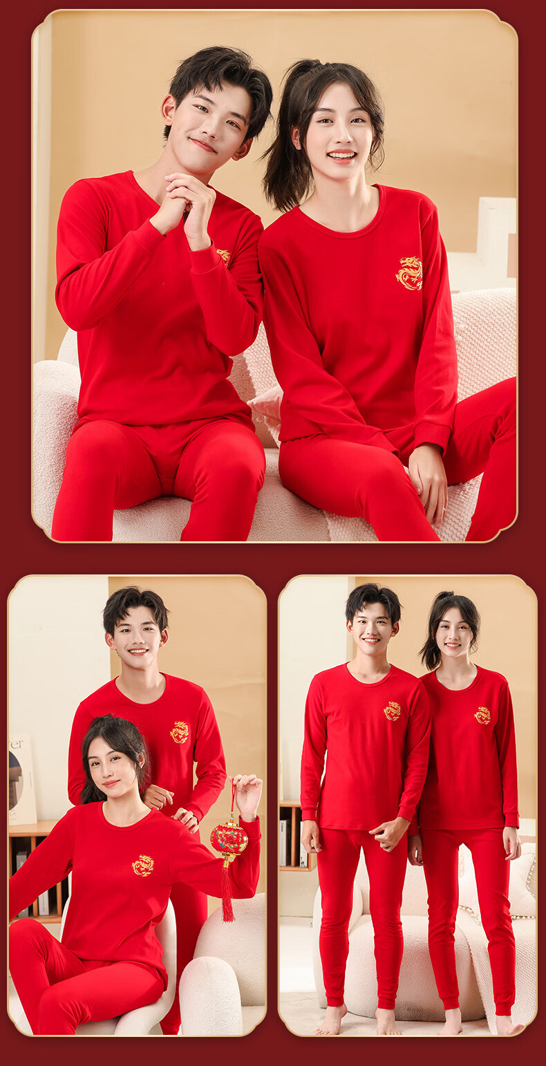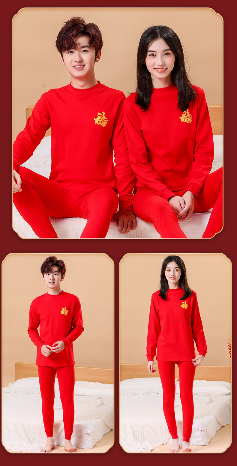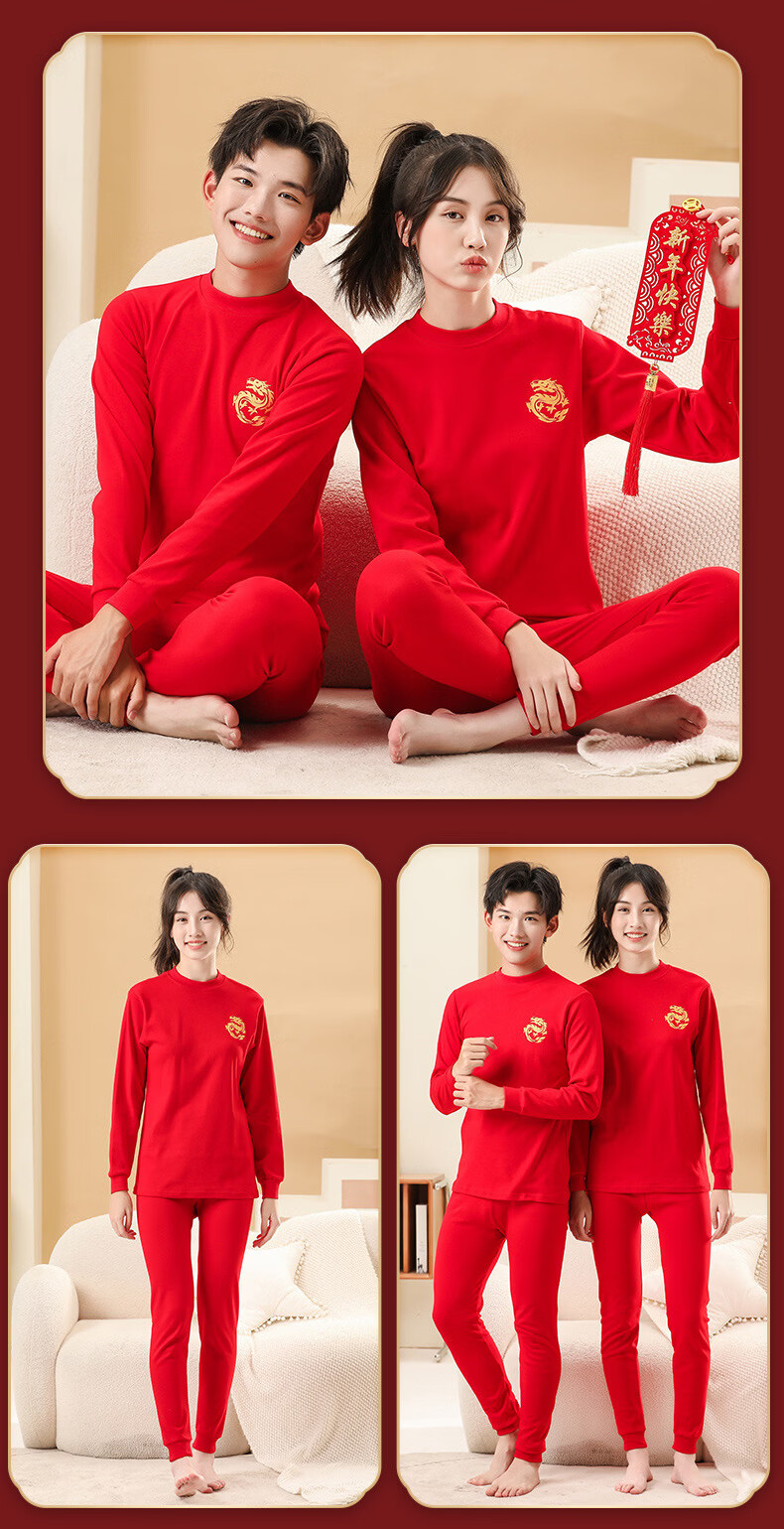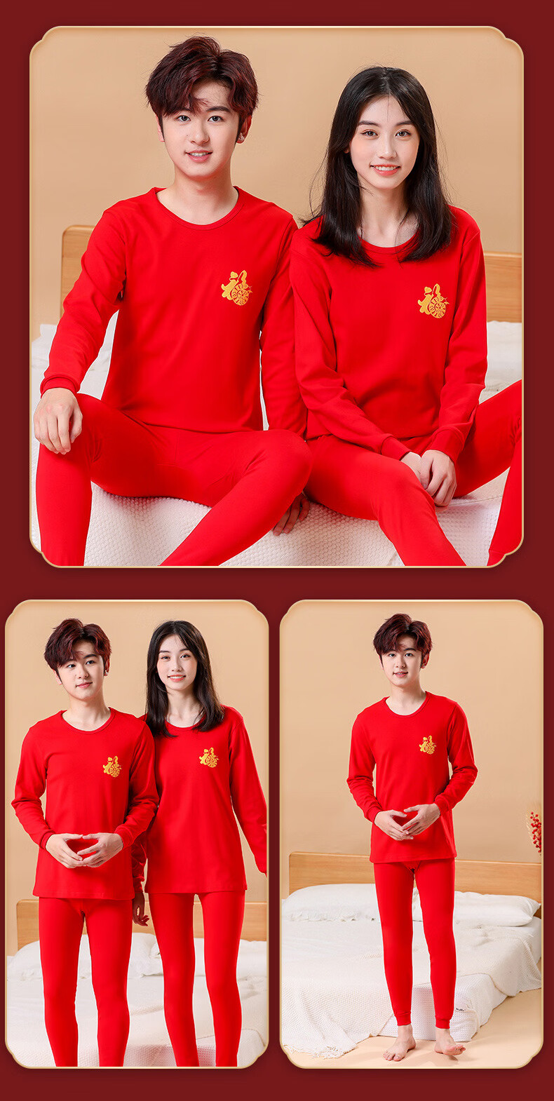 Cat Man (MiiOW) Category a home children's zodiac year red horse year underwear warm suit for middle-aged and older children pure cotton autumn clothes and long pants Xi-middle collar-Fuma 160 cm