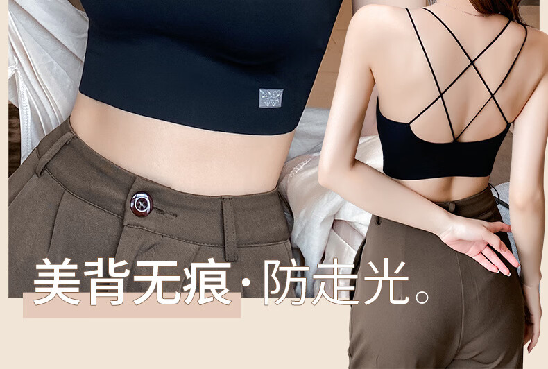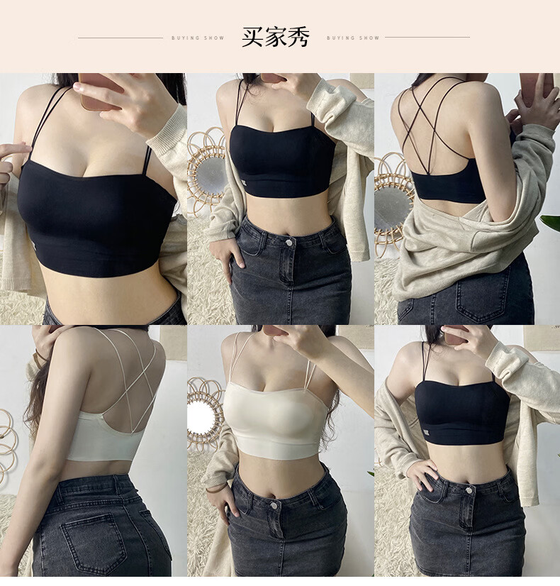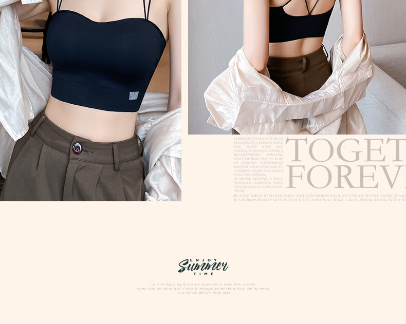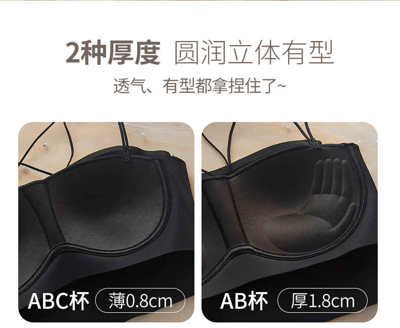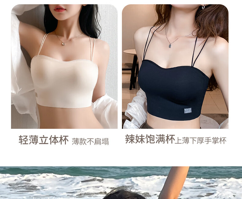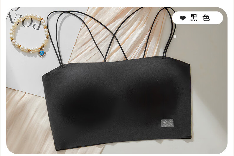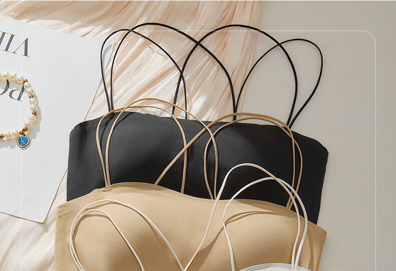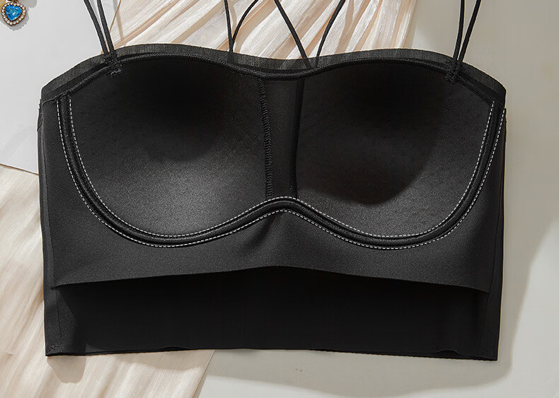 Gathering back beautiful underwear 2025 new summer thin all-in-one vest women's small bust tube top suspender bra black + milky white. One size fits all 32/70AB