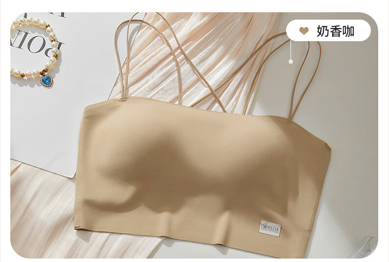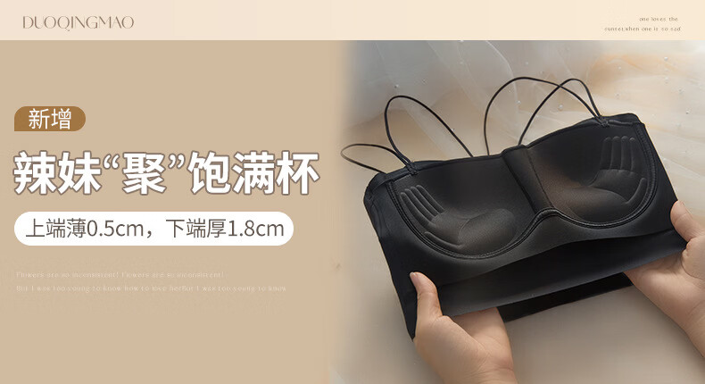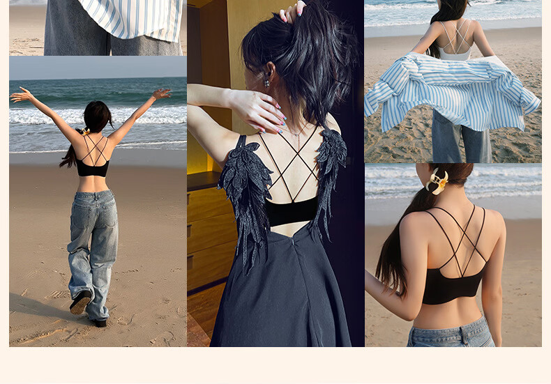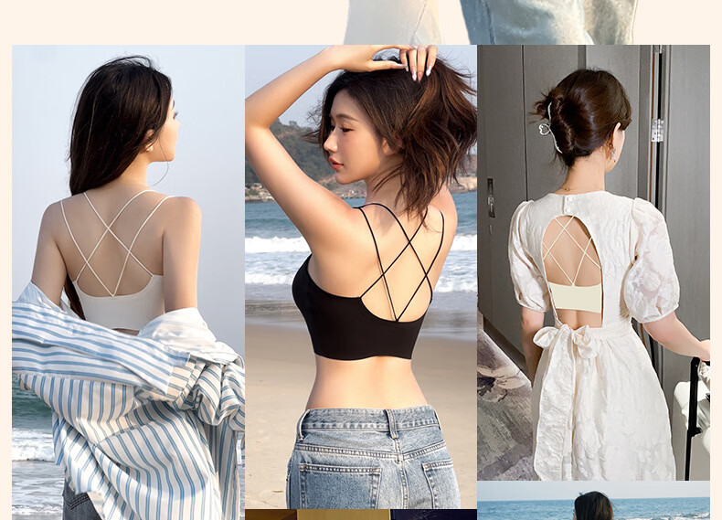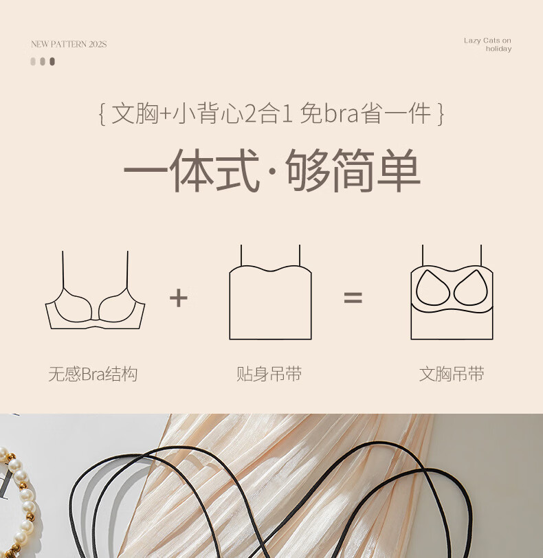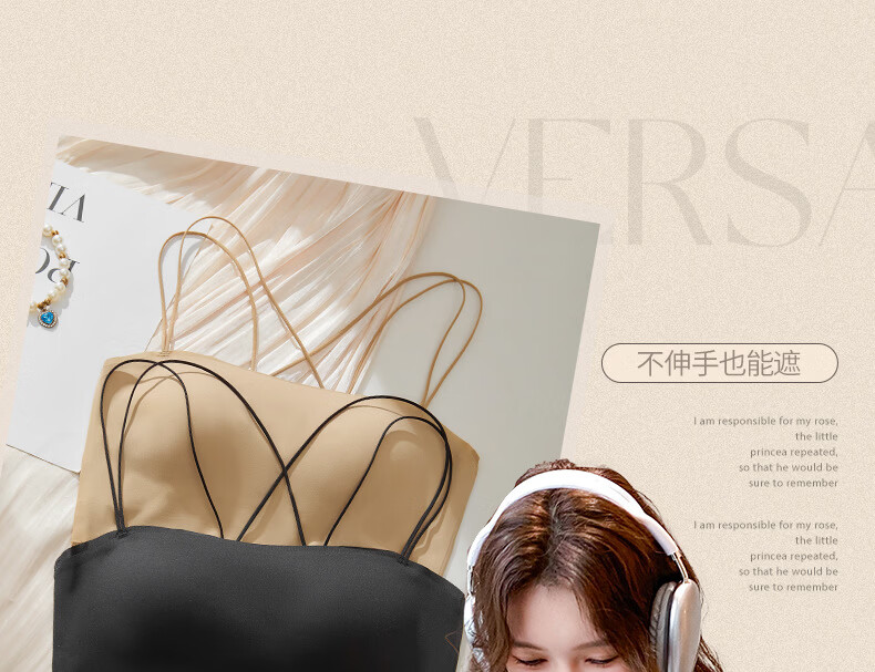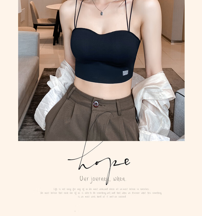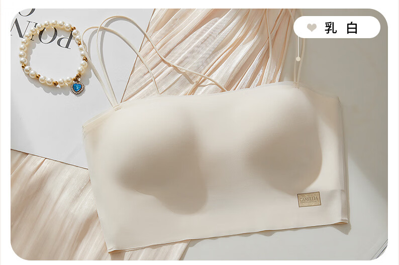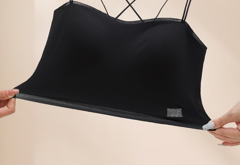 Gathering back beautiful underwear 2025 new summer thin all-in-one vest women's small bust tube top suspender bra black + milky white. One size fits all 32/70AB