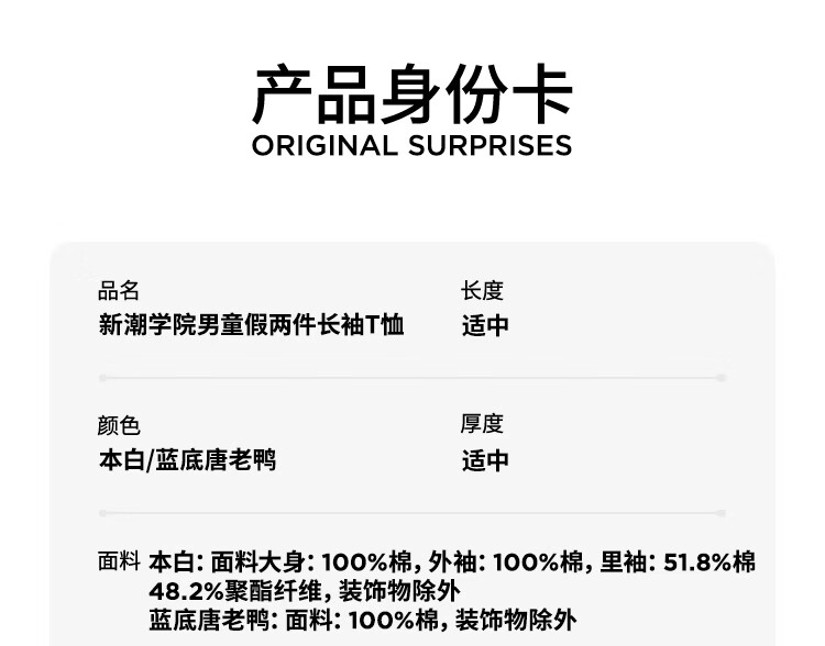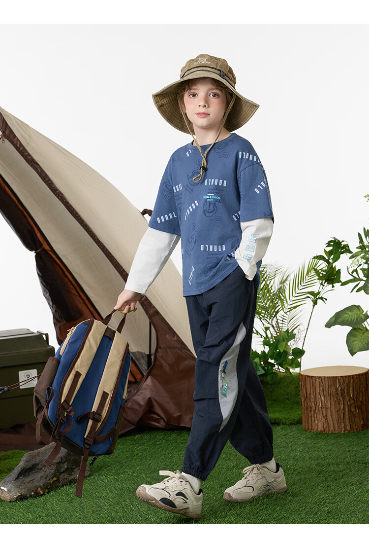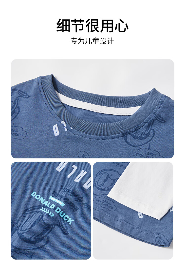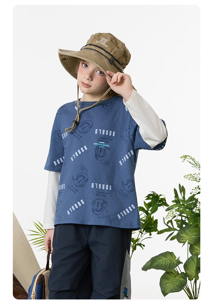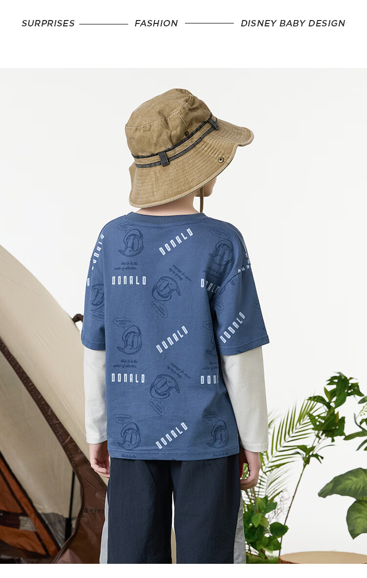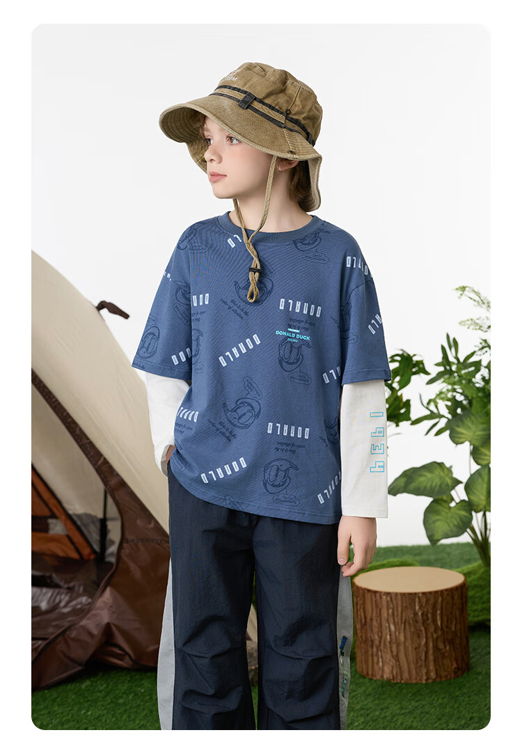 Disney (Disney) children's clothing boys fake two-piece striped long-sleeved T-shirt 2026 spring and autumn new children's round neck fashionable bottoming top trendy white trendy fake two-piece T-shirt 160
