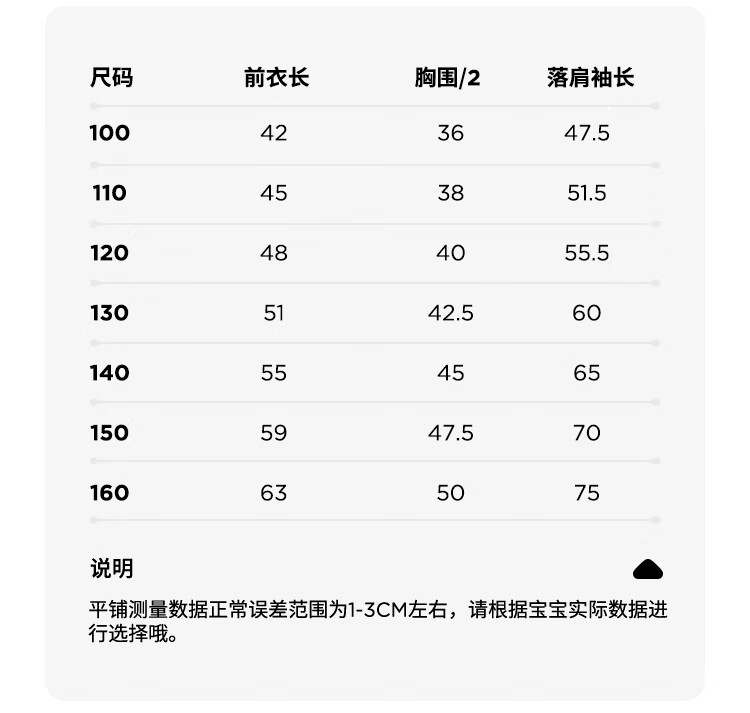 Size (cm) 42 44 46 48 50