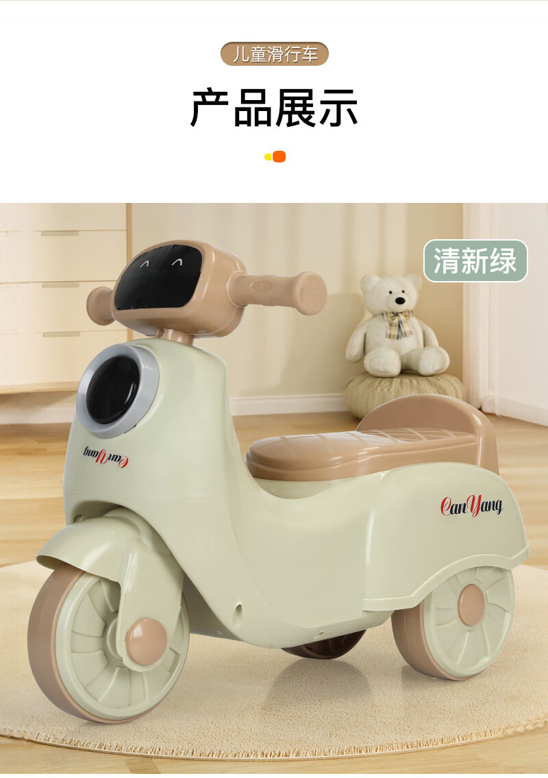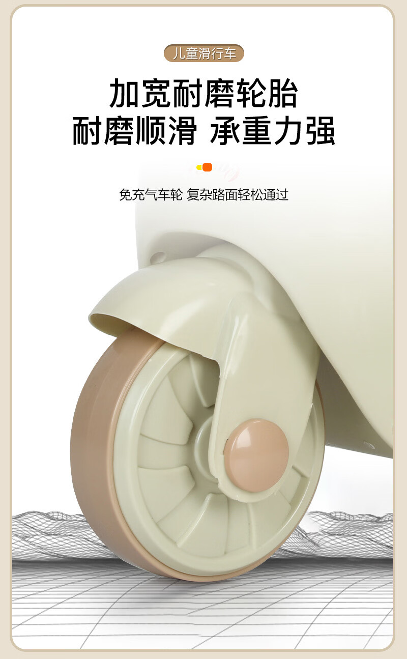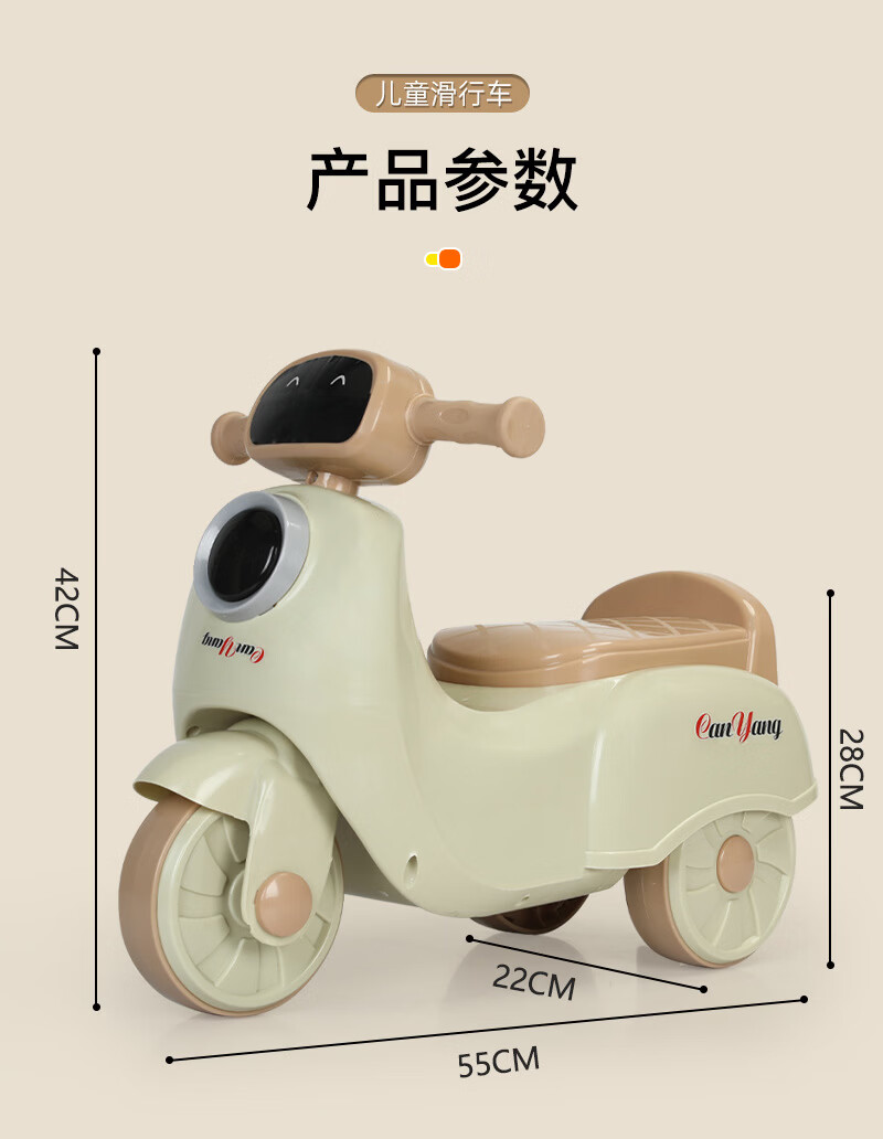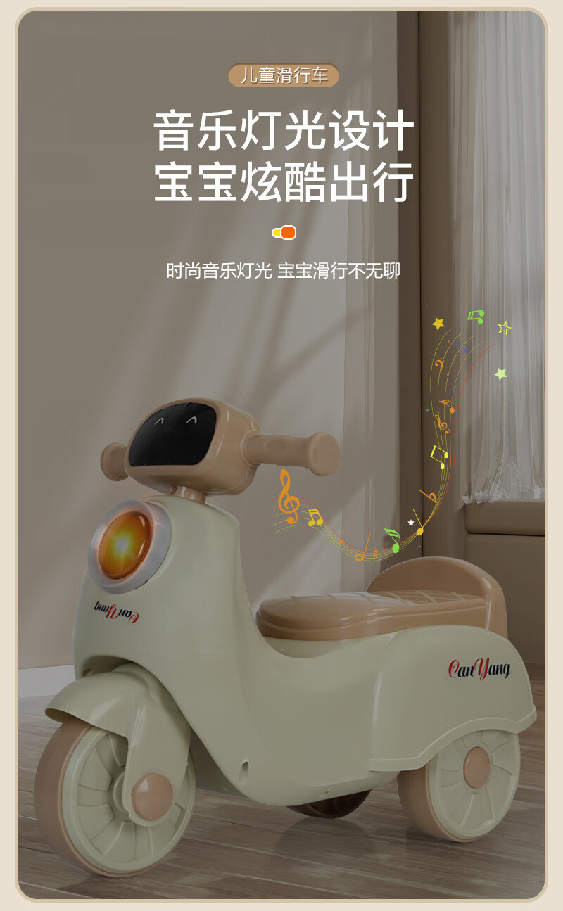 Children's scooter 1-3-6 years old boys and girls toddler tricycle skateboard 2-year-old baby balance car high view off-white with music light + black lampshade