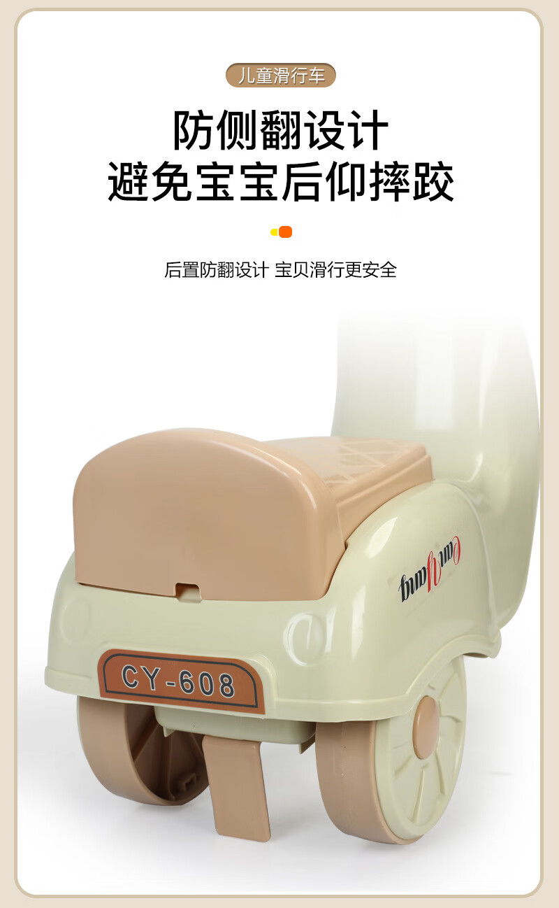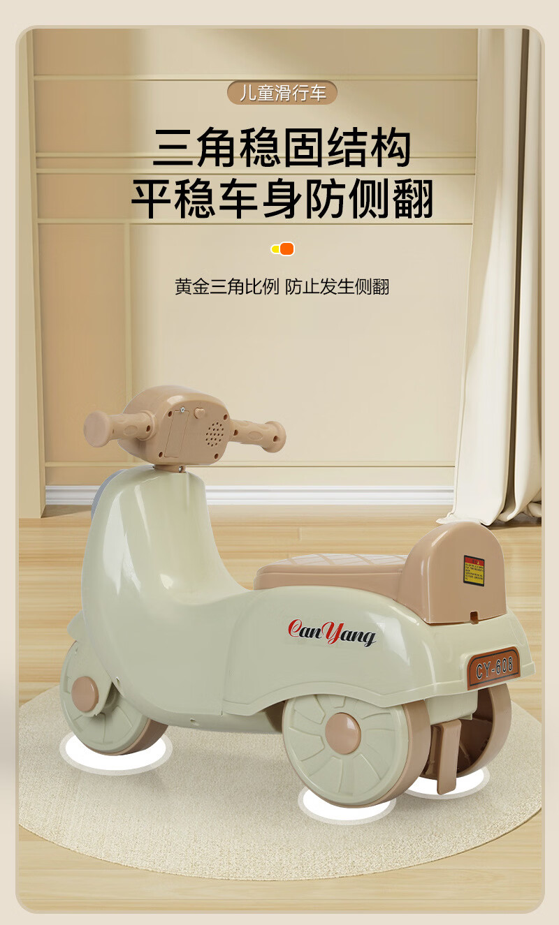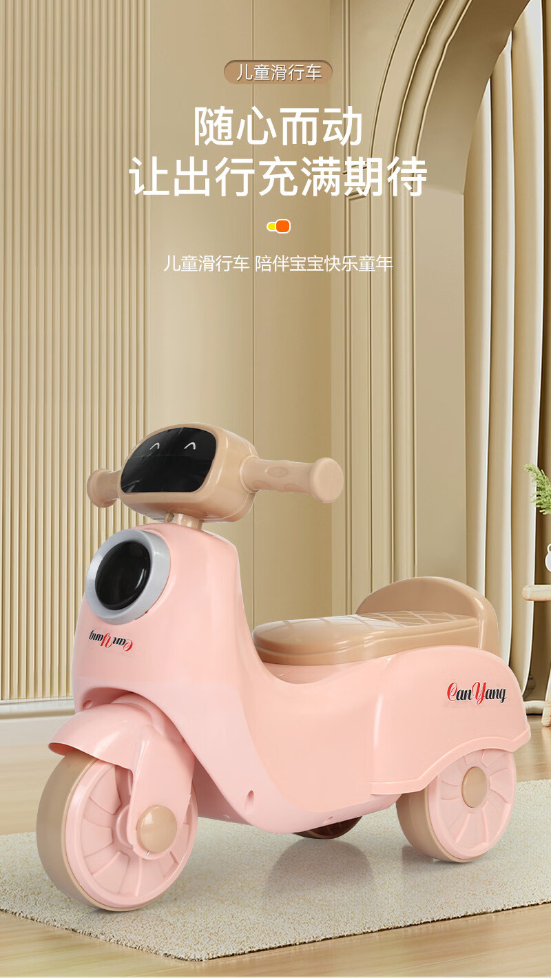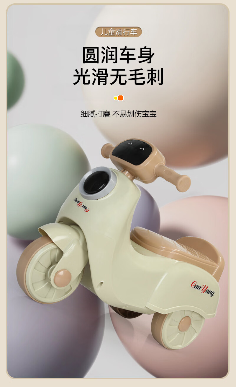Children's scooter 1-3-6 years old boys and girls toddler tricycle skateboard 2-year-old baby balance car high view off-white with music light + black lampshade