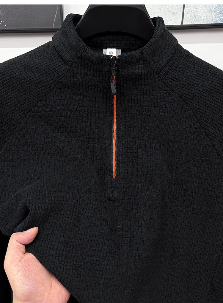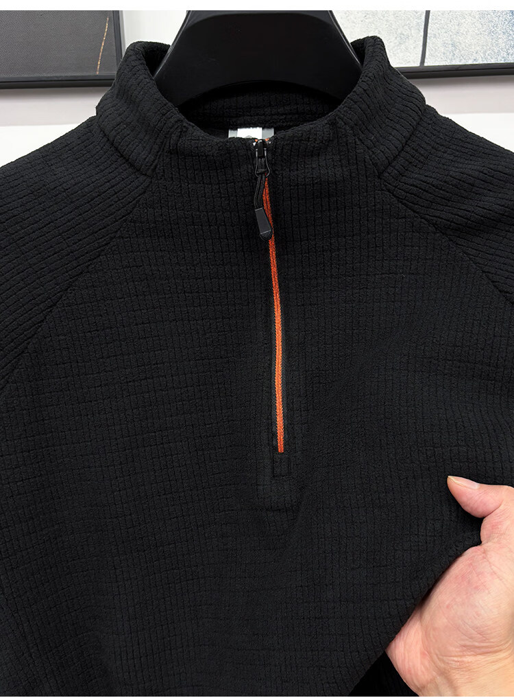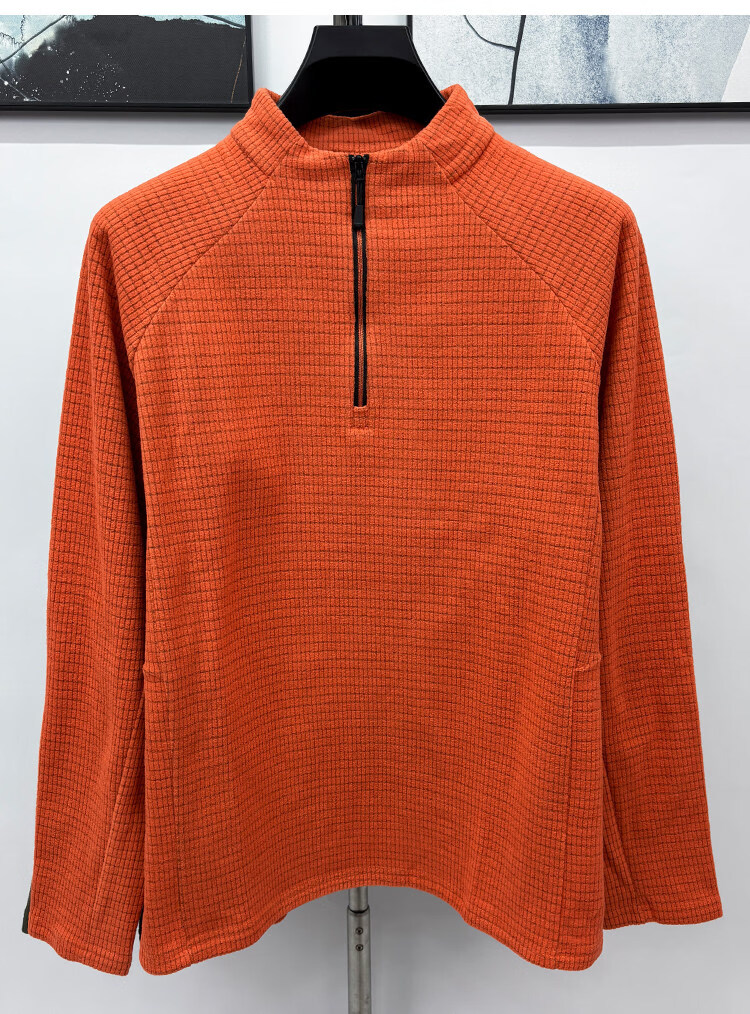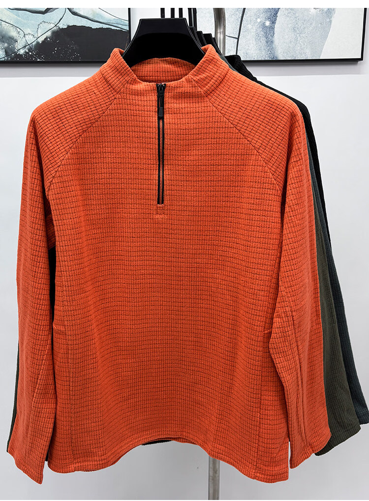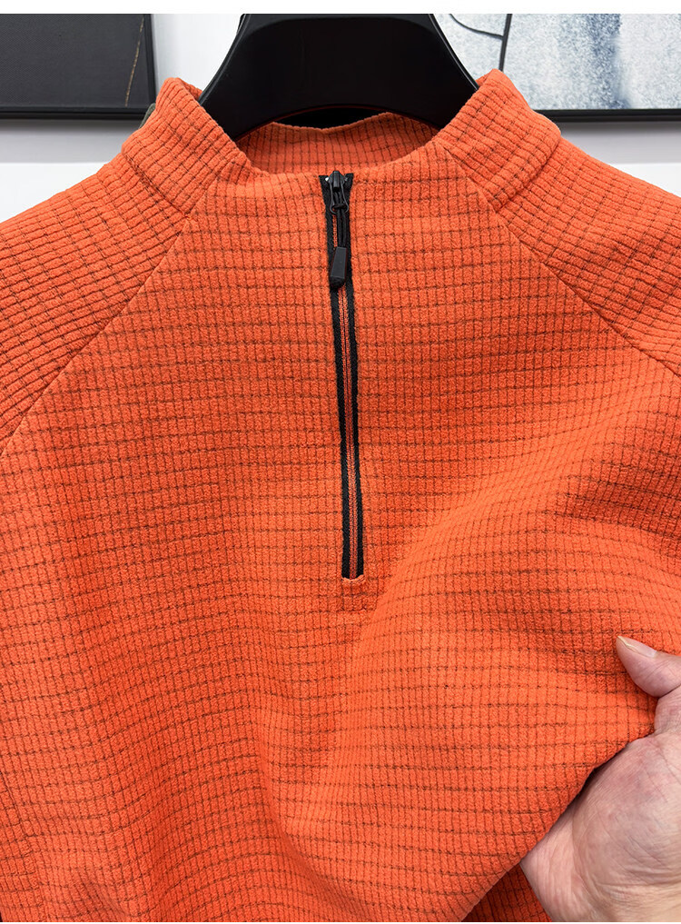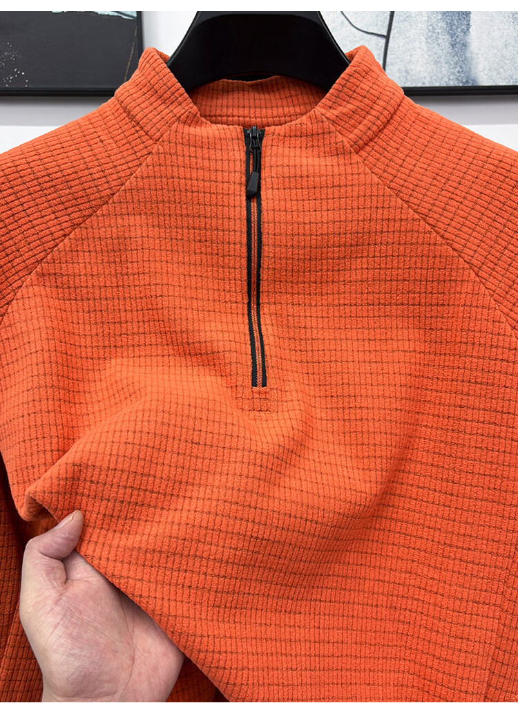 Hengyuanxiang autumn and winter thickened warm and light outdoor sports fleece sweatshirt men's half-zip stand collar long-sleeved T-shirt orange XL
