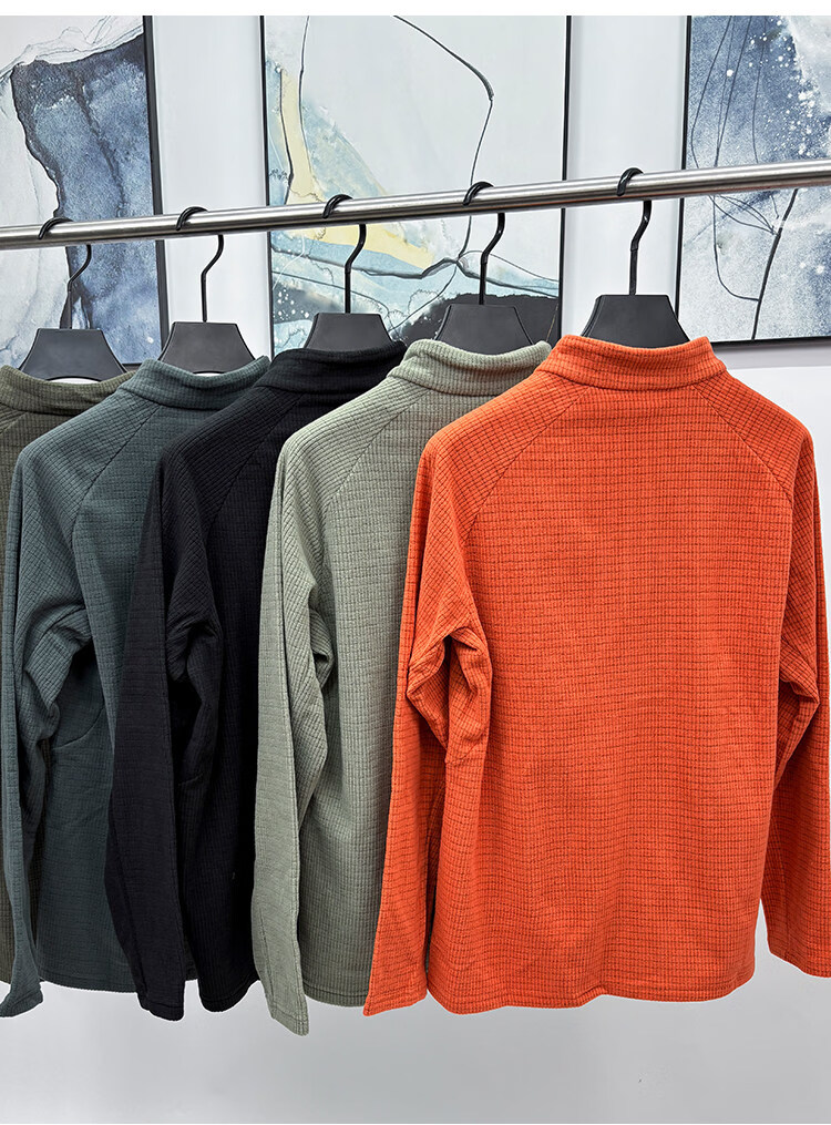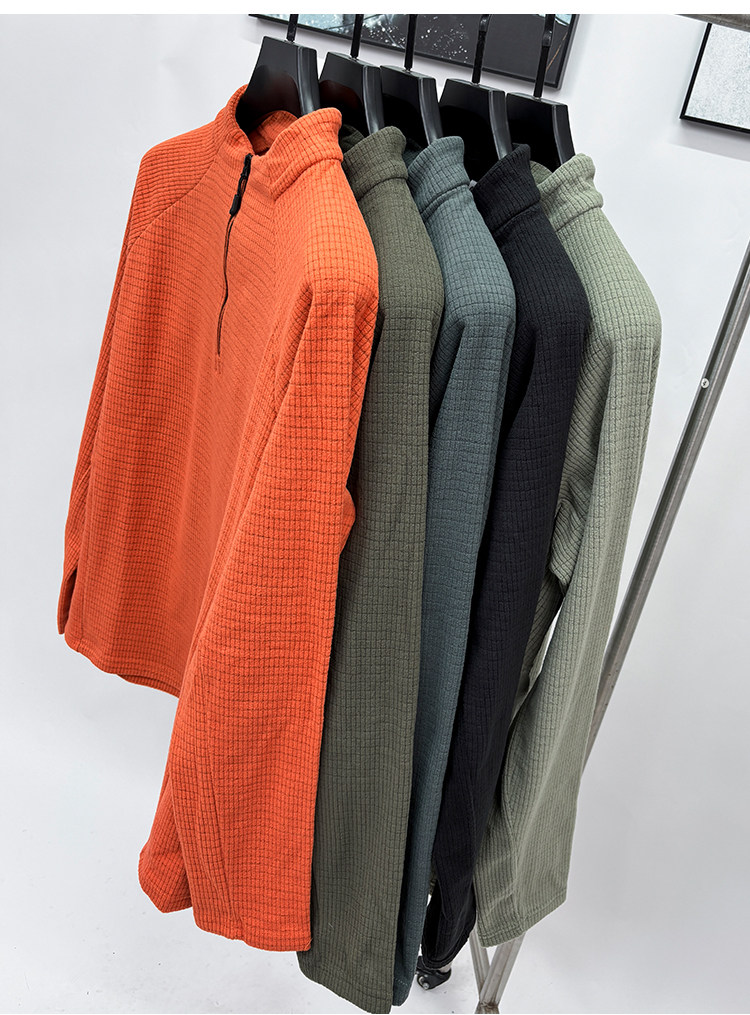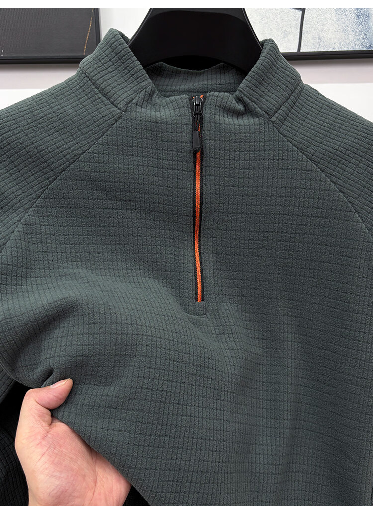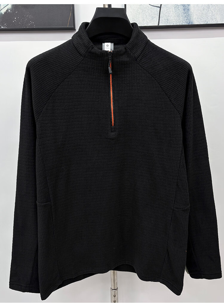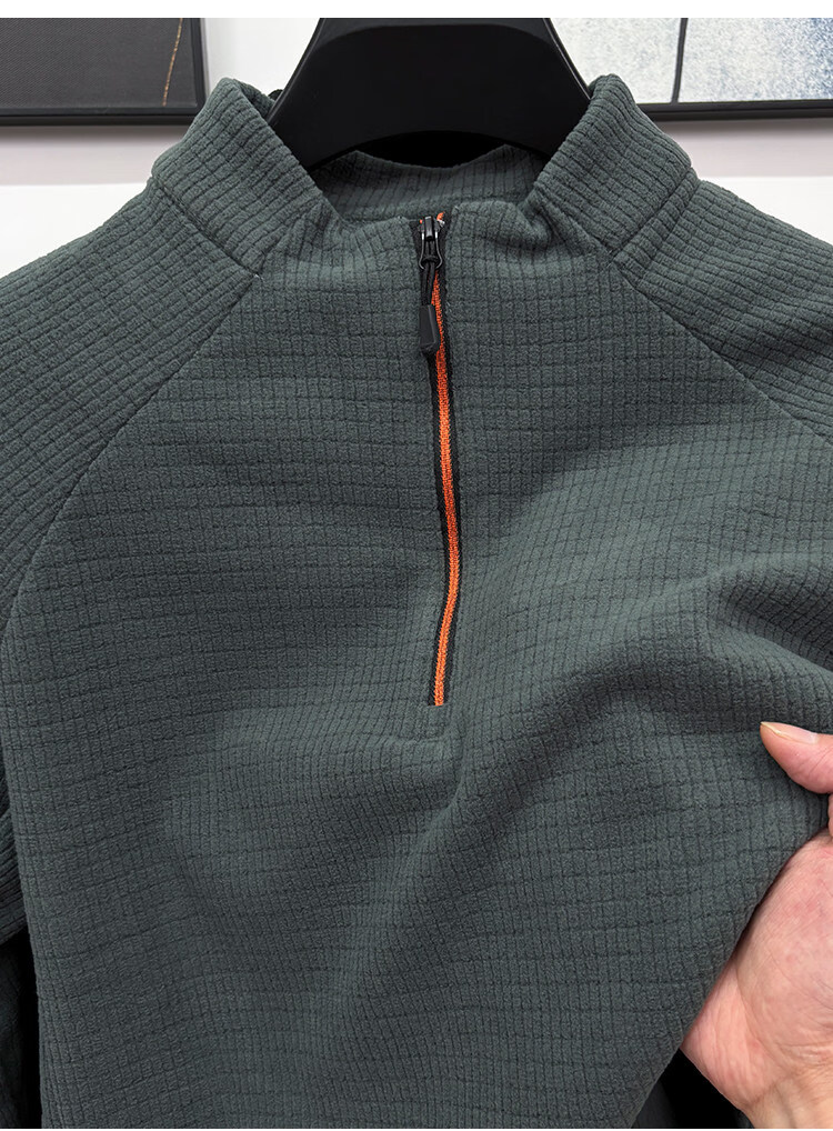 Hengyuanxiang autumn and winter thickened warm and light outdoor sports fleece sweatshirt men's half-zip stand collar long-sleeved T-shirt orange XL