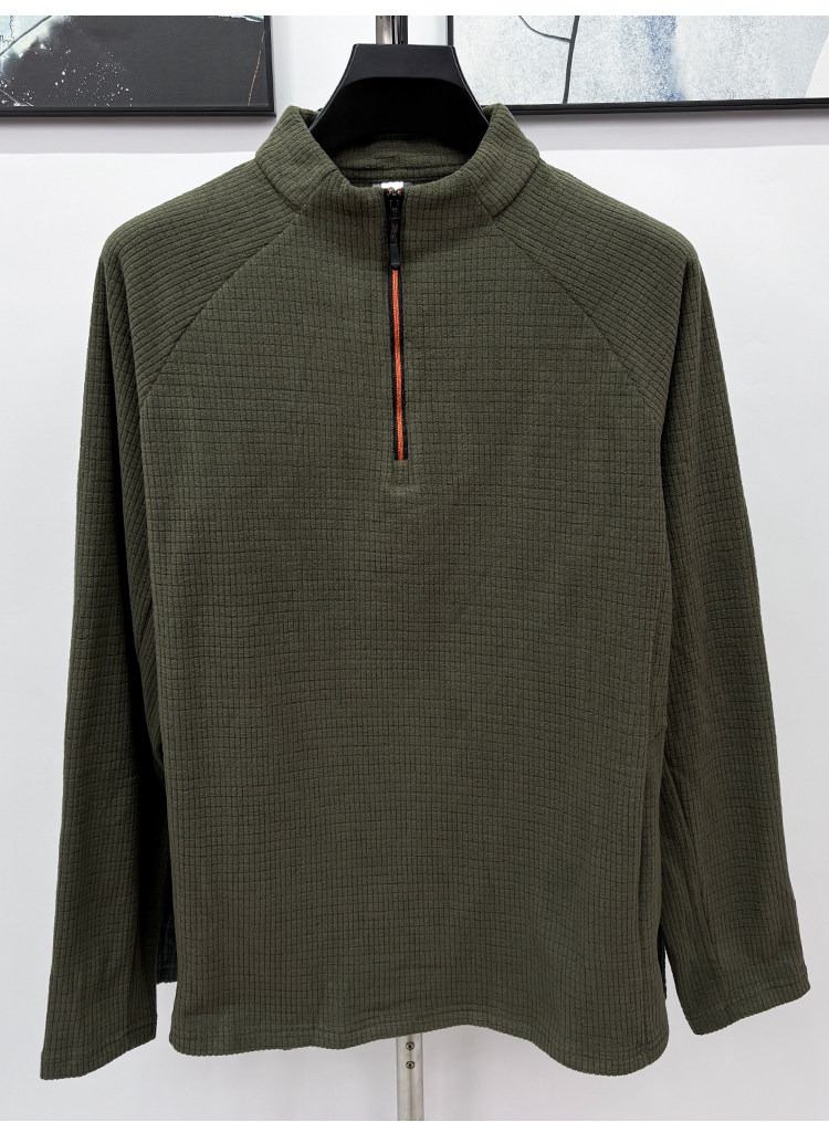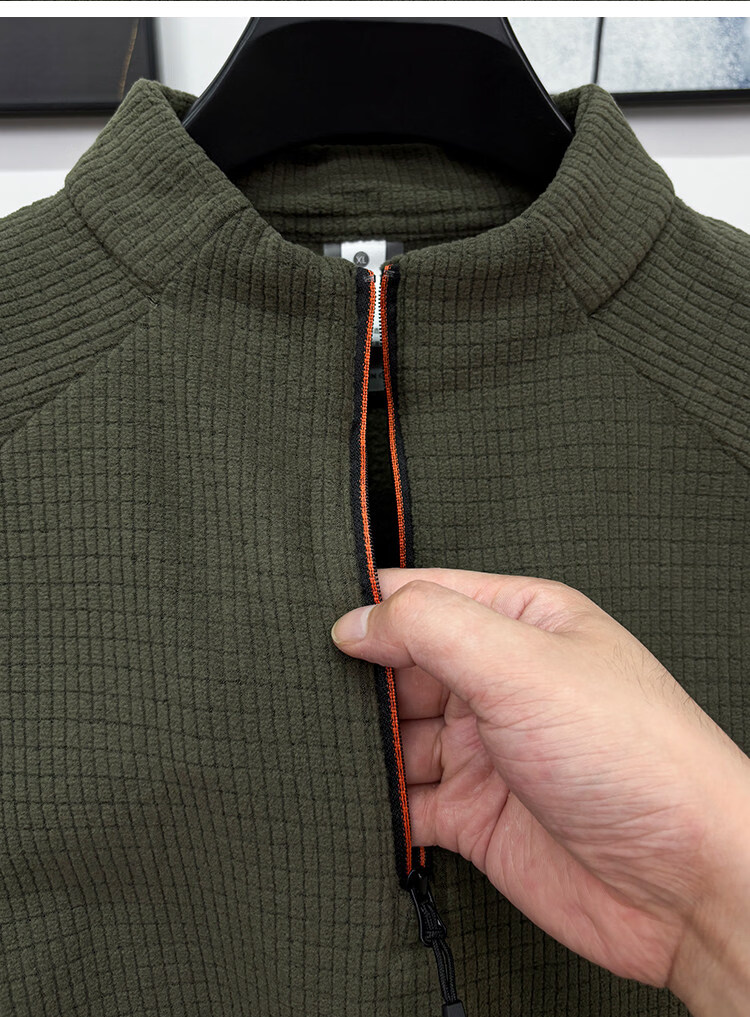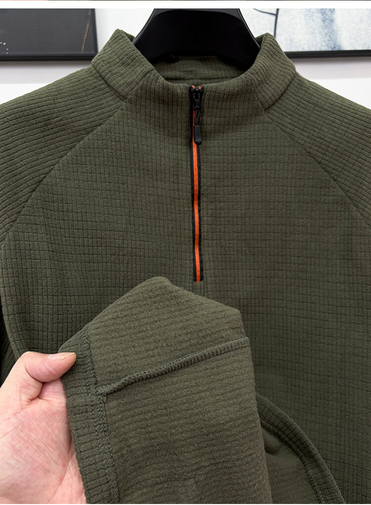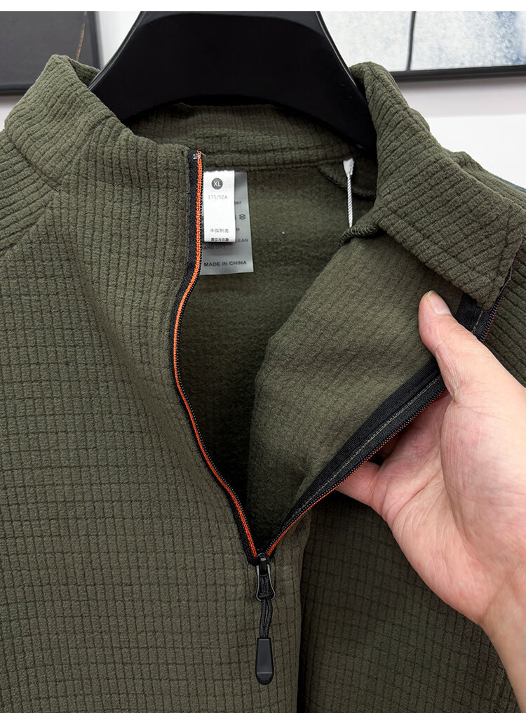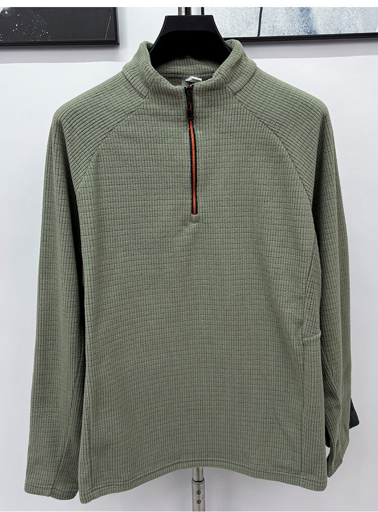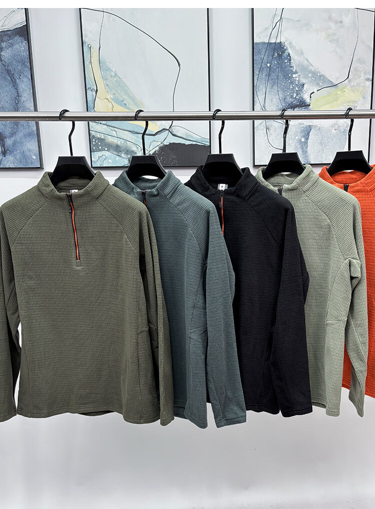 Hengyuanxiang autumn and winter thickened warm and light outdoor sports fleece sweatshirt men's half-zip stand collar long-sleeved T-shirt orange XL