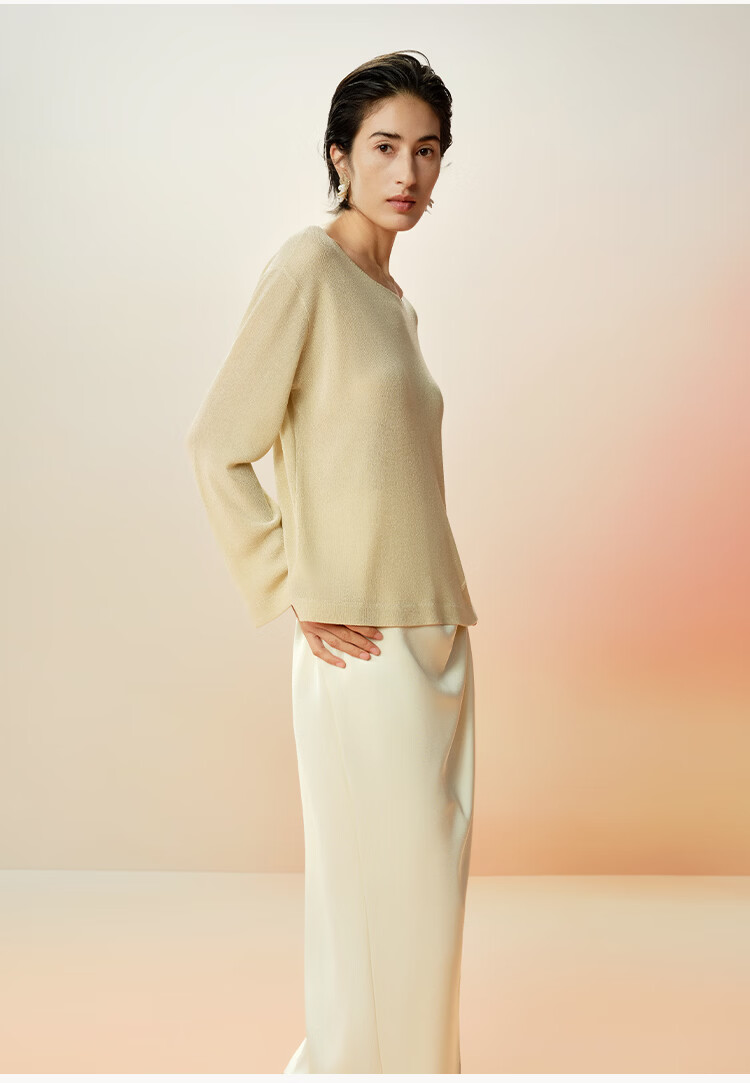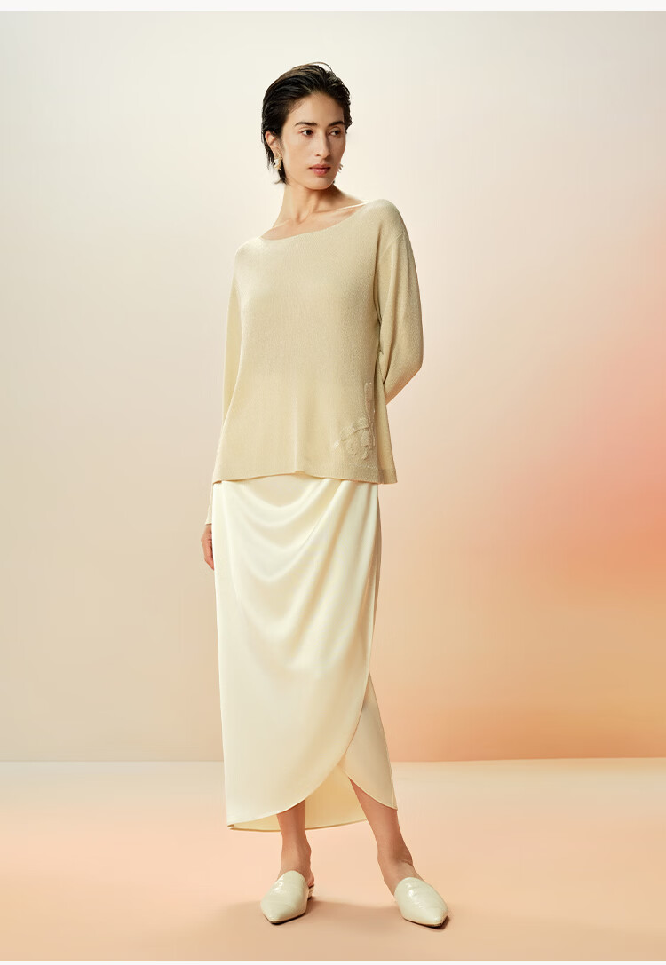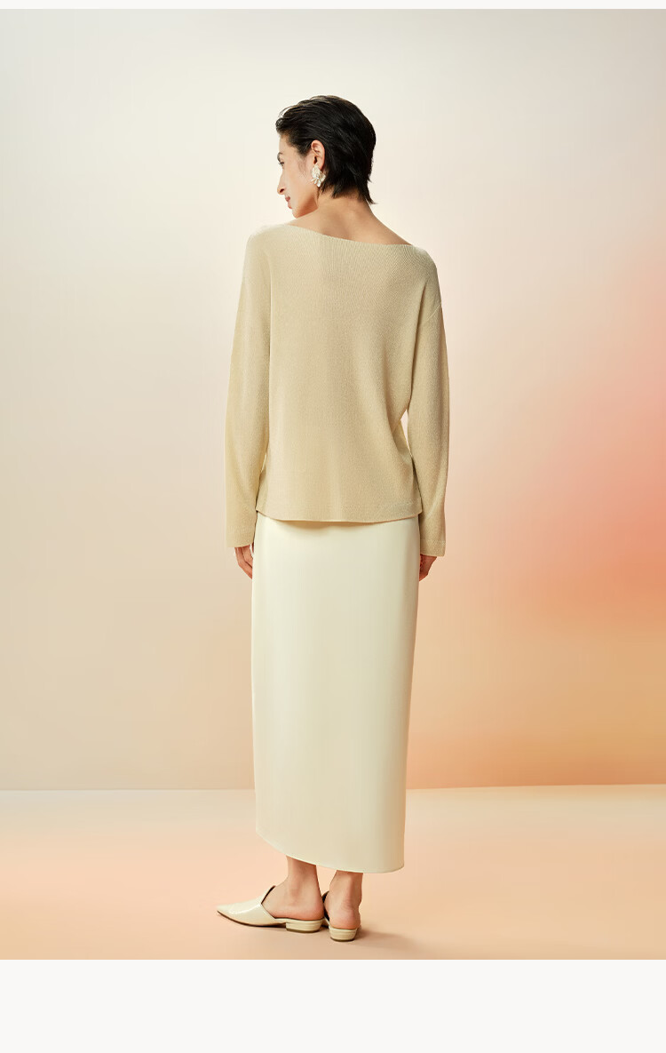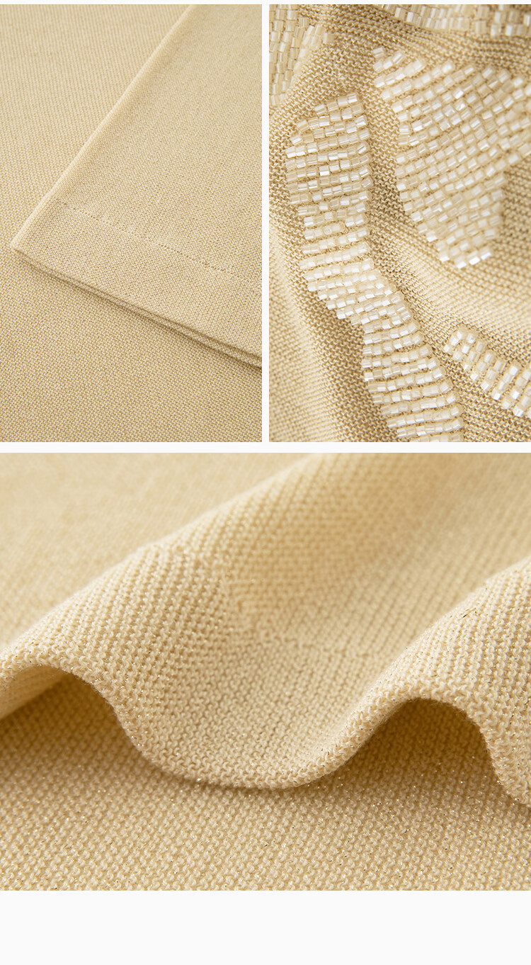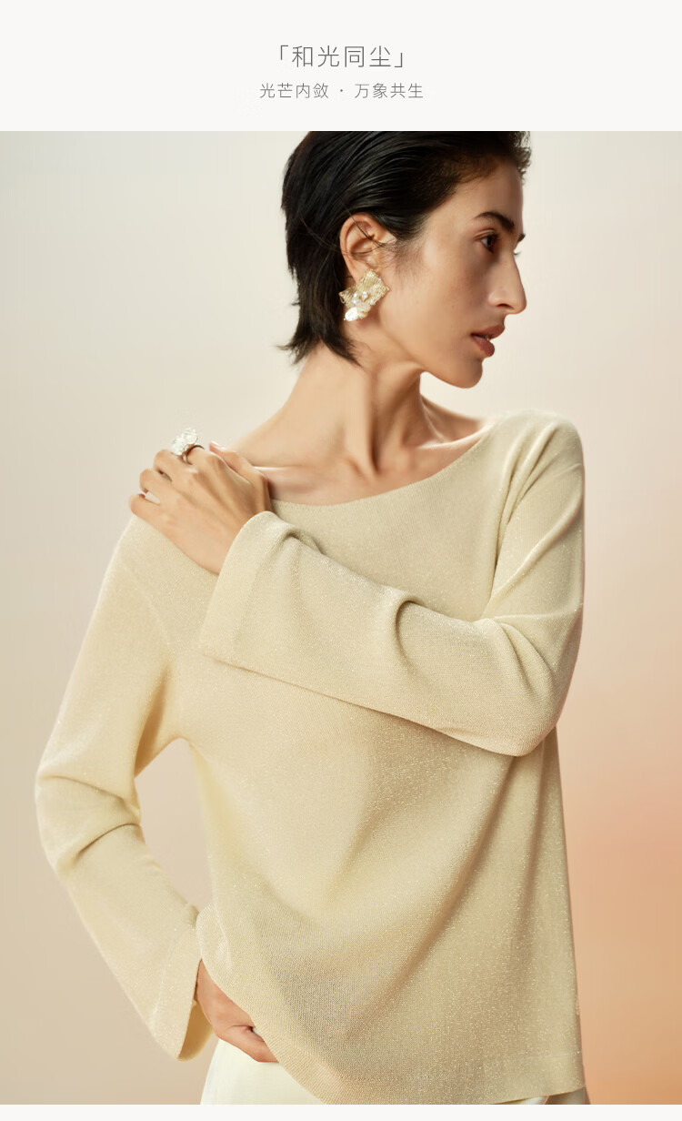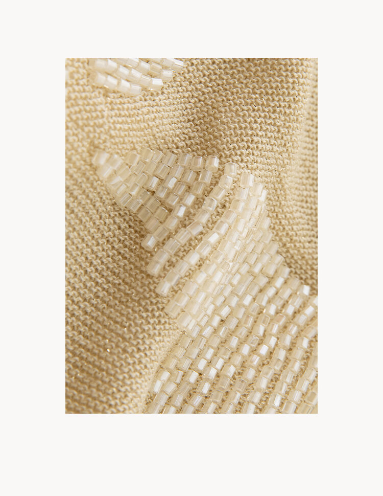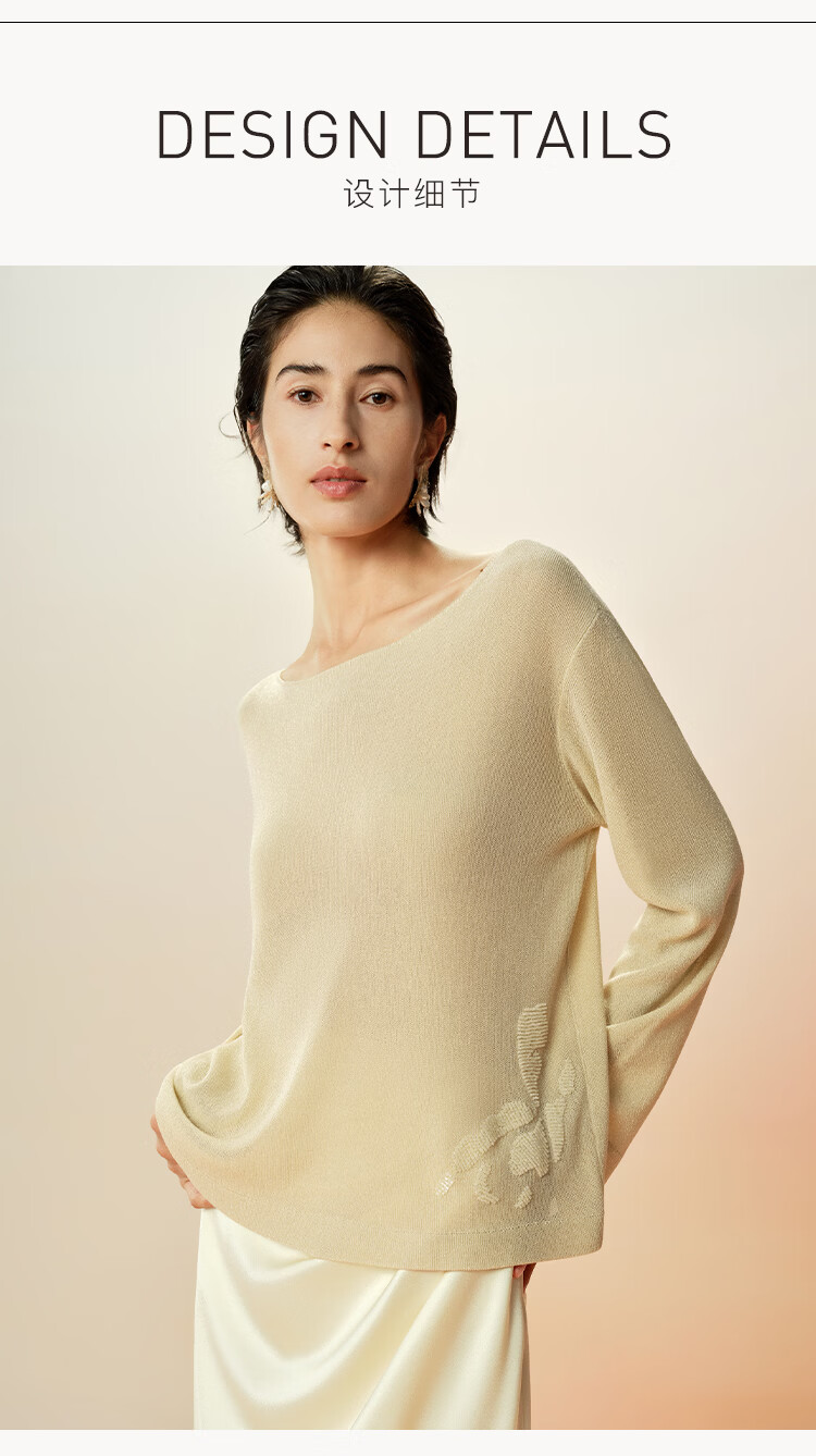 Maohe temperament bead tube embroidery sweater 2026 spring new one-line collar blouse 26MH61108 light moss yellow S
