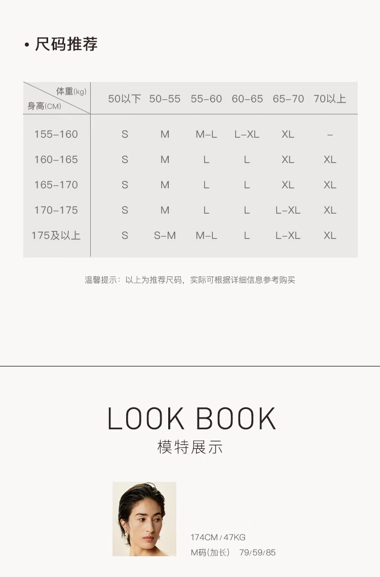 China (cm) 160-165/84-86 165-170 / 88-90 167-172 / 92-96 168-173 / 98-102 170-176 / 106-110
