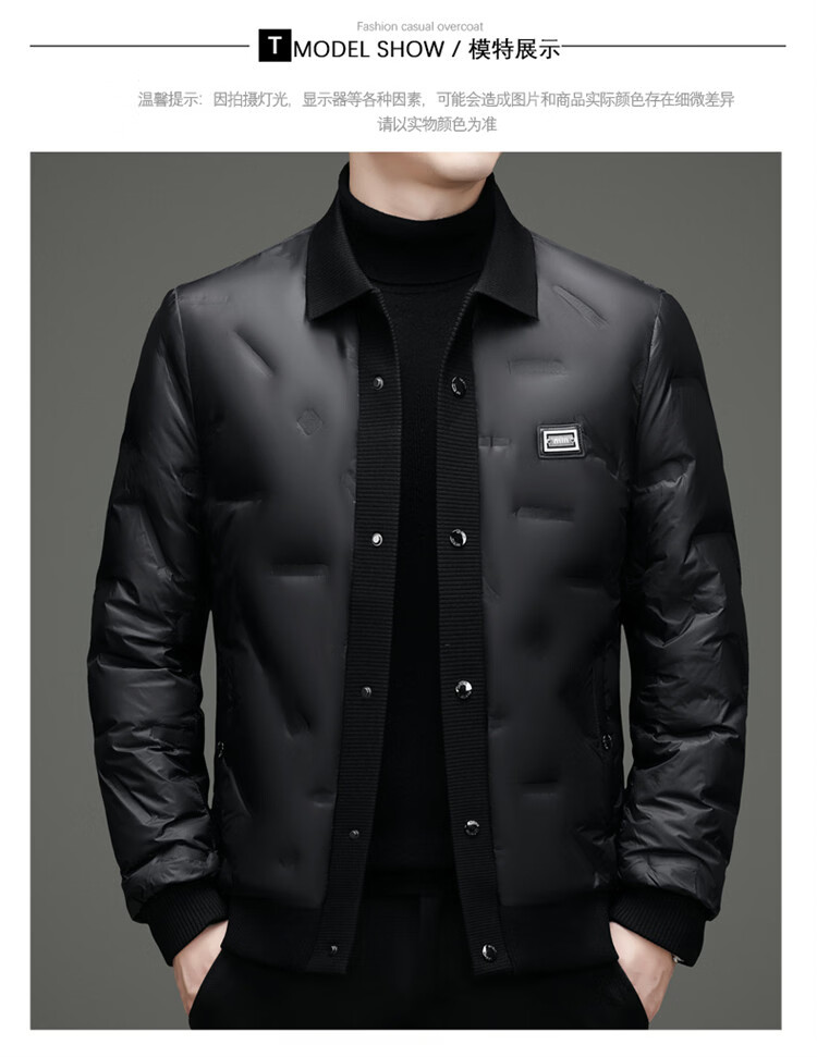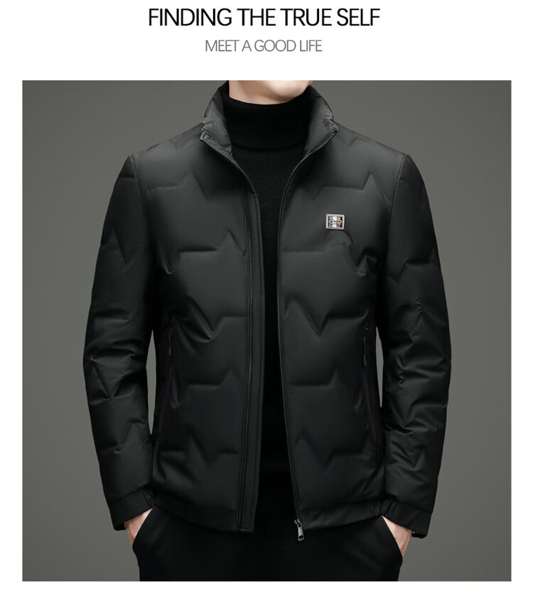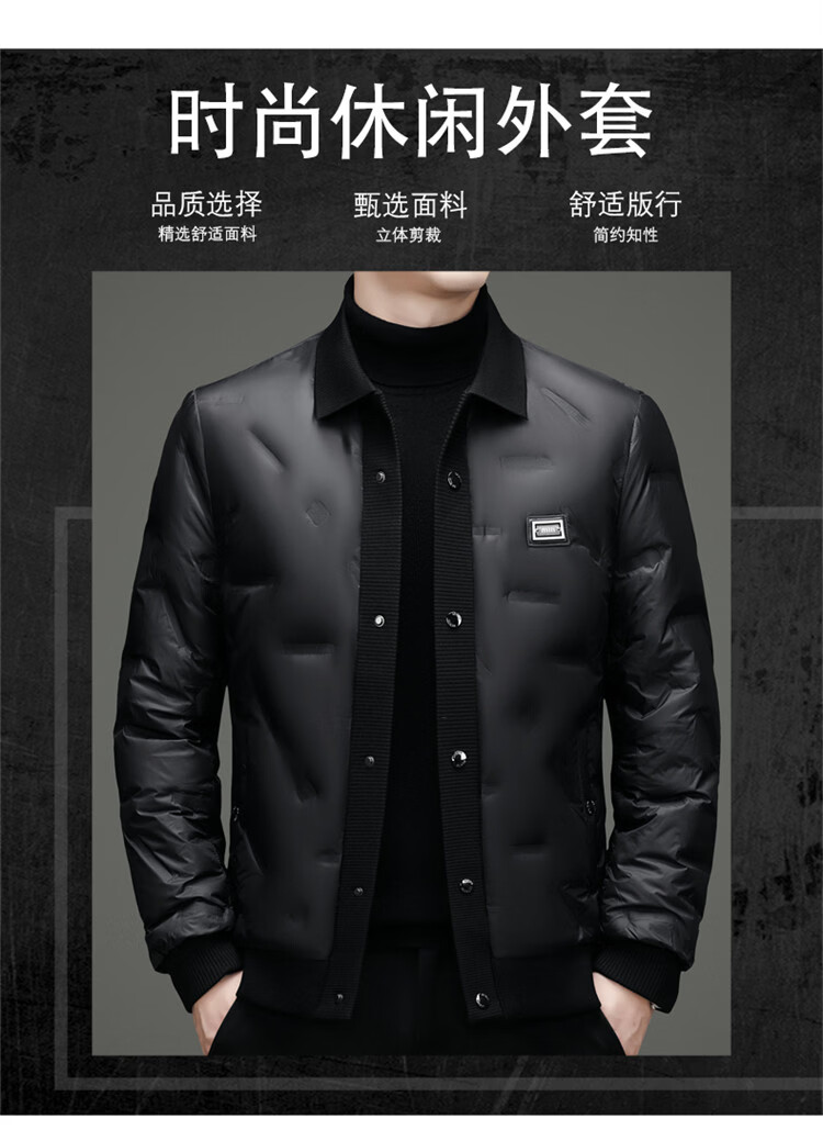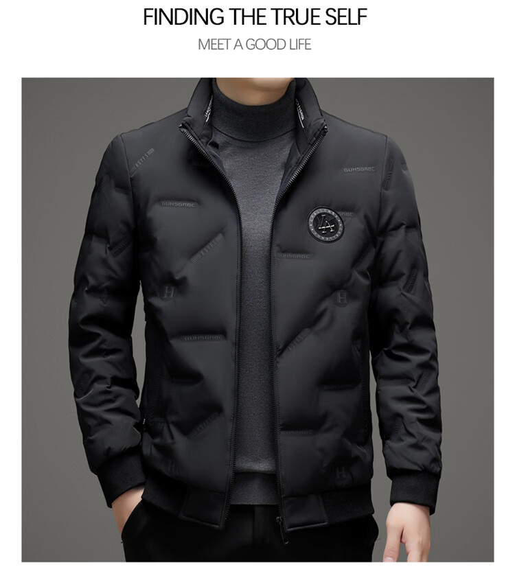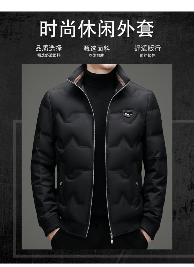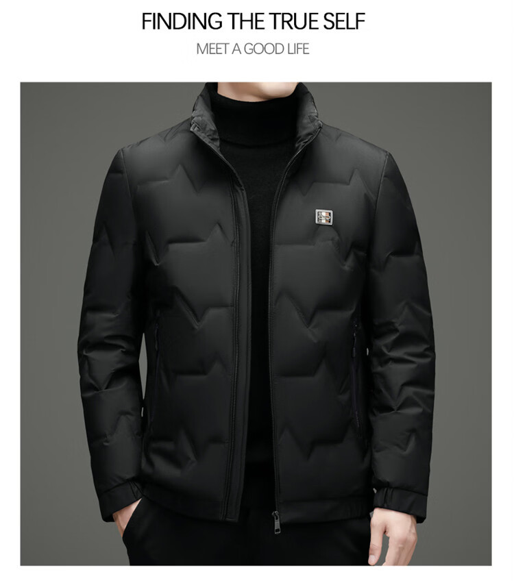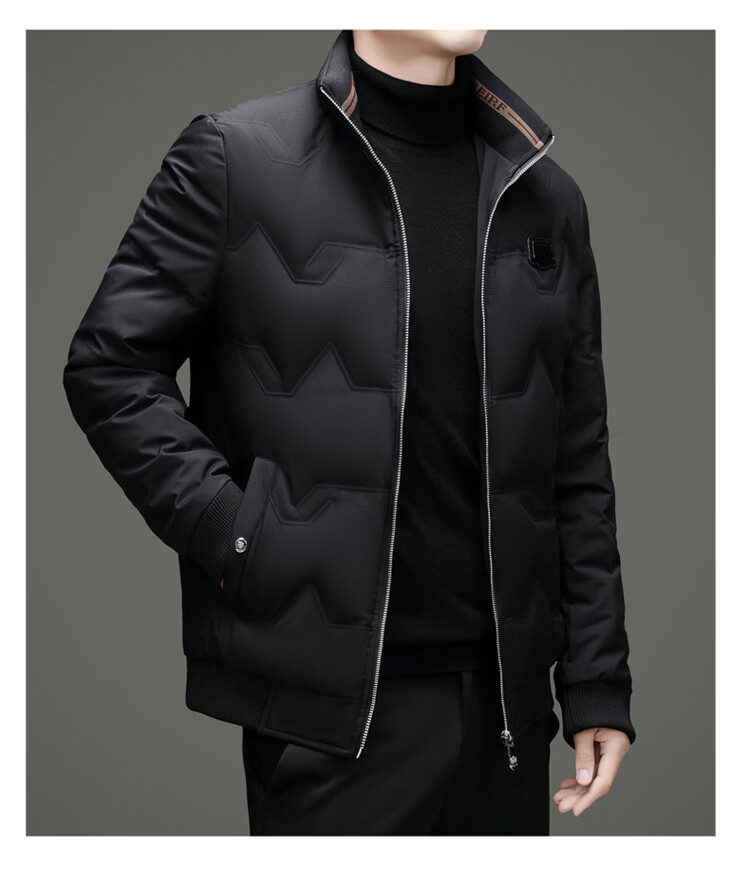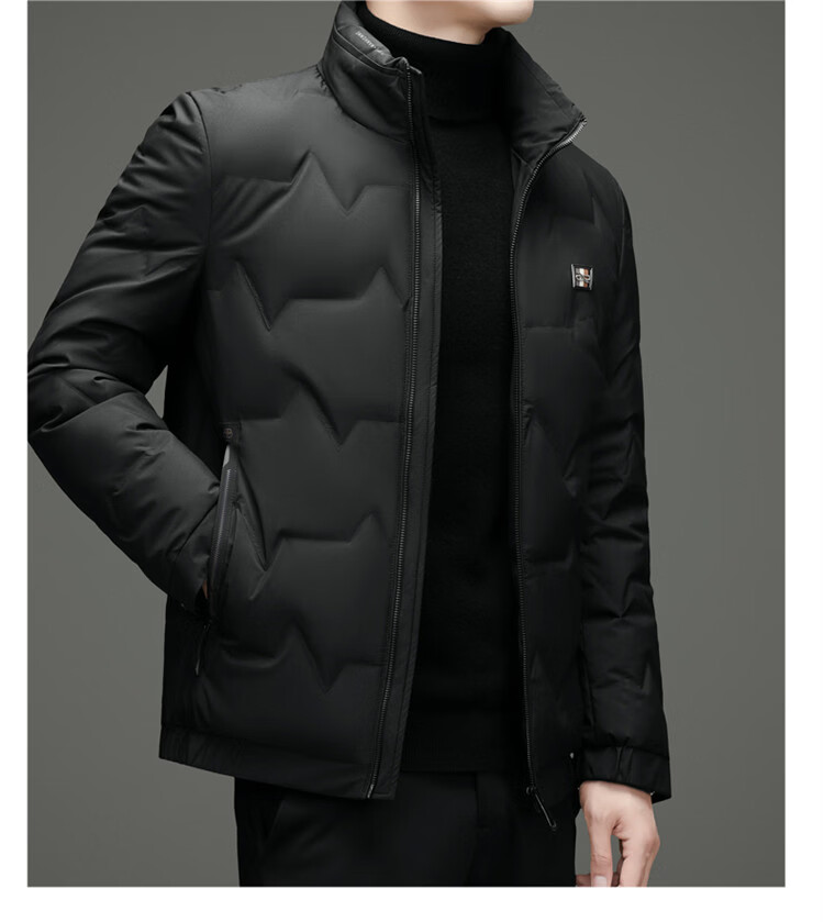 Hengyuanxiang light luxury high-end men's down jacket winter thickened middle-aged white duck down short stand collar cold-proof men's down jacket black (88177) M 170 100-115Jin Jin equals 0.5 kg