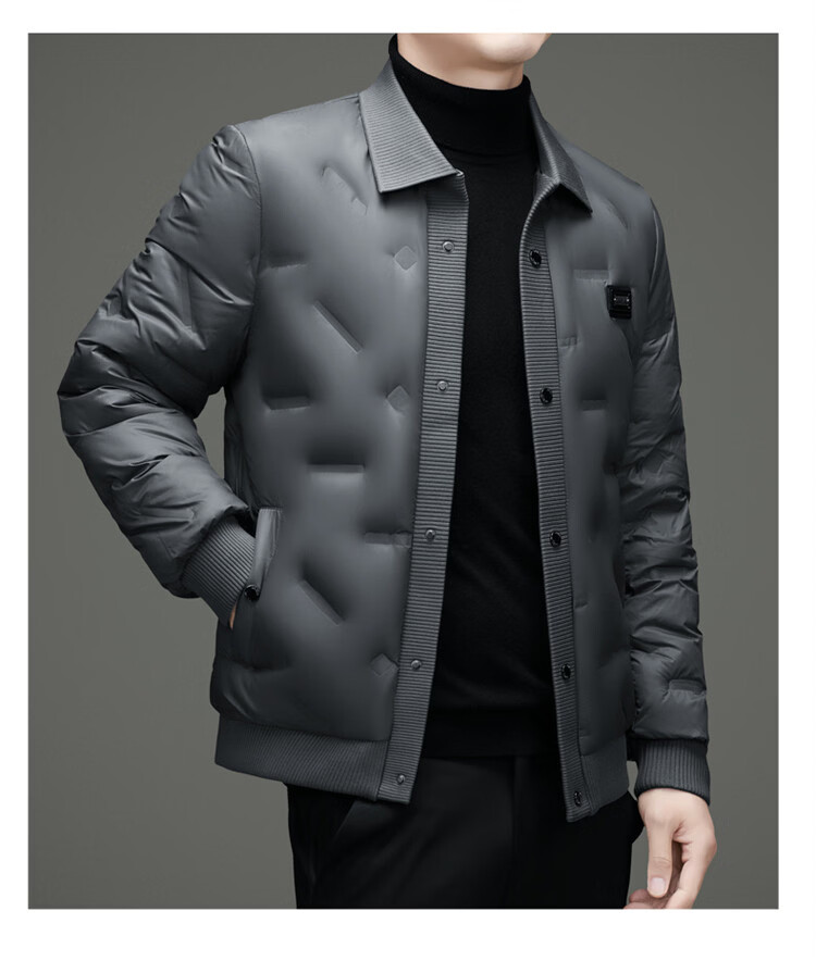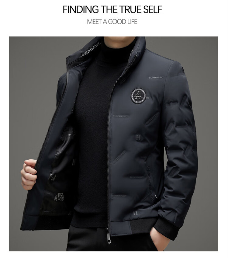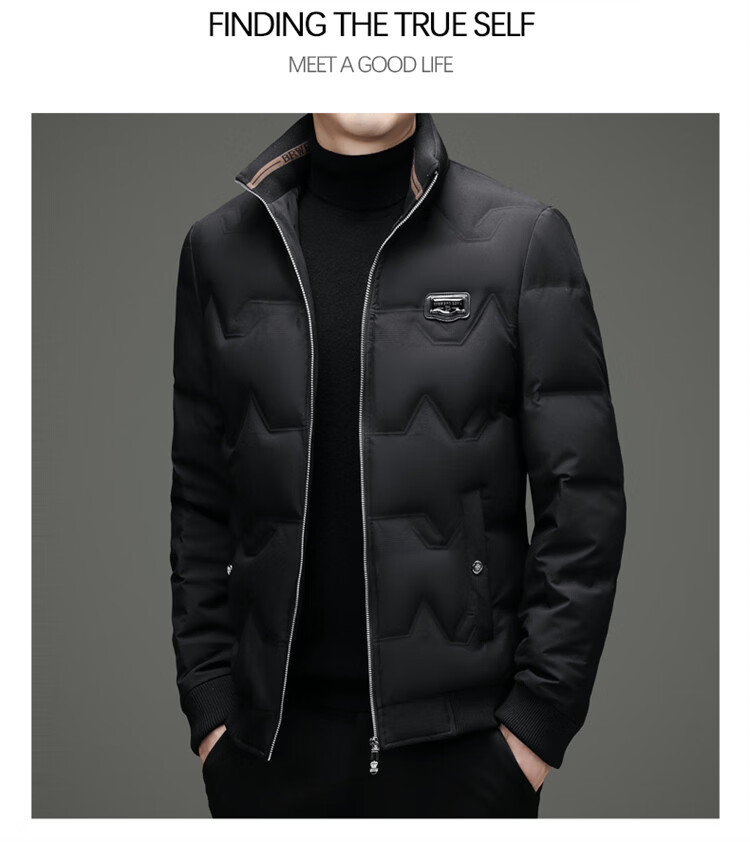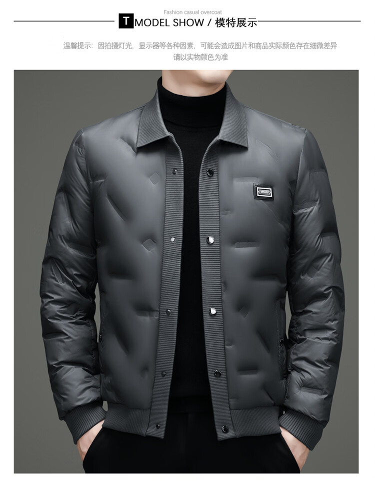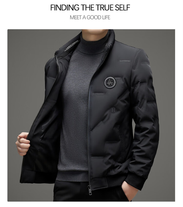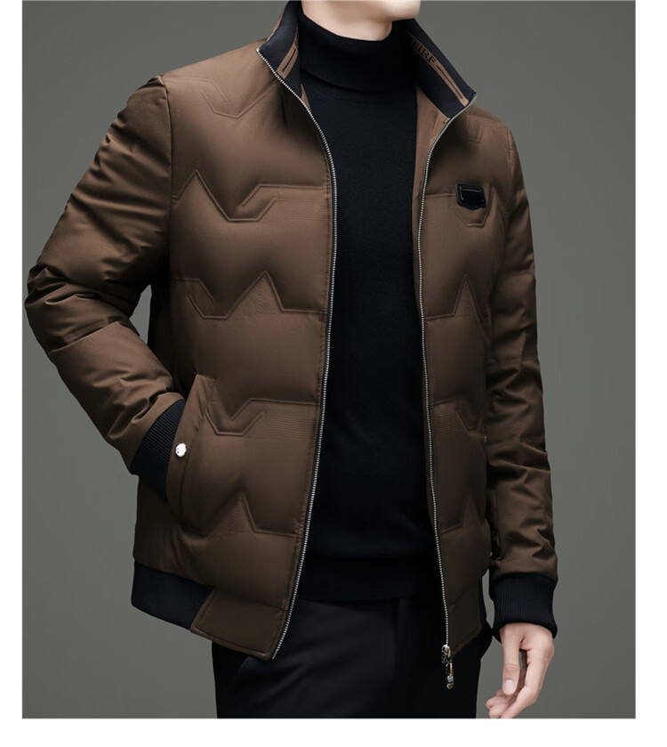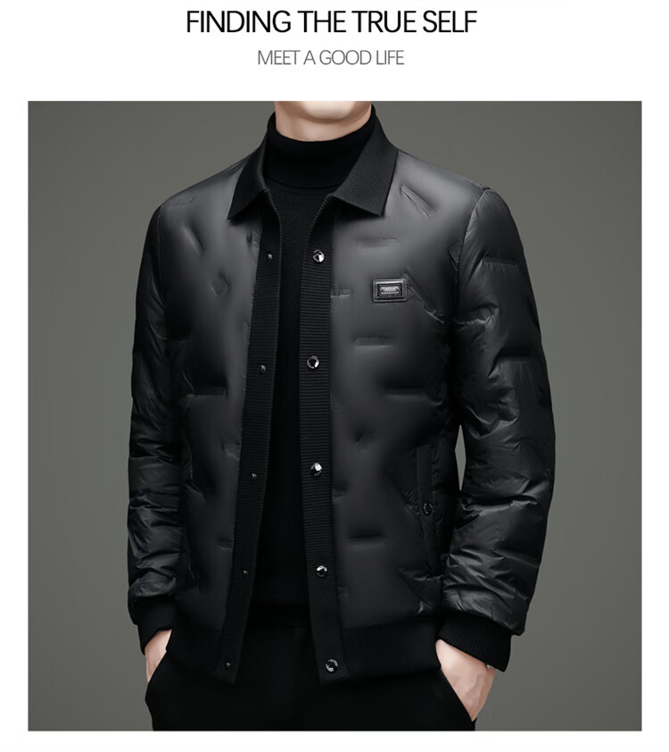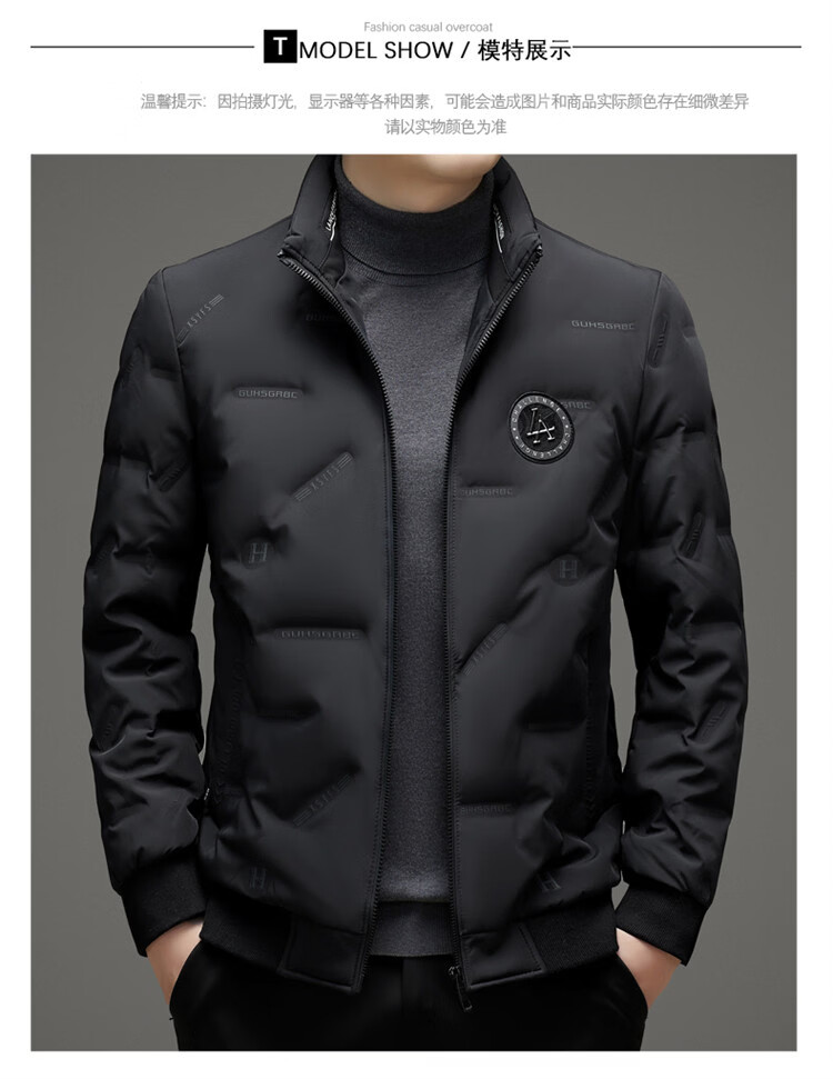 Hengyuanxiang light luxury high-end men's down jacket winter thickened middle-aged white duck down short stand collar cold-proof men's down jacket black (88177) M 170 100-115Jin Jin equals 0.5 kg