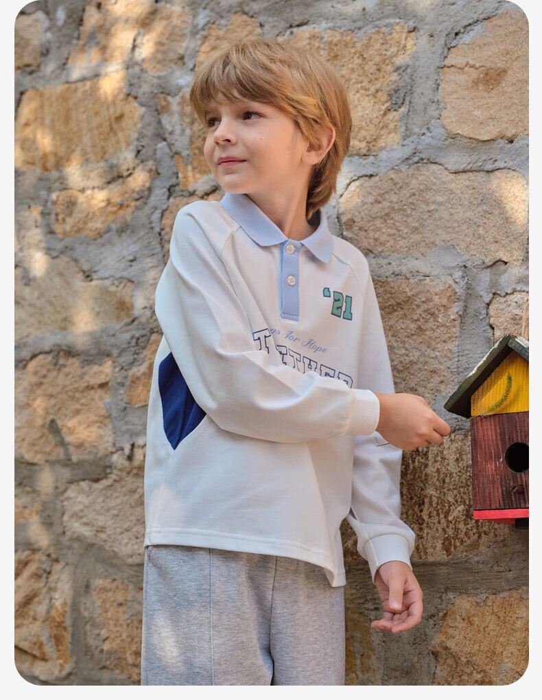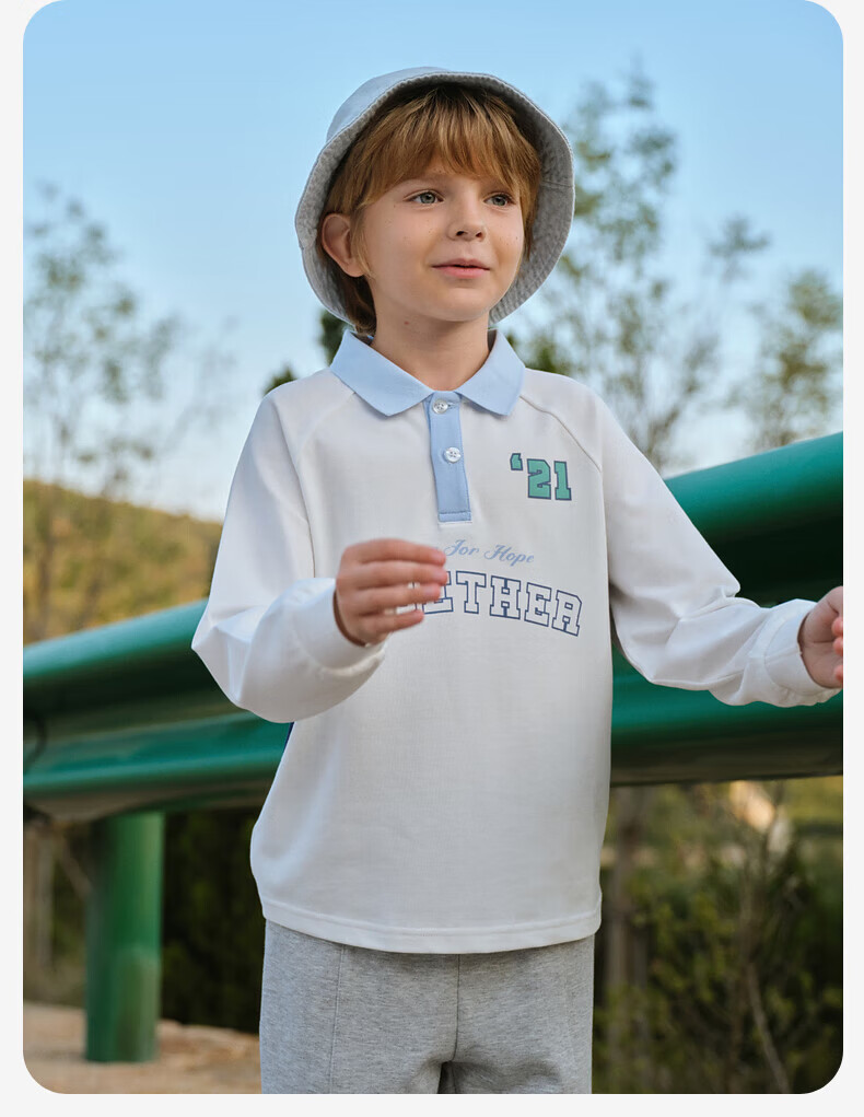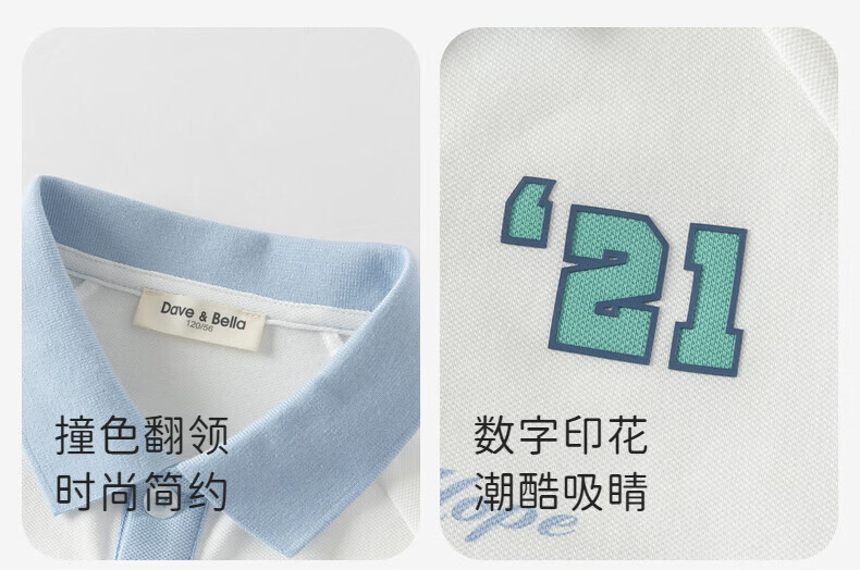 DAVE&BELLA boys' long-sleeved T-shirt 2026 spring new college style children's POLO shirt big children's bottoming shirt little boy's clothes white ready stock 110 cm (recommended height 100-110cm)