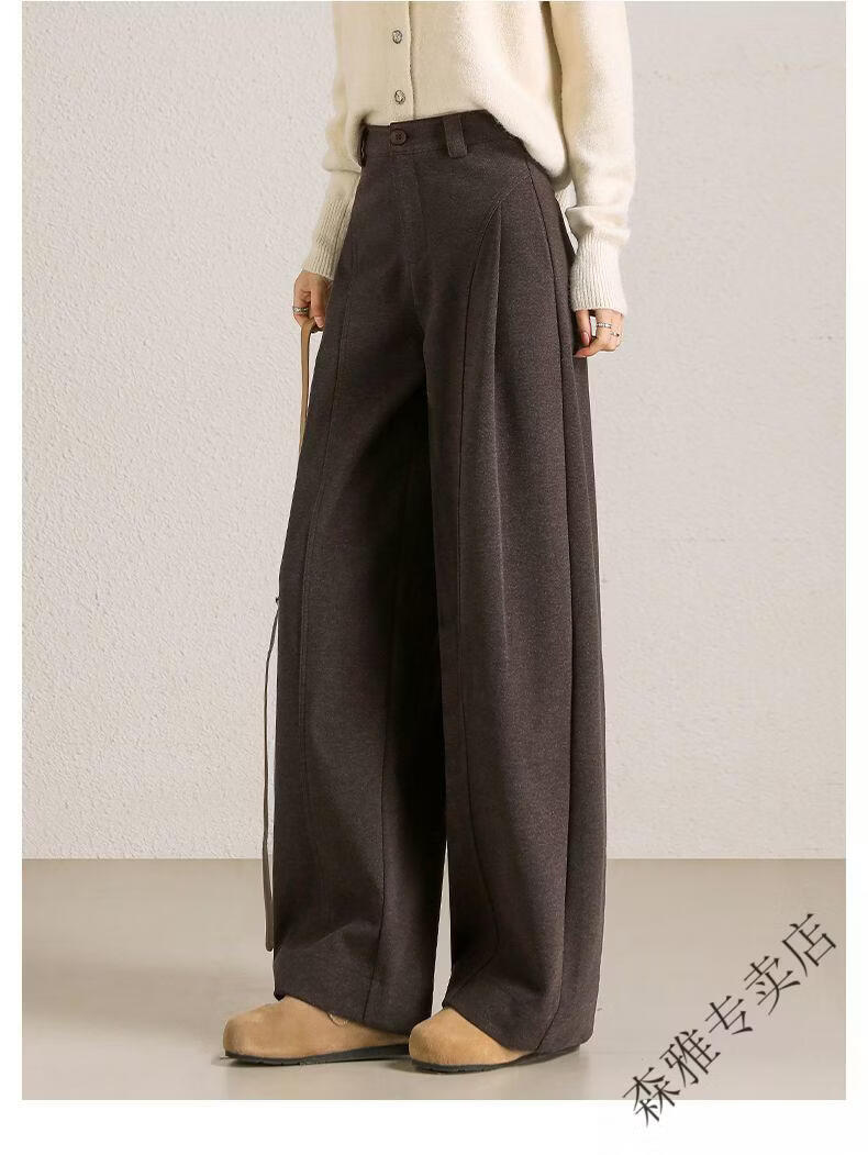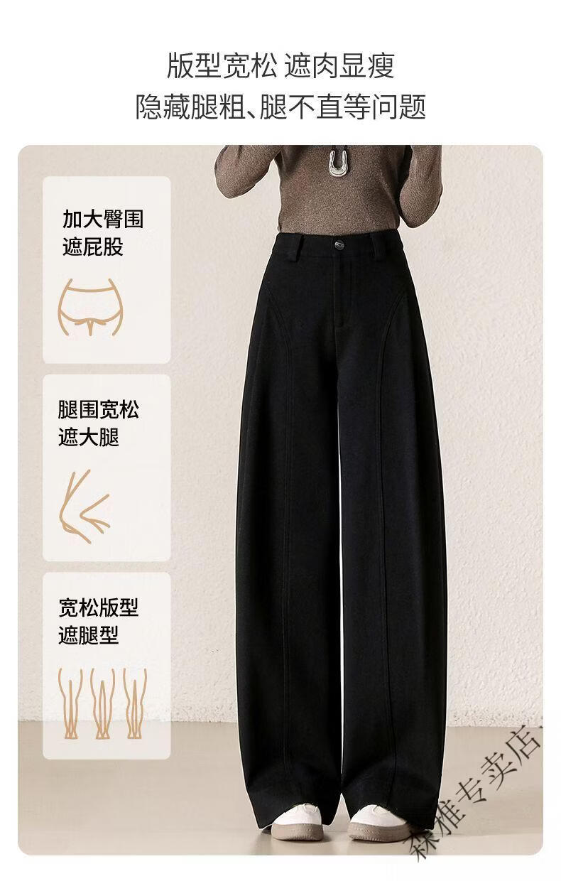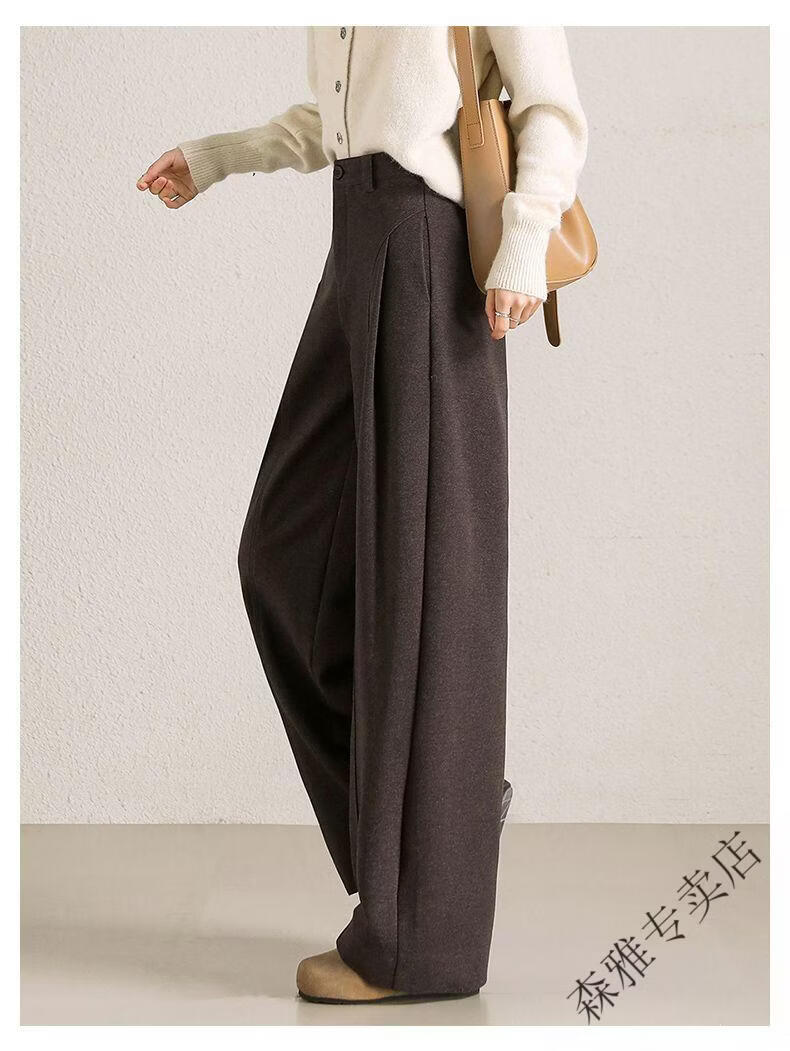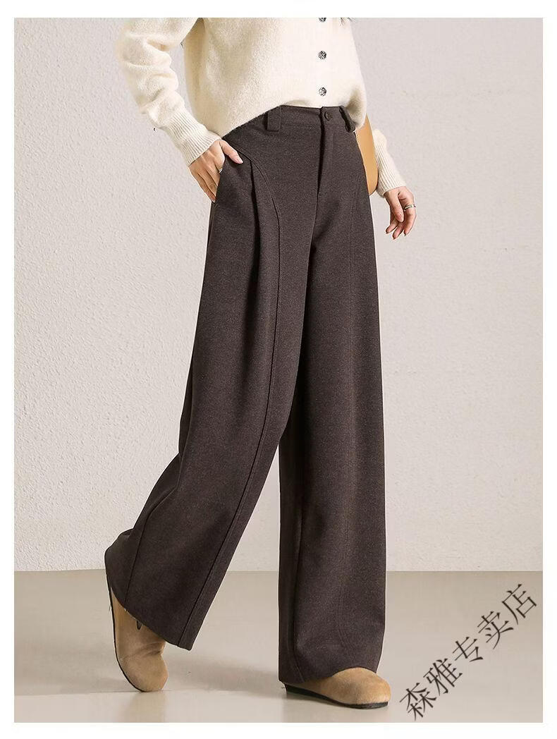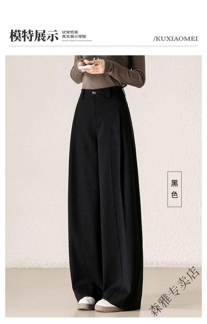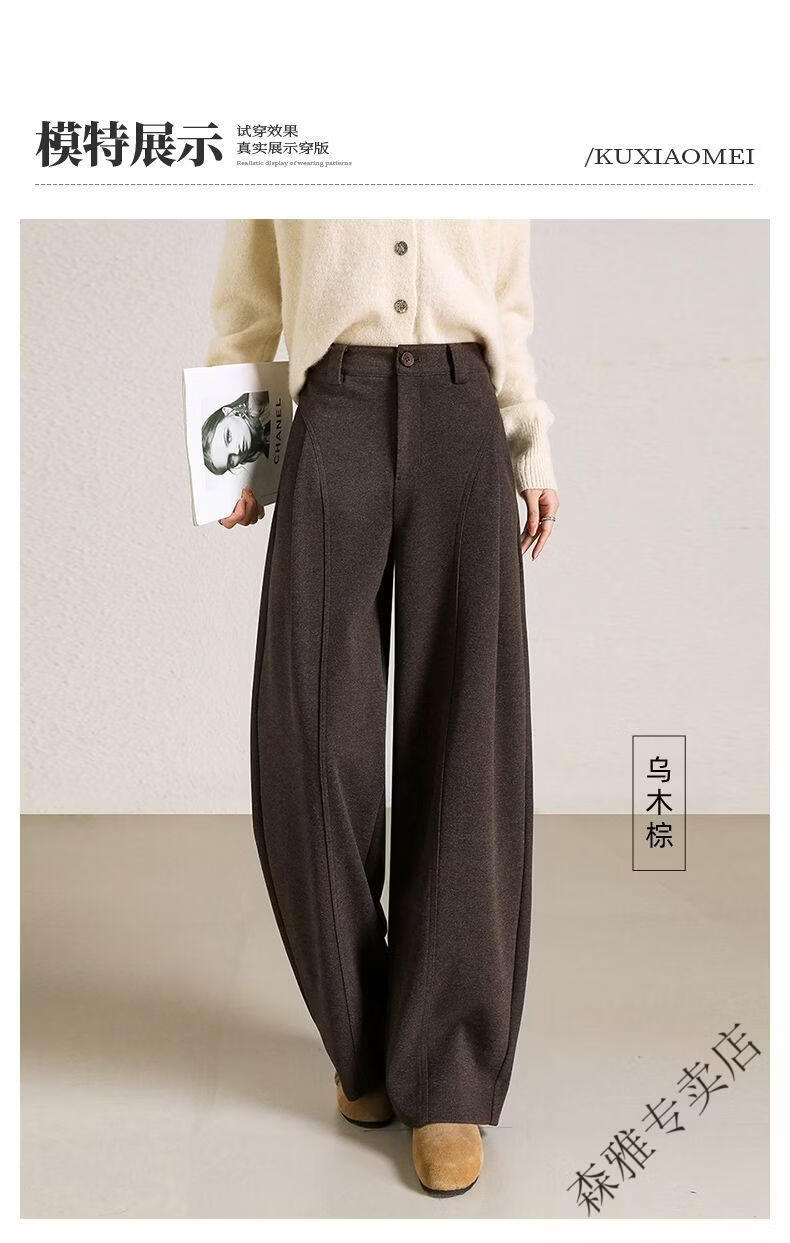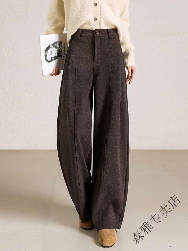 Hengyuanxiang 2026 Autumn and Winter Bass Pants Women's Casual Straight Pants Thickened New High Waist Loose Woolen Slim Scimitar Wide Leg Pants Woolen Fabric Brown 2XL Recommended 130-145Jin Jin is equal to 0.5 kg