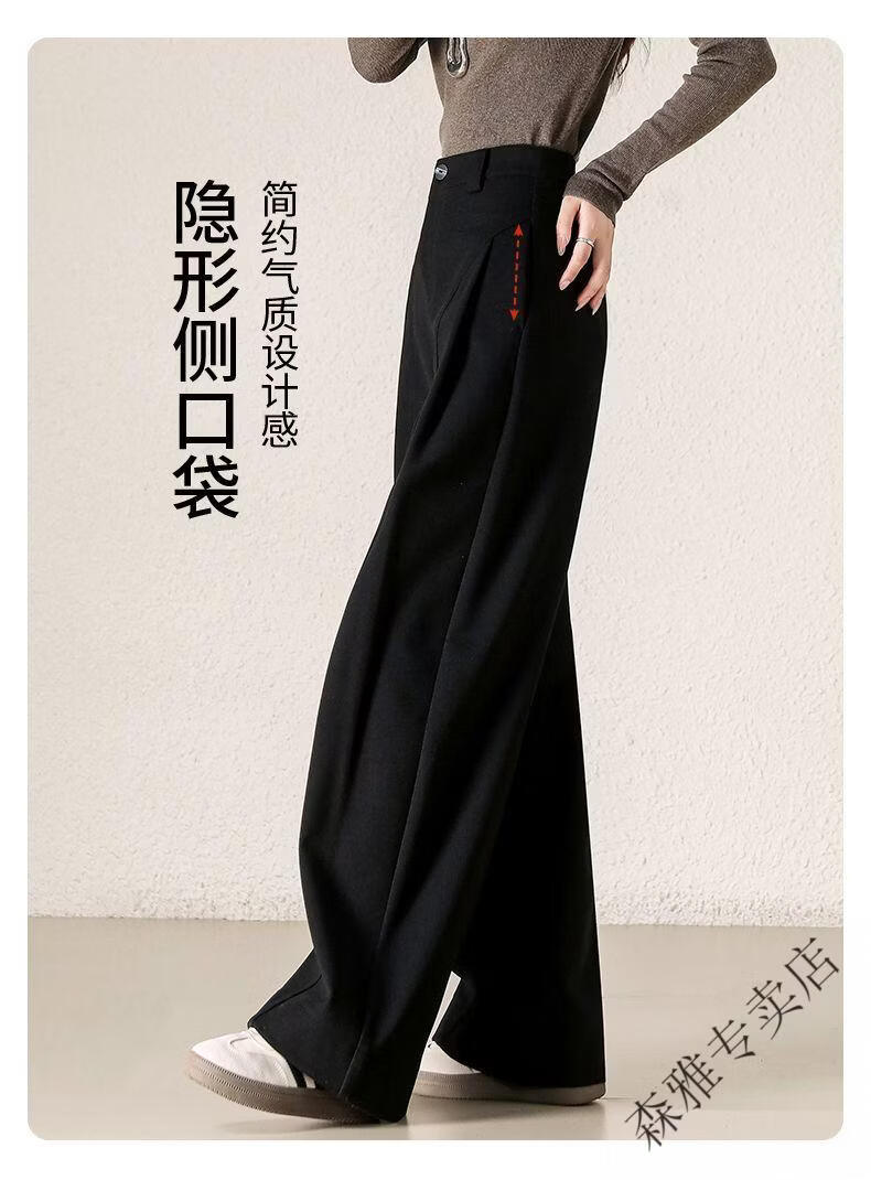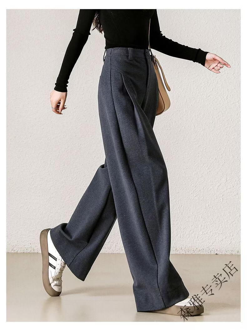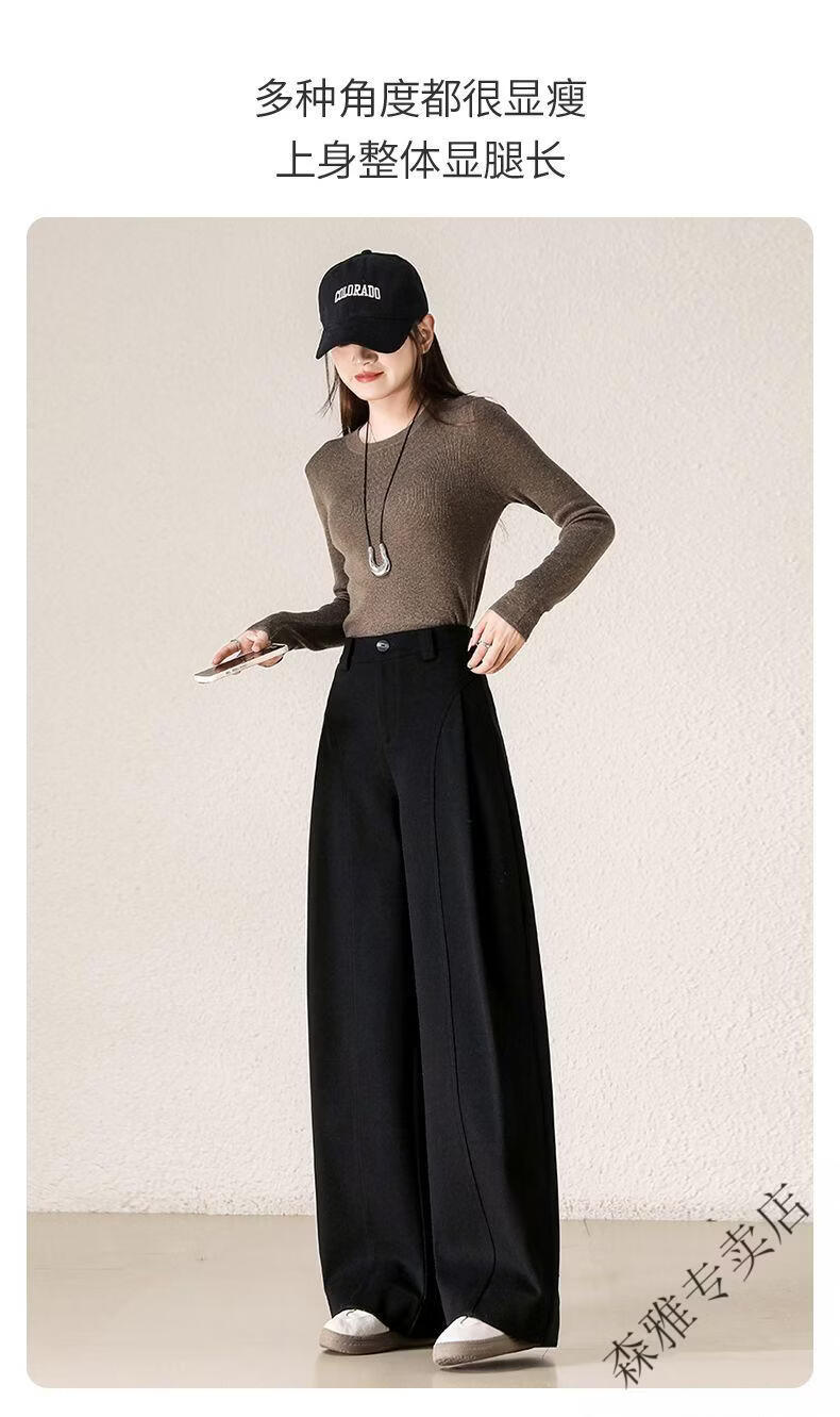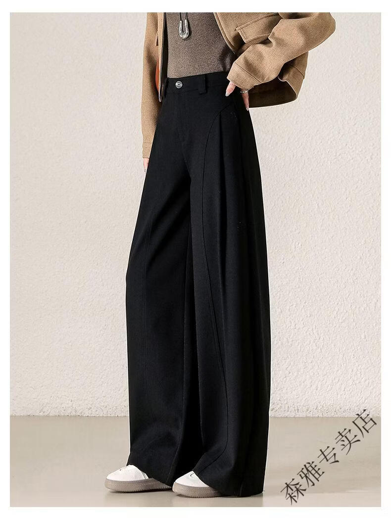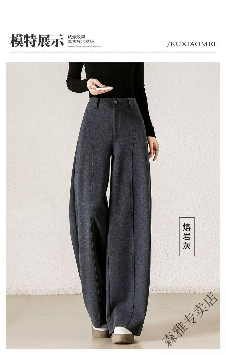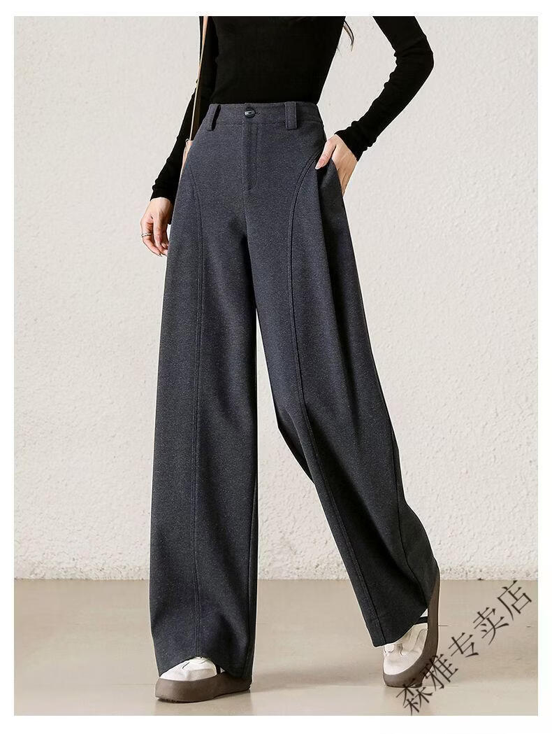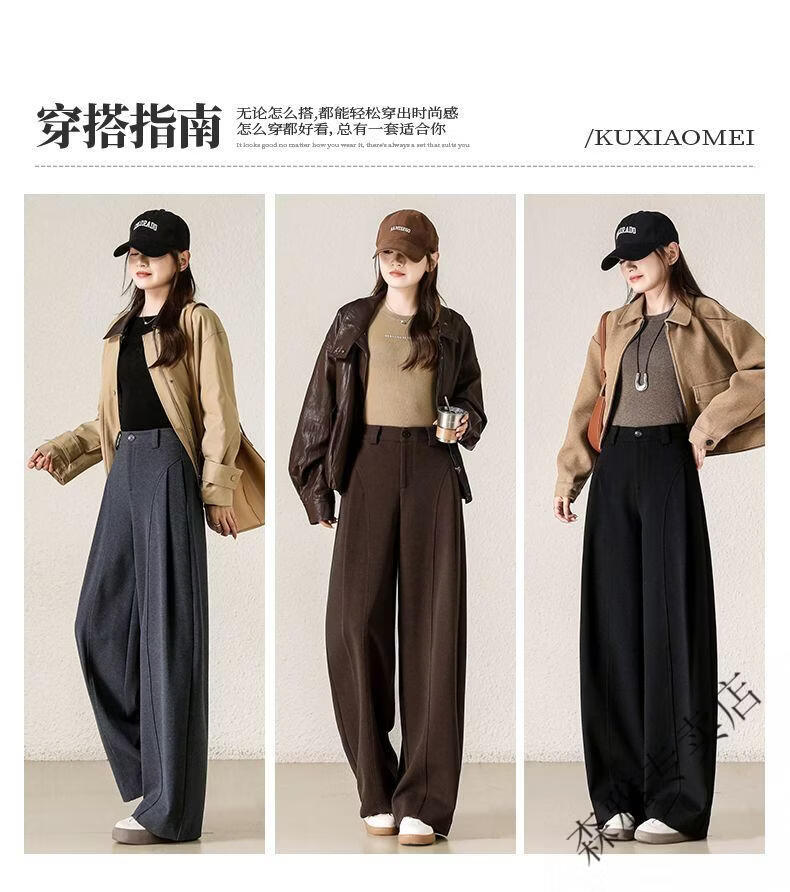 Hengyuanxiang 2026 Autumn and Winter Bass Pants Women's Casual Straight Pants Thickened New High Waist Loose Woolen Slim Scimitar Wide Leg Pants Woolen Fabric Brown 2XL Recommended 130-145Jin Jin is equal to 0.5 kg