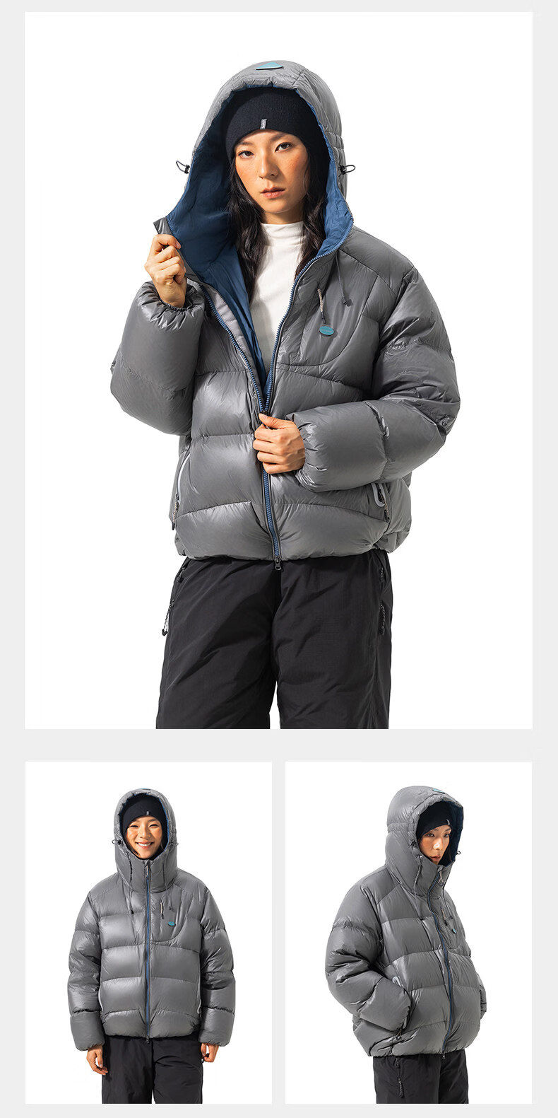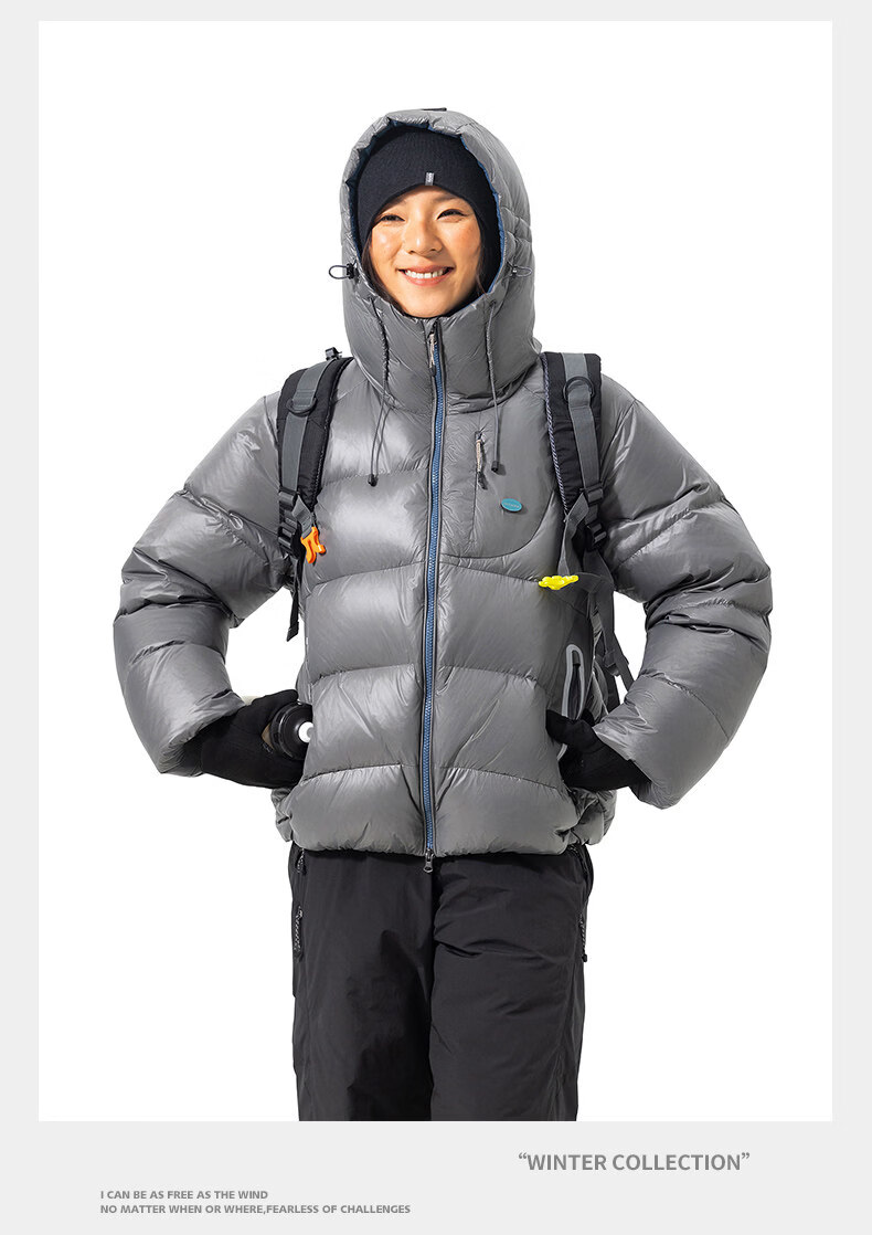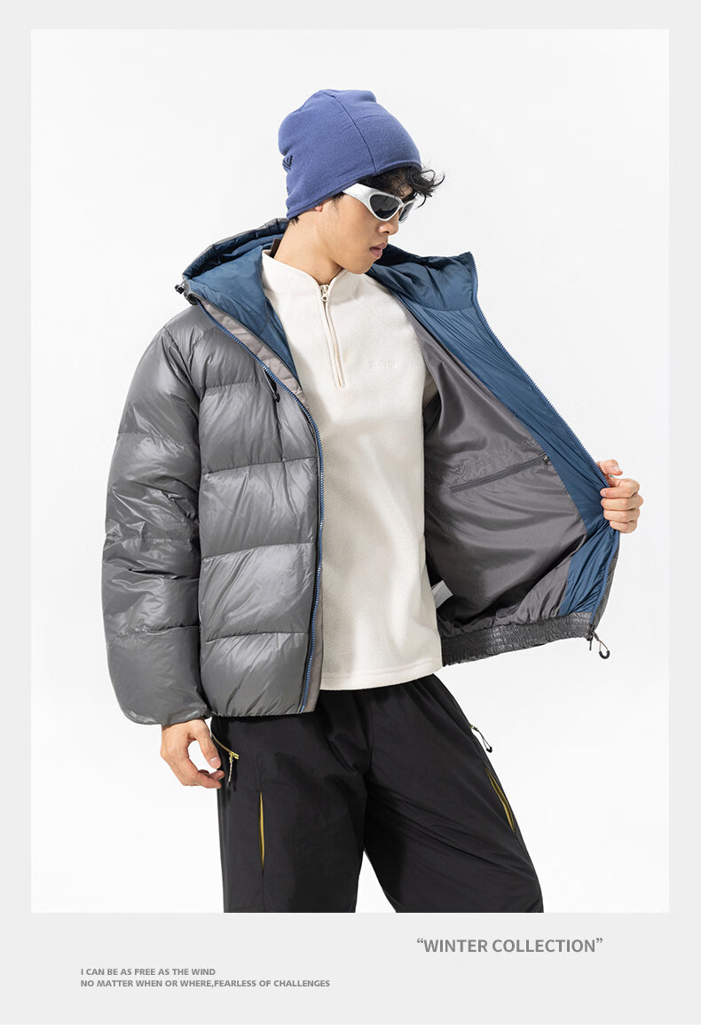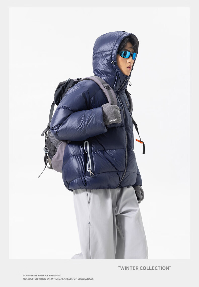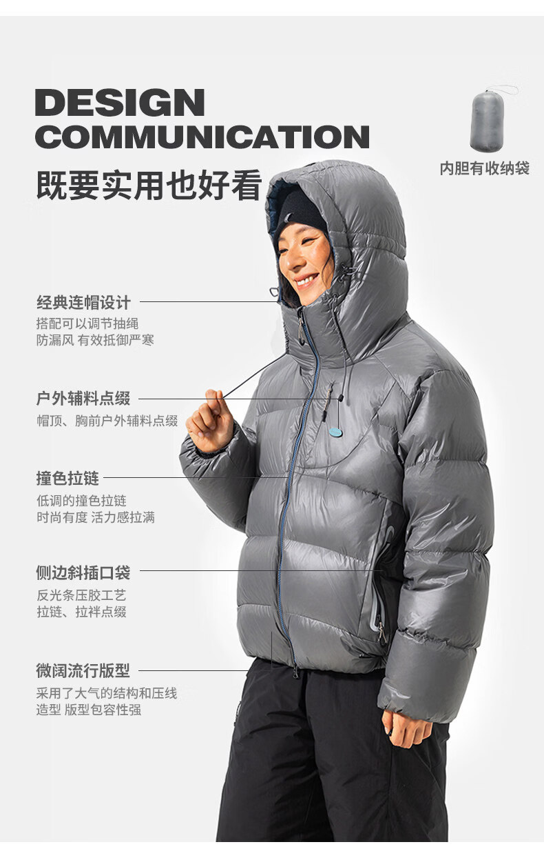 viishow户外轻量蓬90白鸭绒防钻绒羽绒服男女款冬季防寒短款外套 墨丝雅黑 M