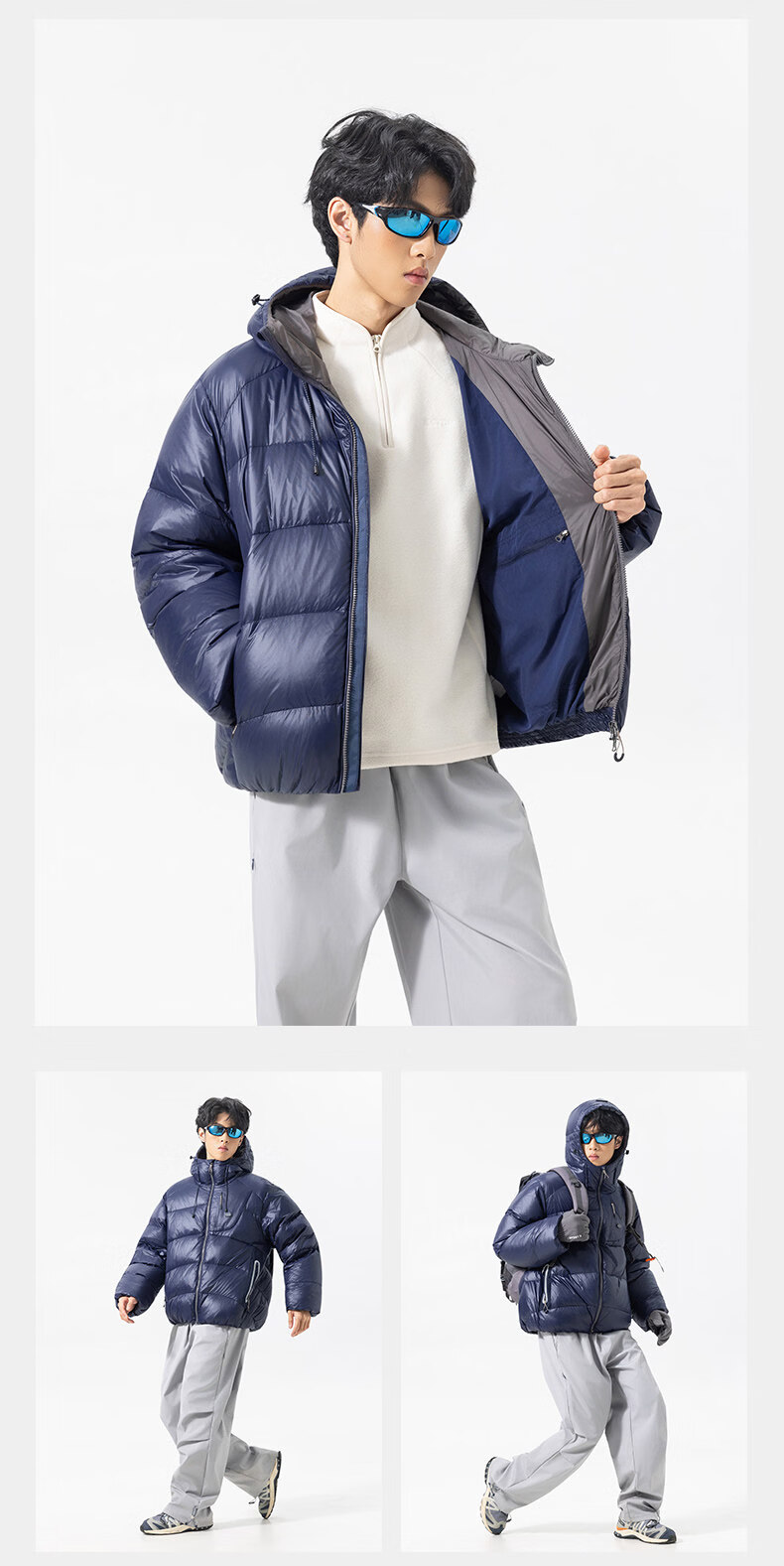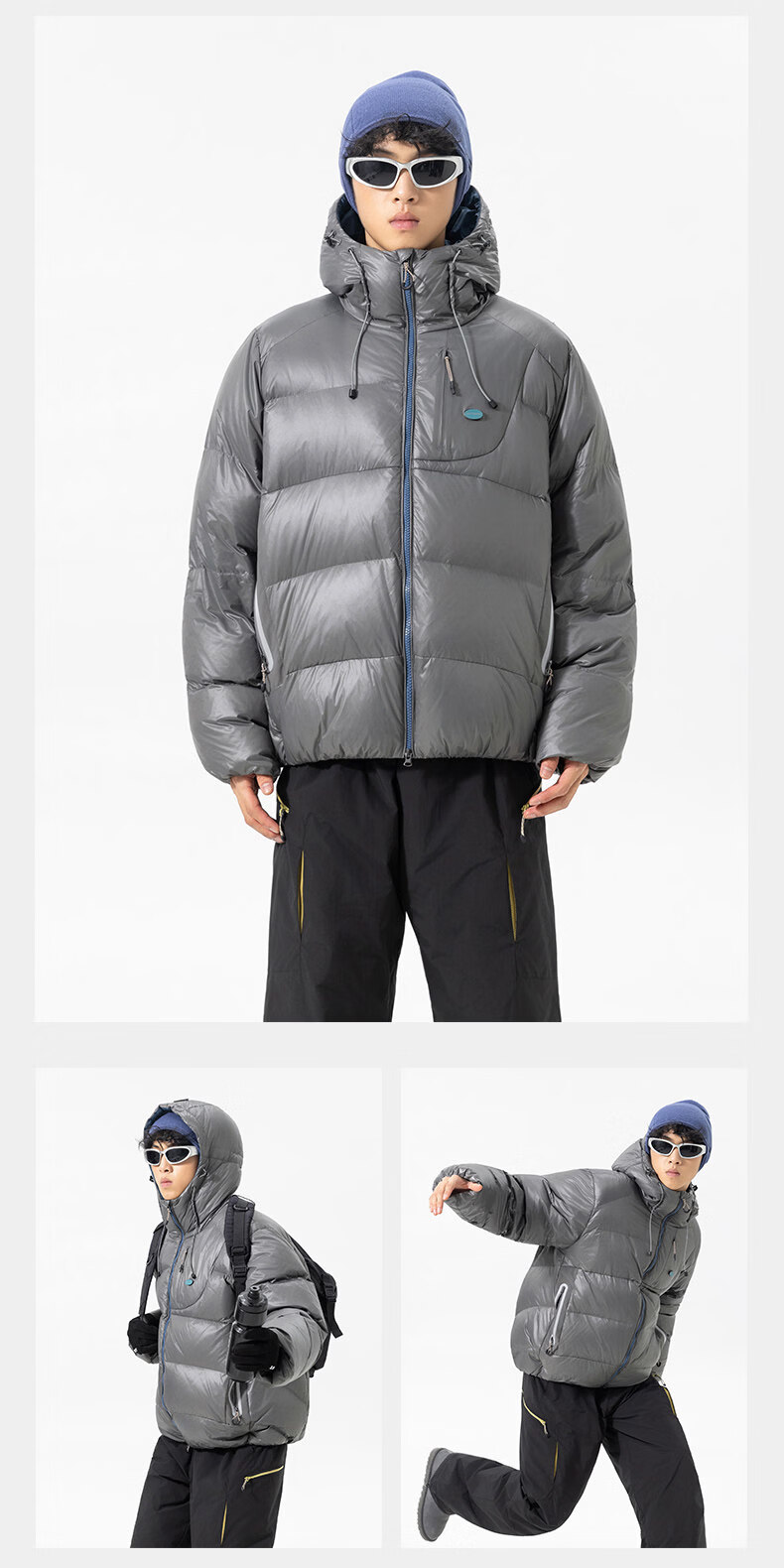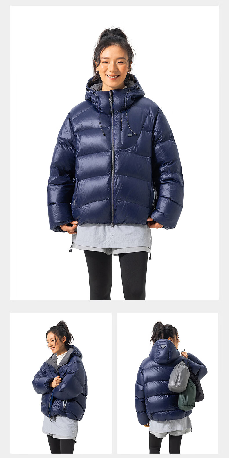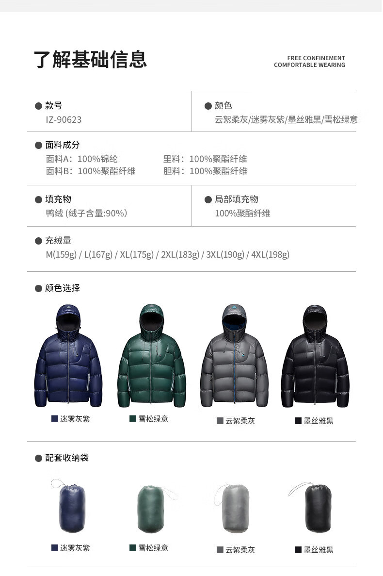 viishow户外轻量蓬90白鸭绒防钻绒羽绒服男女款冬季防寒短款外套 墨丝雅黑 M