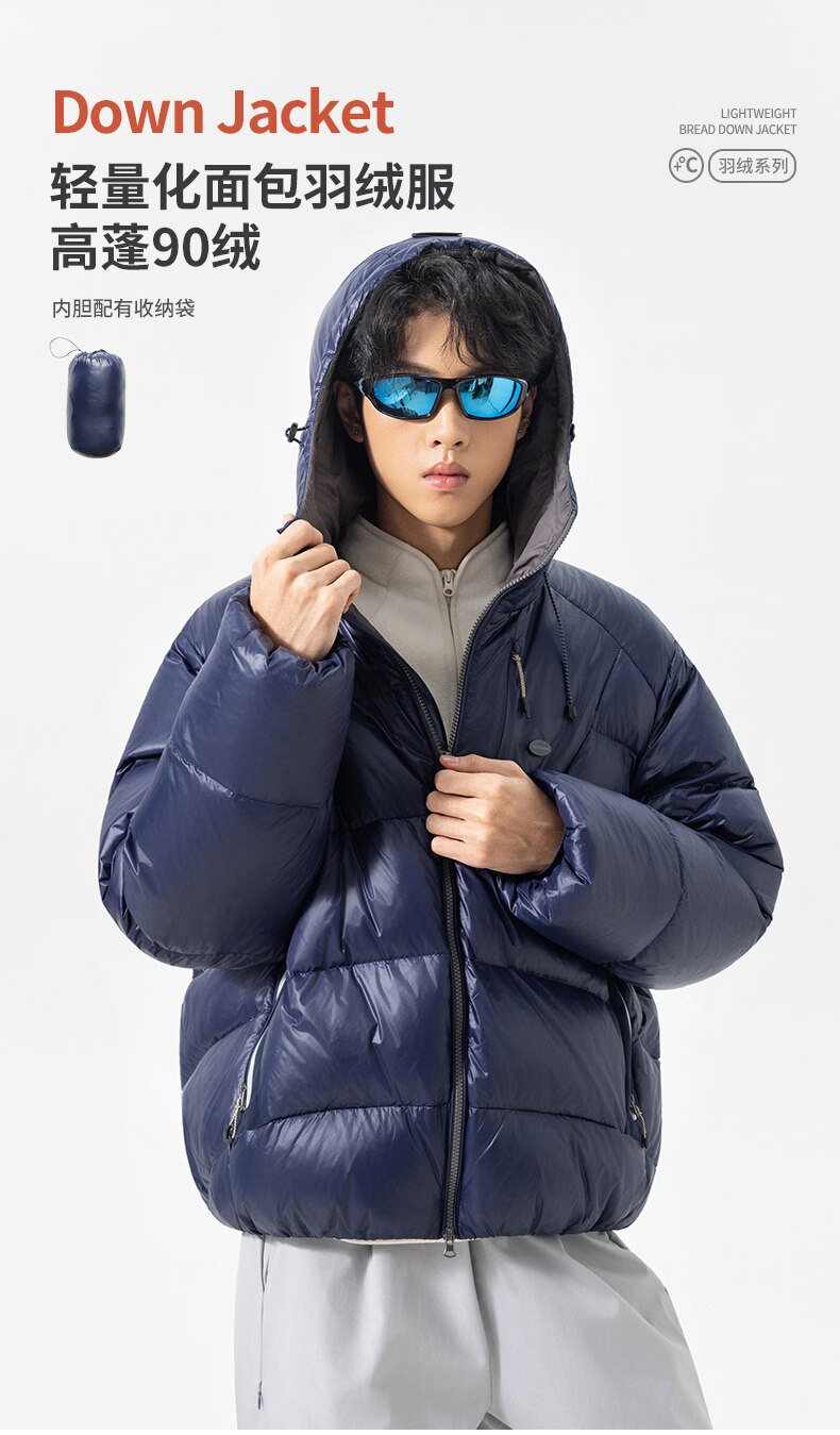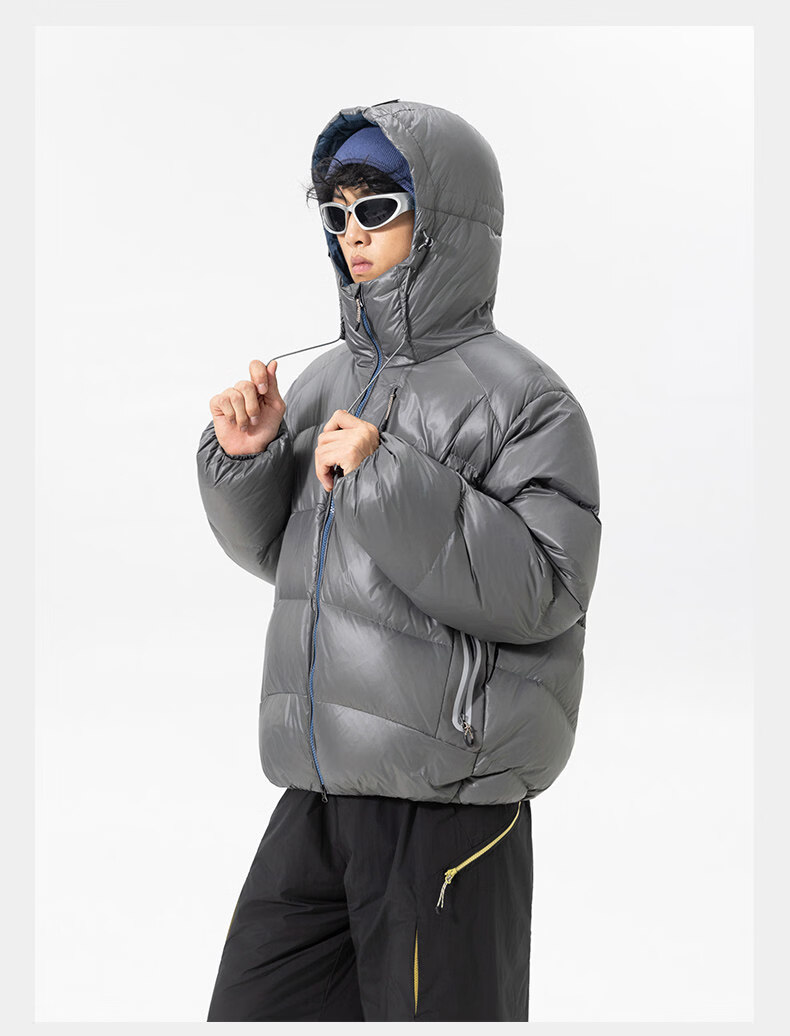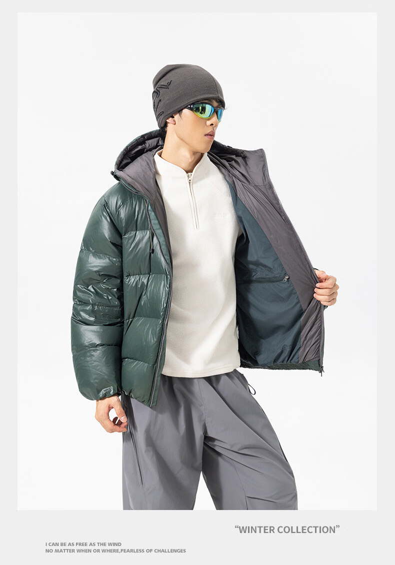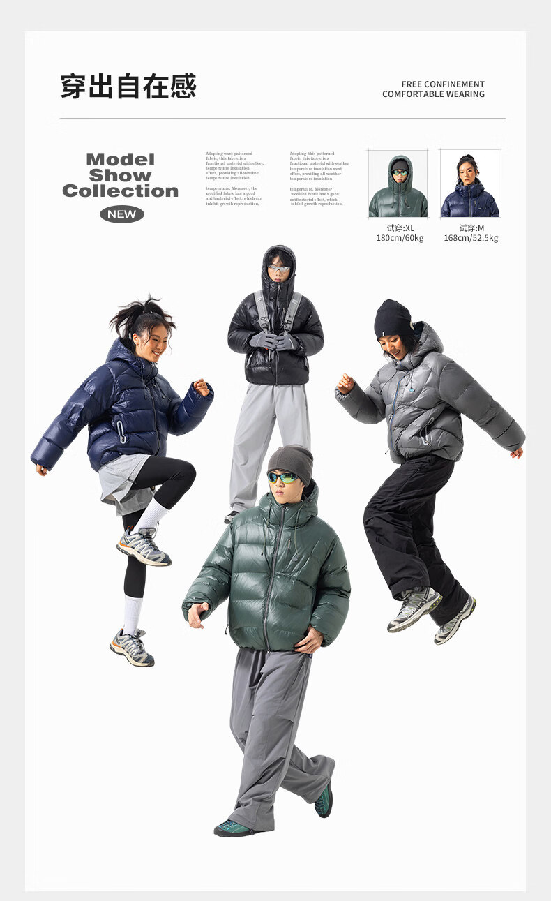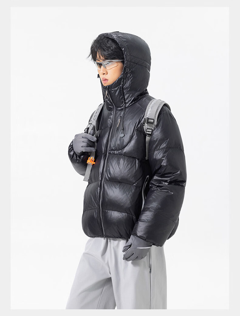 viishow户外轻量蓬90白鸭绒防钻绒羽绒服男女款冬季防寒短款外套 墨丝雅黑 M