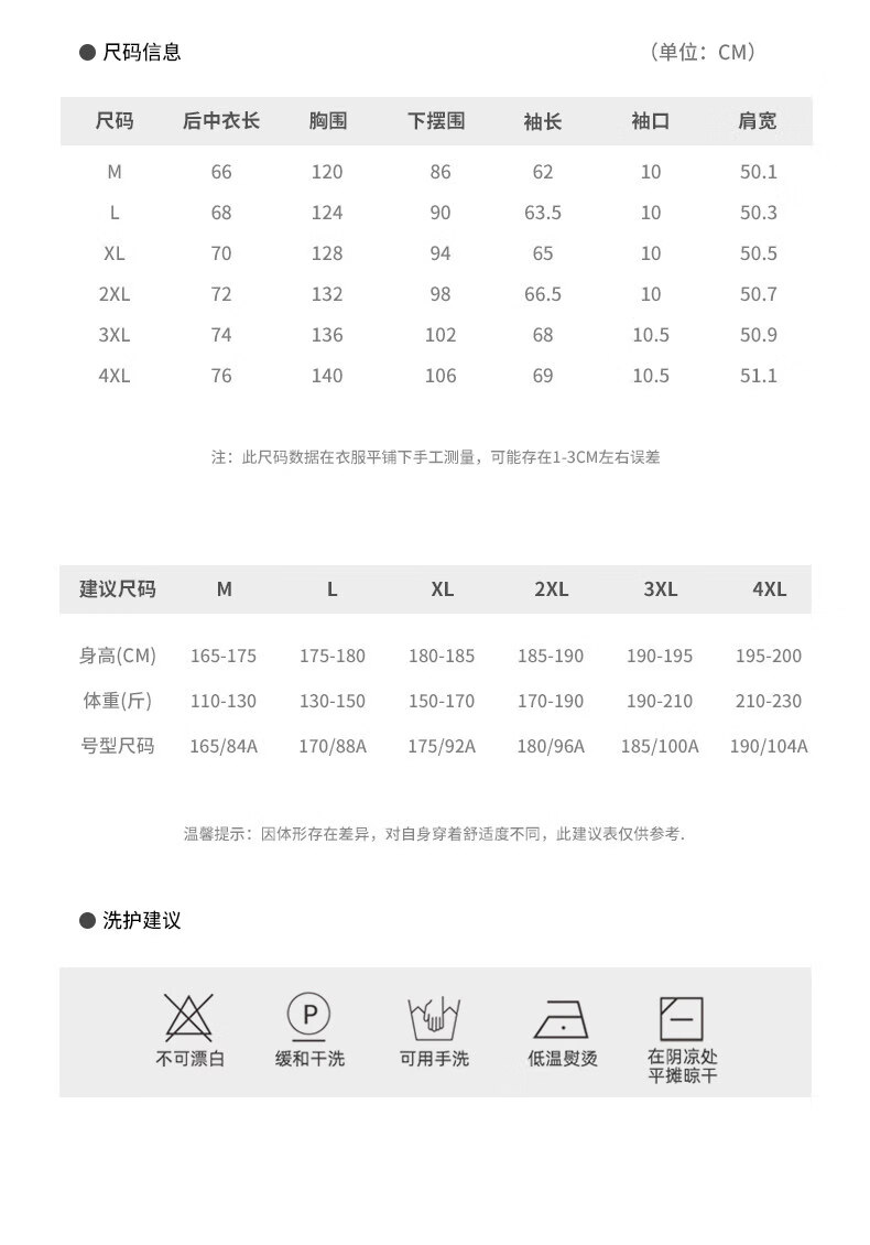 China (cm) 160-165/84-86 165-170 / 88-90 167-172 / 92-96 168-173 / 98-102 170-176 / 106-110