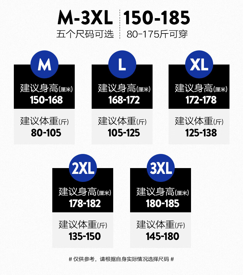 China (cm) 165 / 88-90 170 / 96-98 175 / 108-110 180 / 118-122 185 / 126-130