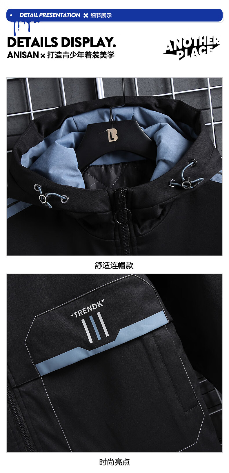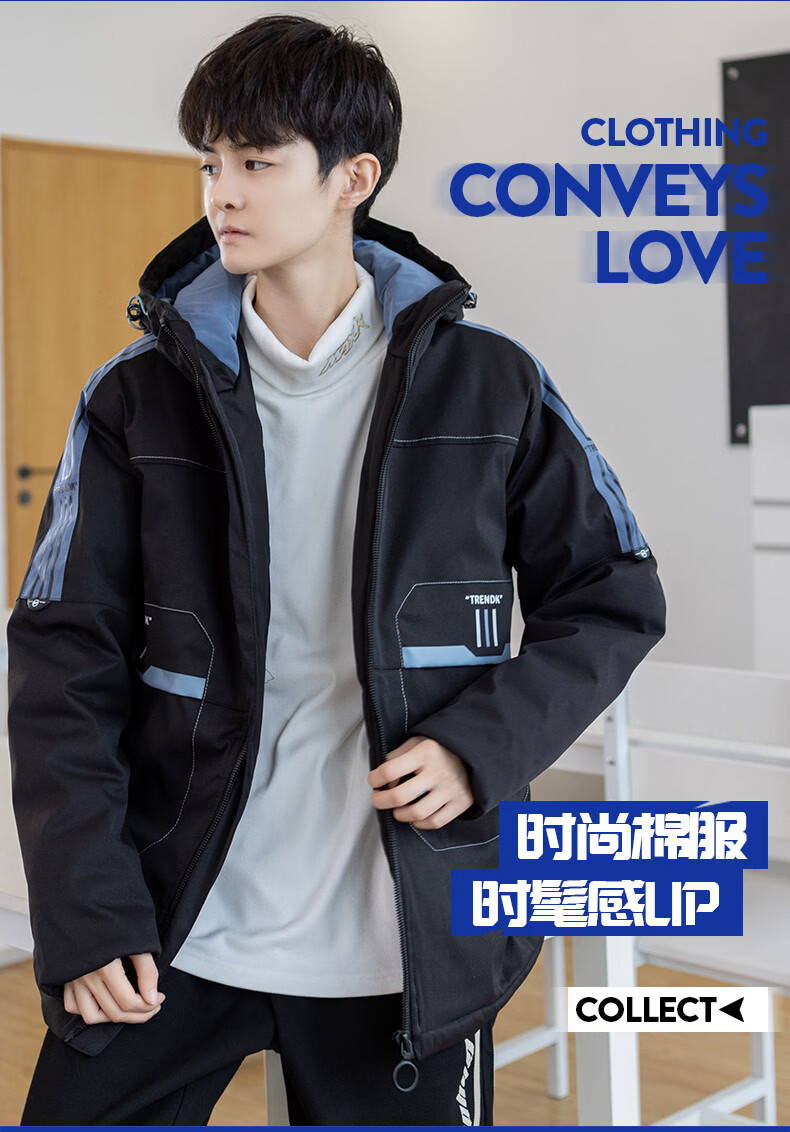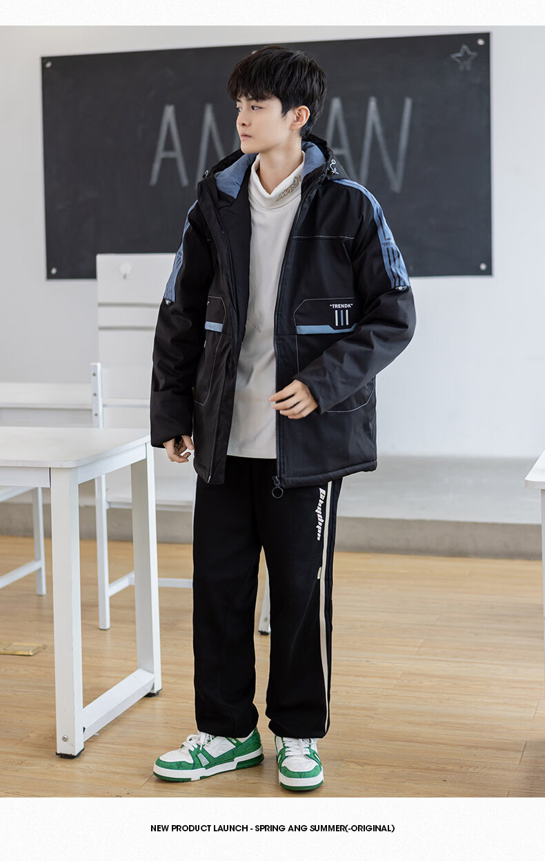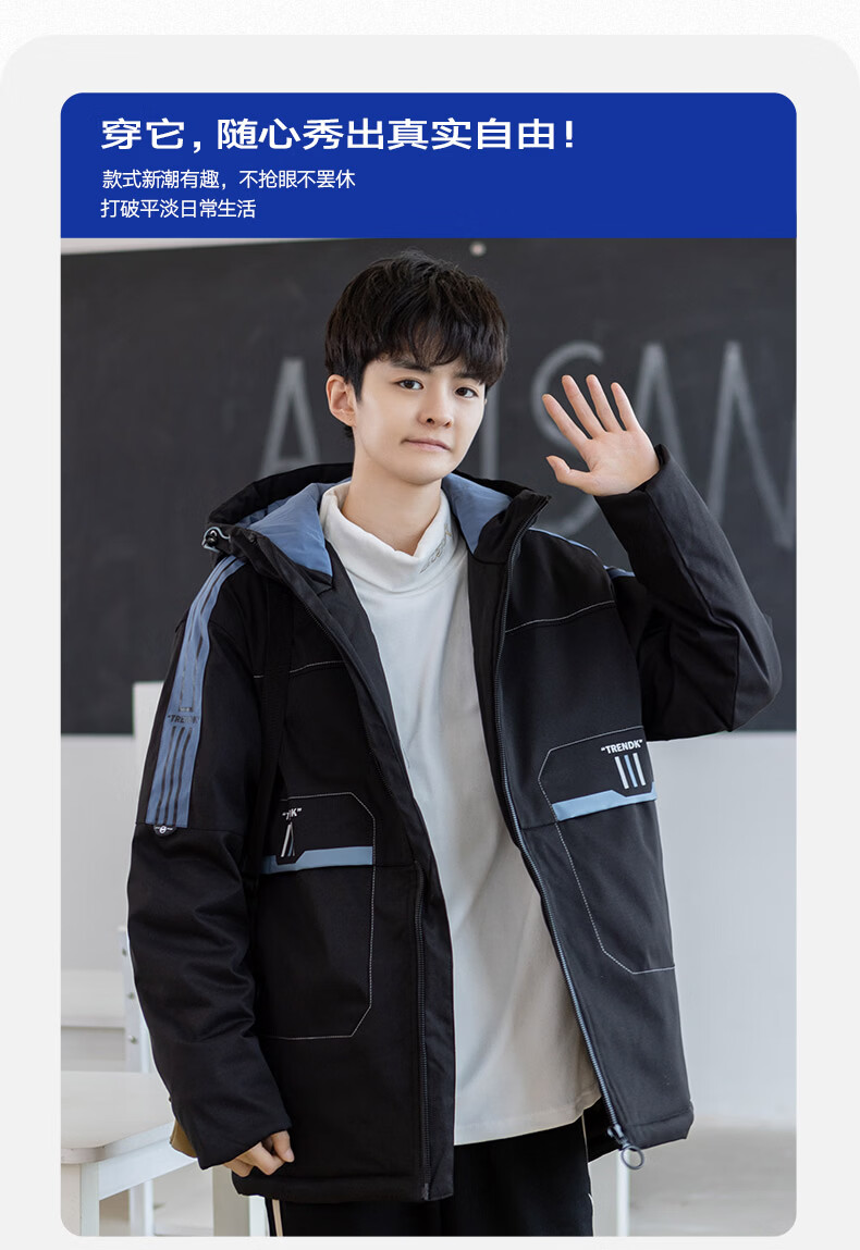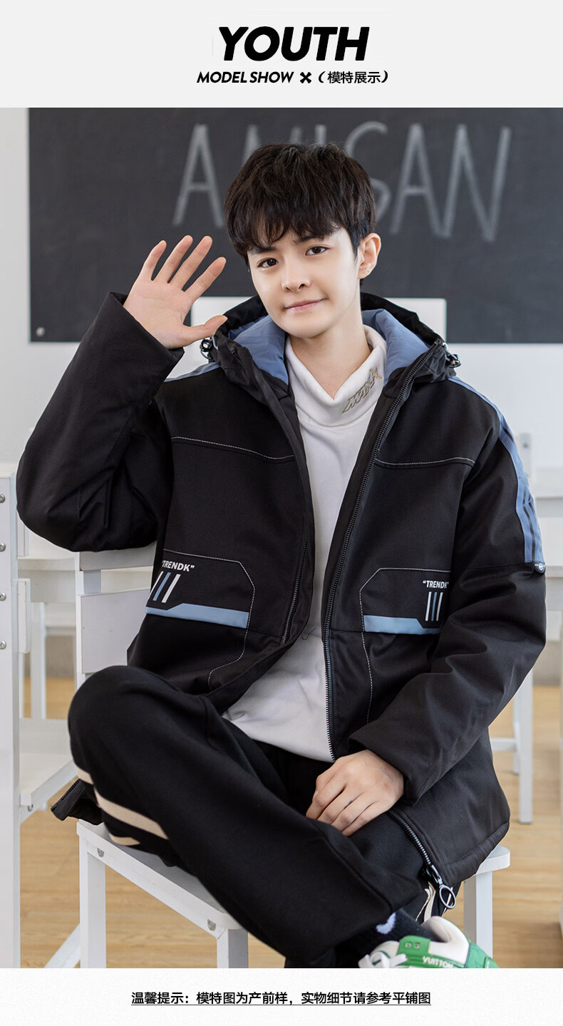 Arnie San Youth Down Jacket Men's 2025 Winter New Thickened Cotton Jacket High School Older Student Second Cotton Jacket Winter Clothes Haze Blue M