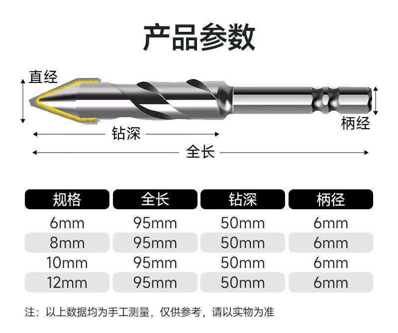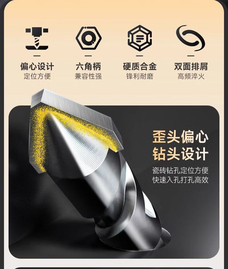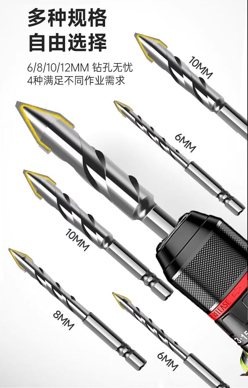 Ye Yu super-hard eccentric drill bit hand electric drill special-grade punching round hole drilling brick full tile drill bit for concrete super-hard eccentric drill 6mm 10 pieces